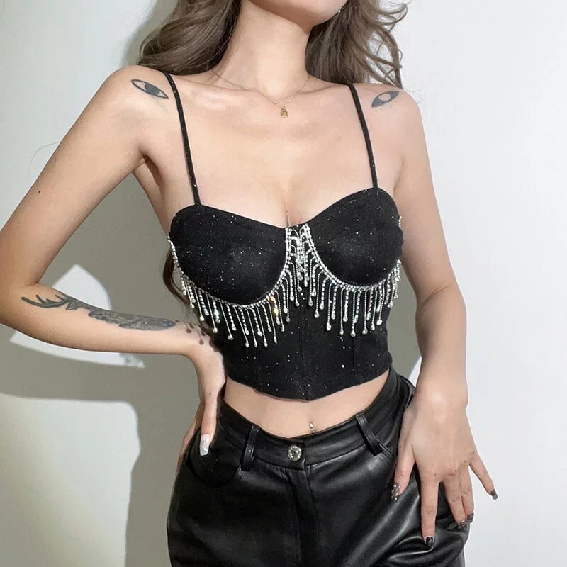 Áo 2 Dây Ánh Kim Đính Đá Cúp Ngực Đen