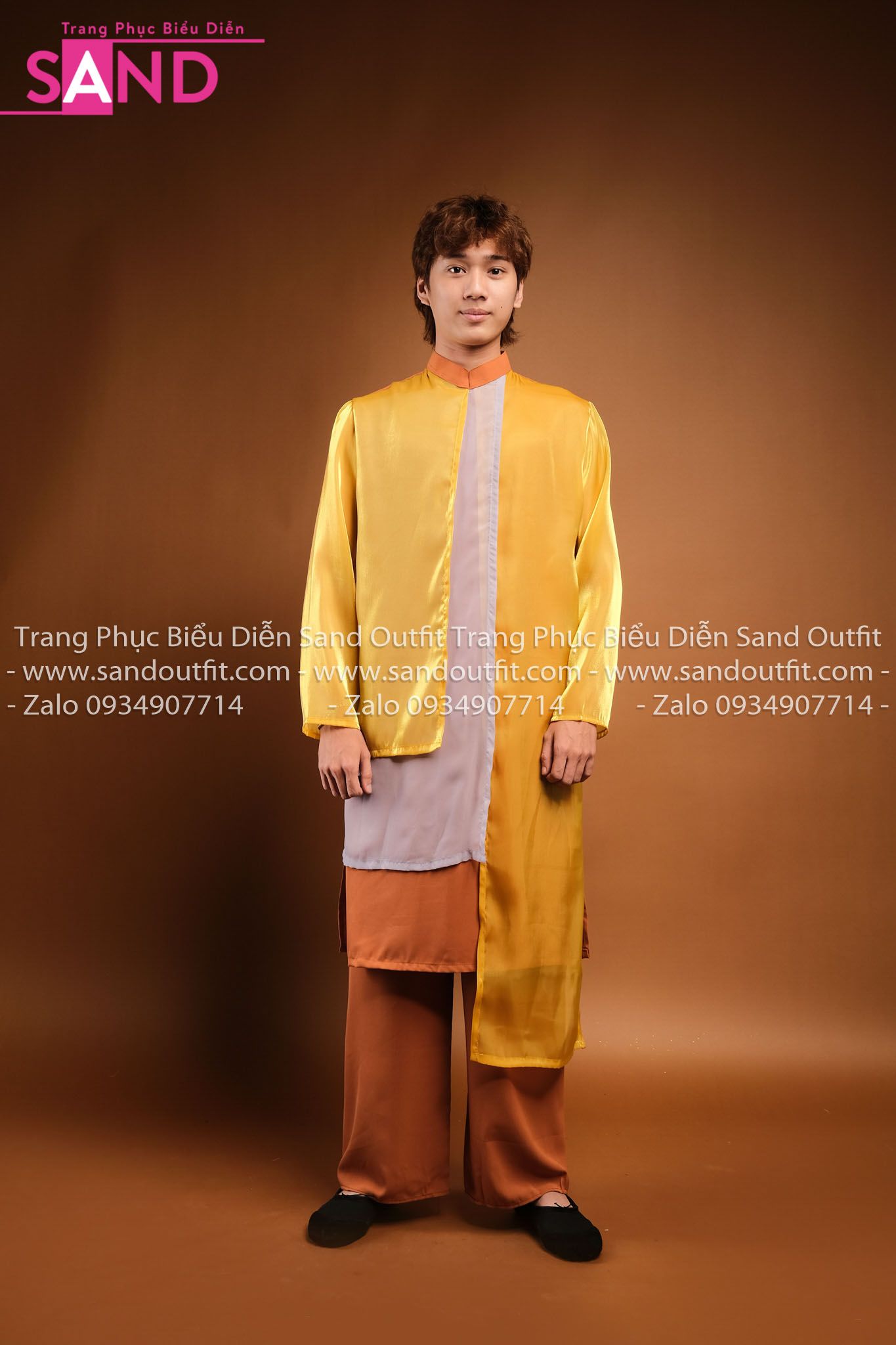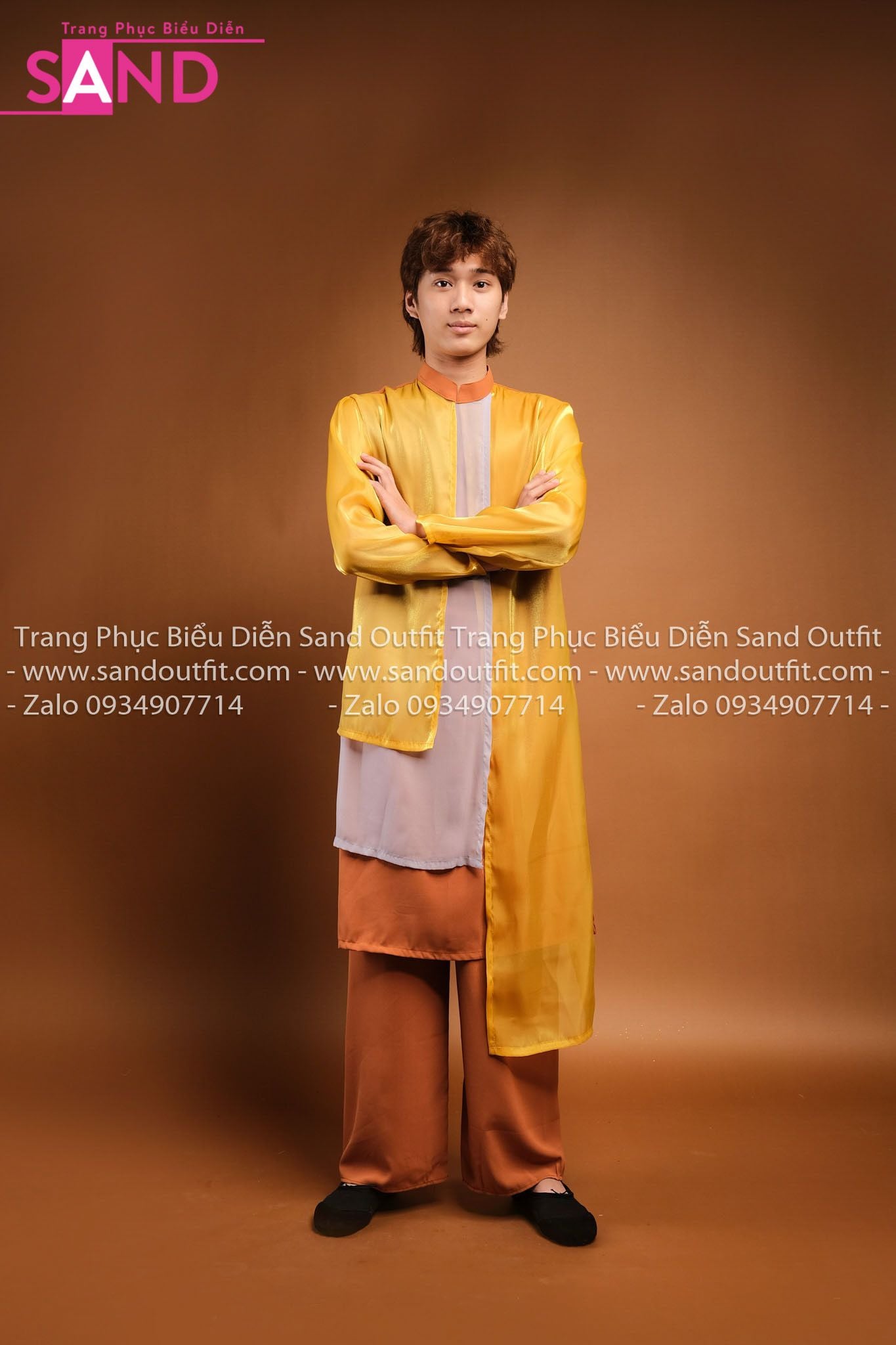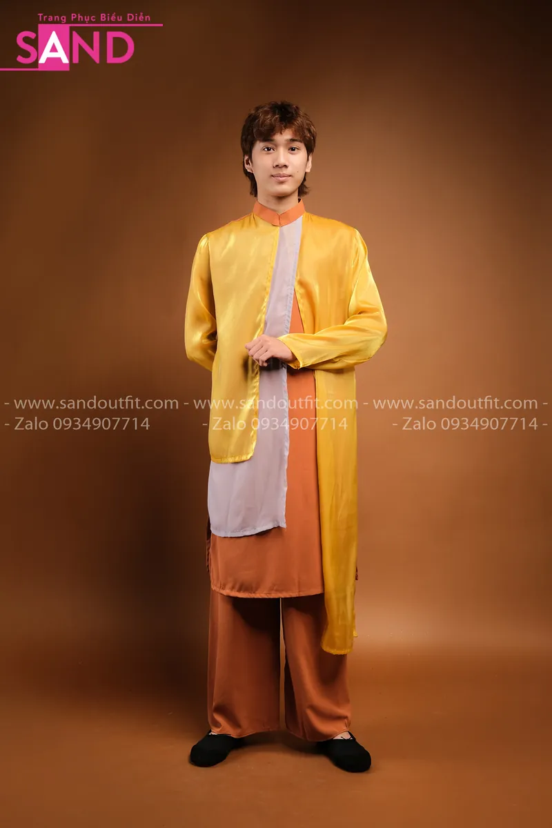 TBT1001 Áo Dài Thư Pháp - Dân Gian Vàng Nâu Nam