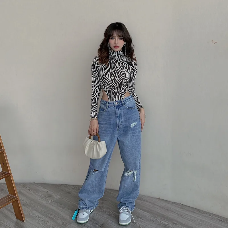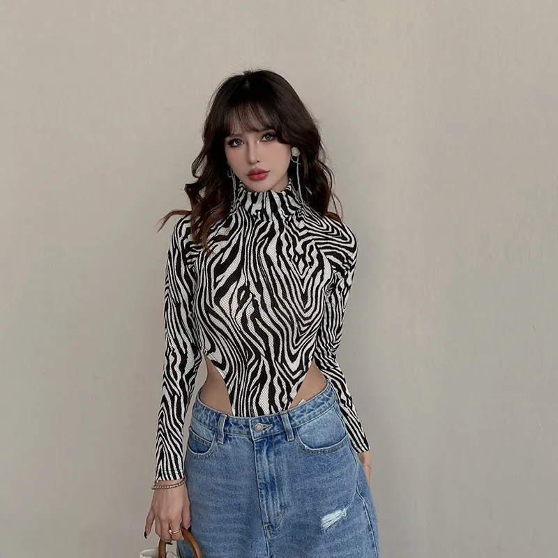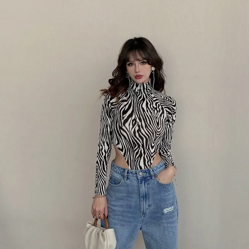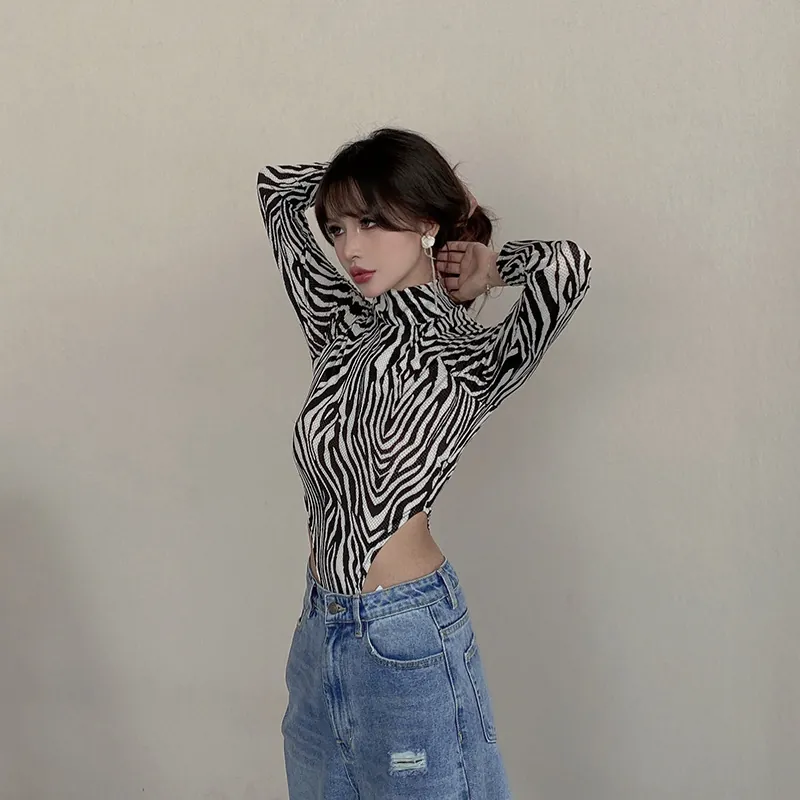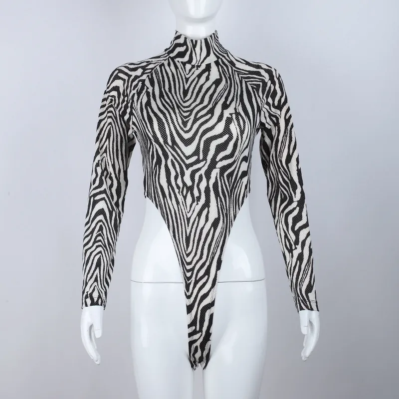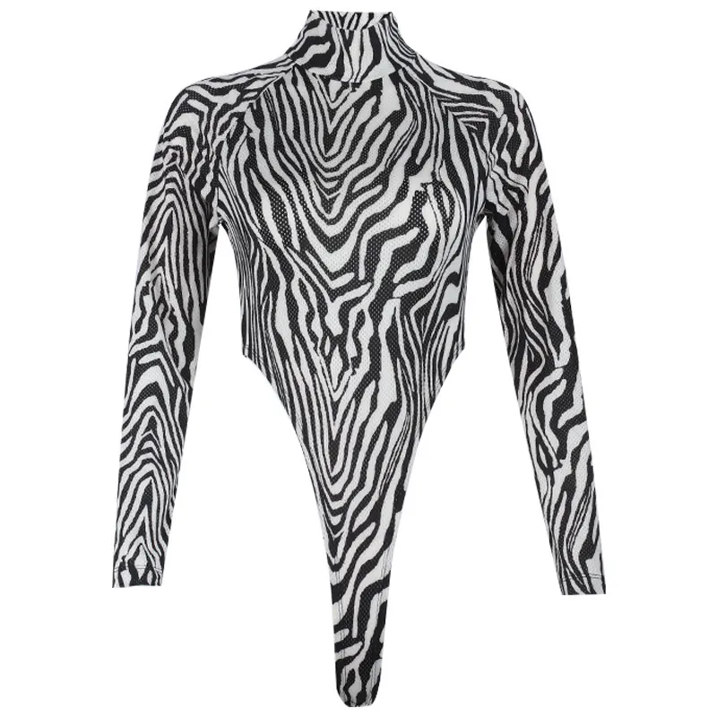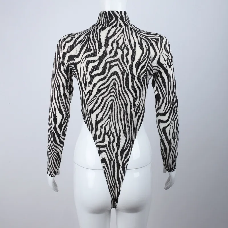 Áo Bodysuit Dài Tay Họa Tiết Sọc Ngựa Vằn