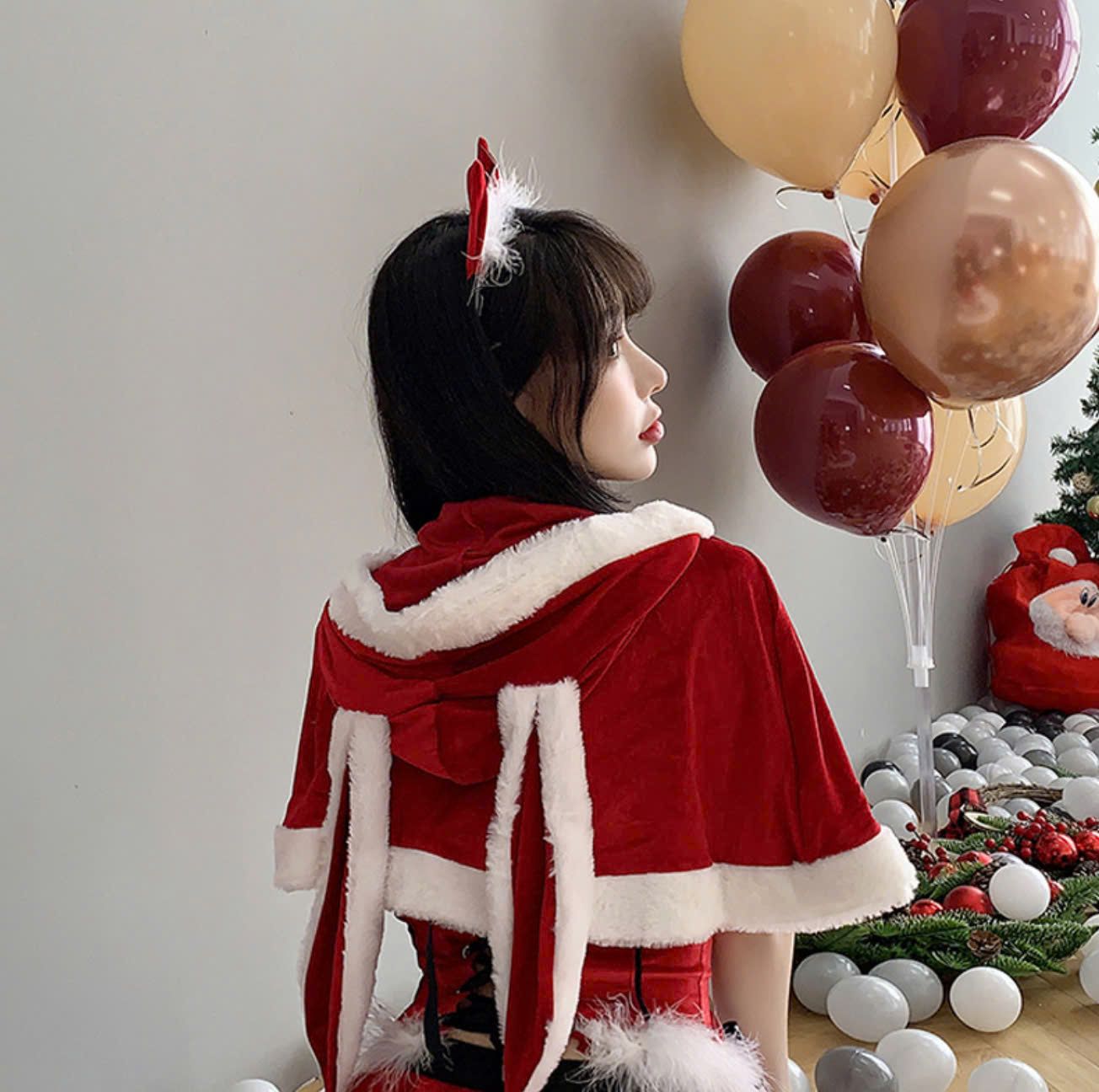 HBG0402 Áo Choàng Thỏ Giáng Sinh Đỏ