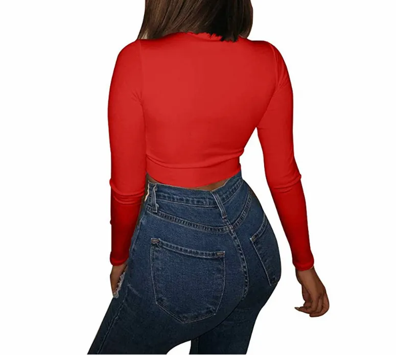 Áo Croptop Dài Tay Ôm Body Đủ Màu - Đỏ