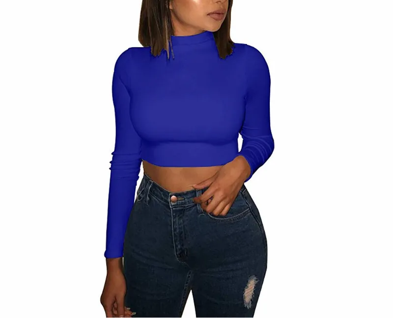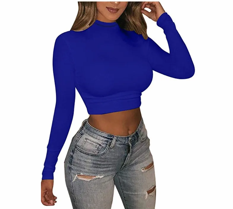Áo Croptop Dài Tay Ôm Body Đủ Màu - Xanh Dương