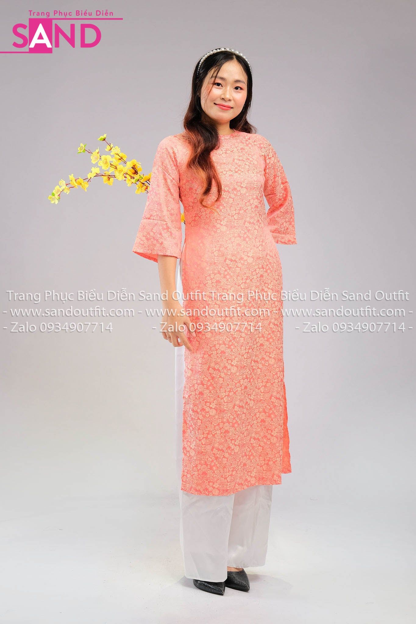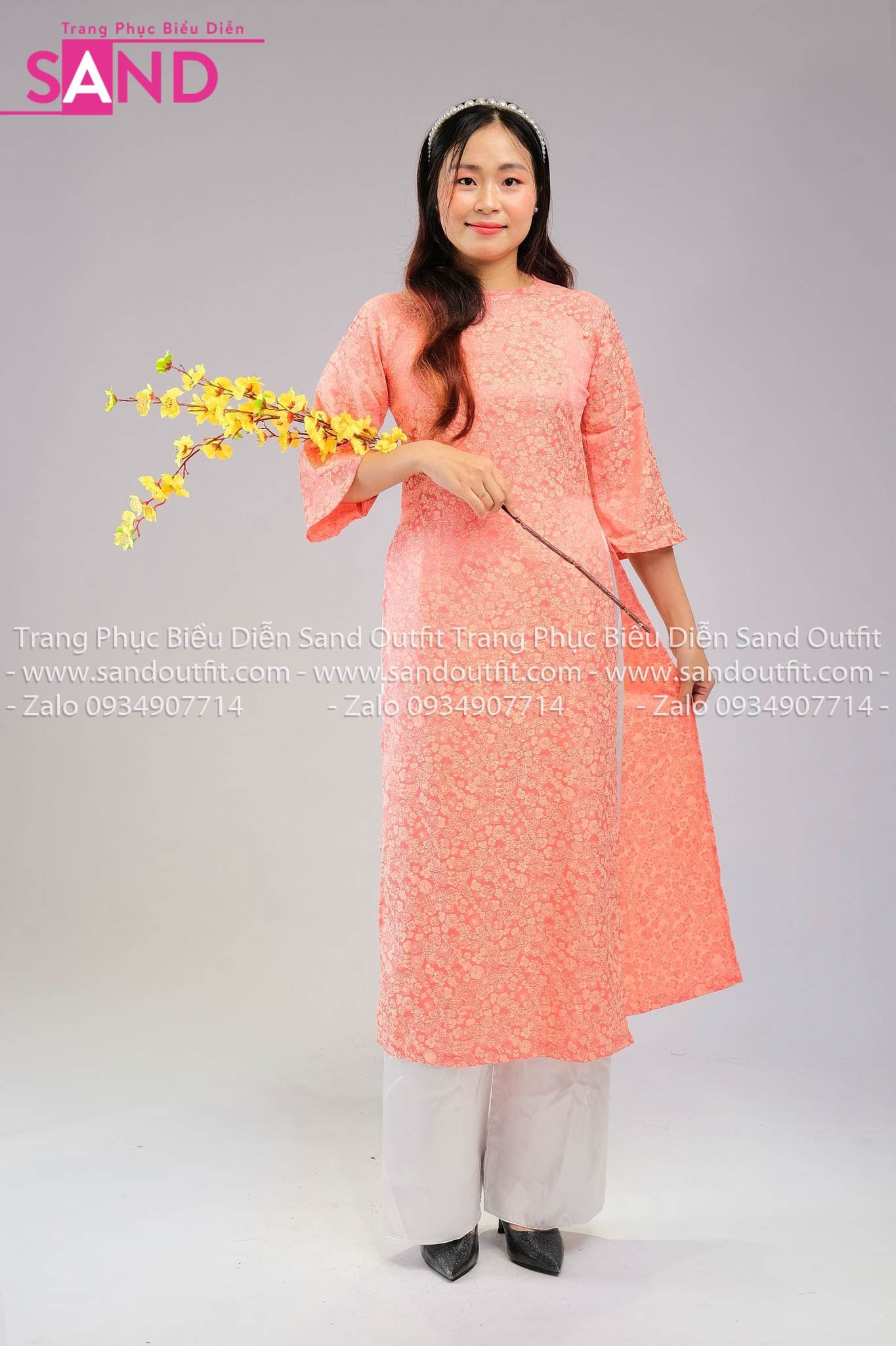 TAC0610 Áo Dài Gấm Hoa Hồng Dáng Suông Có Cổ - Màu Cam Nhạt