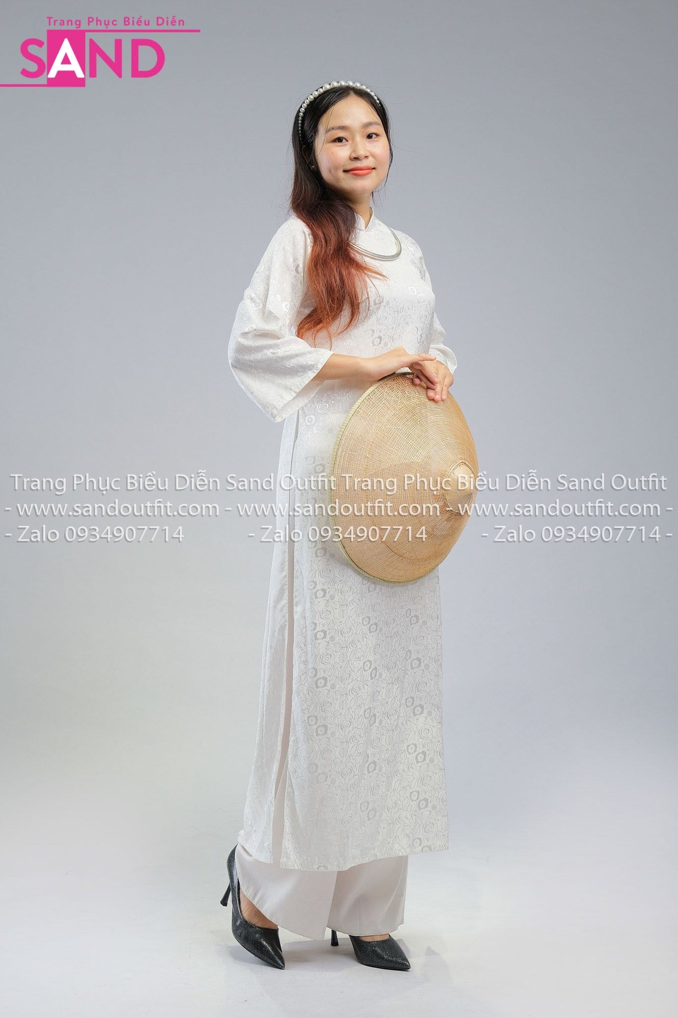 TAC0019 Áo Dài Gấm Hoa Hồng Dáng Suông Có Cổ - Màu Trắng
