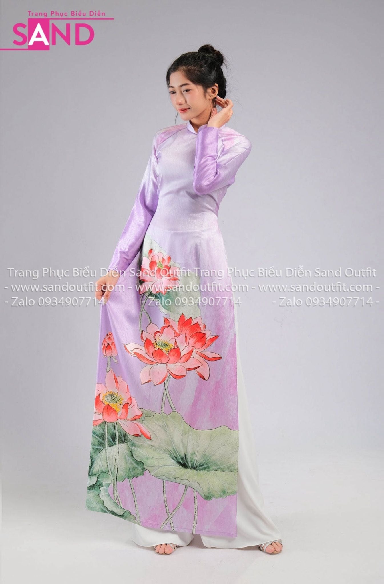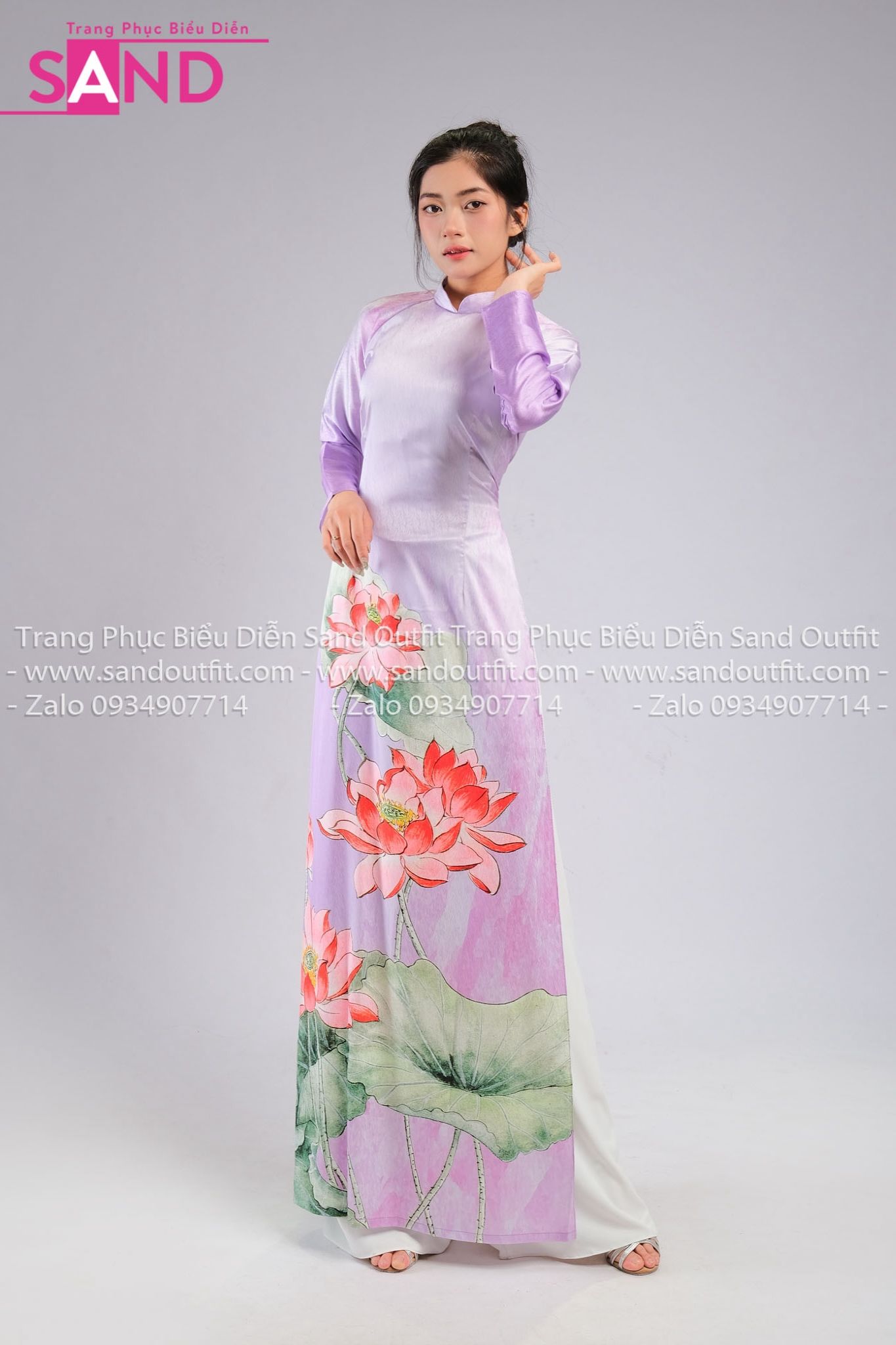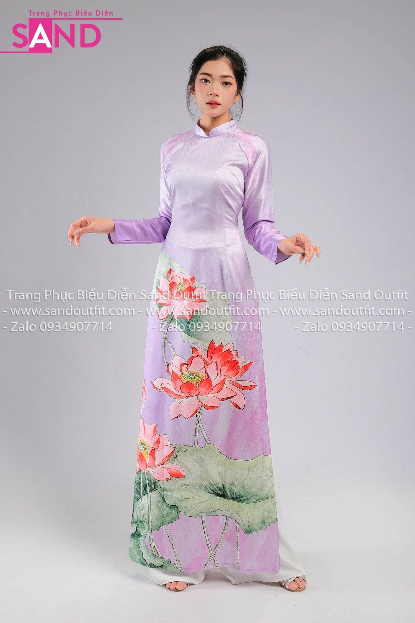 TAA0707 Áo Dài Hoạ Tiết Sen Cam - Màu Tím Nhạt
