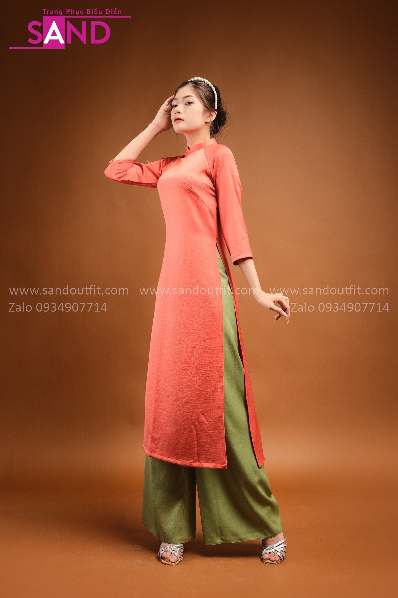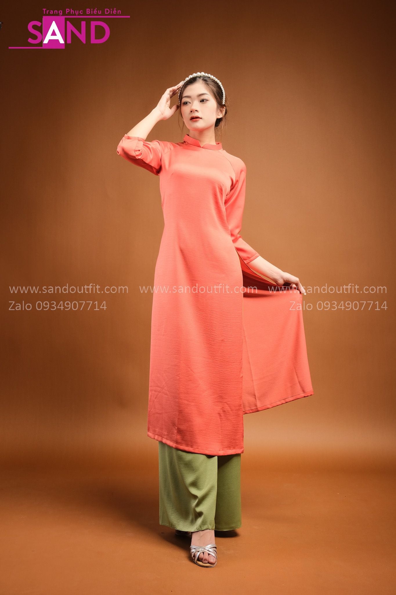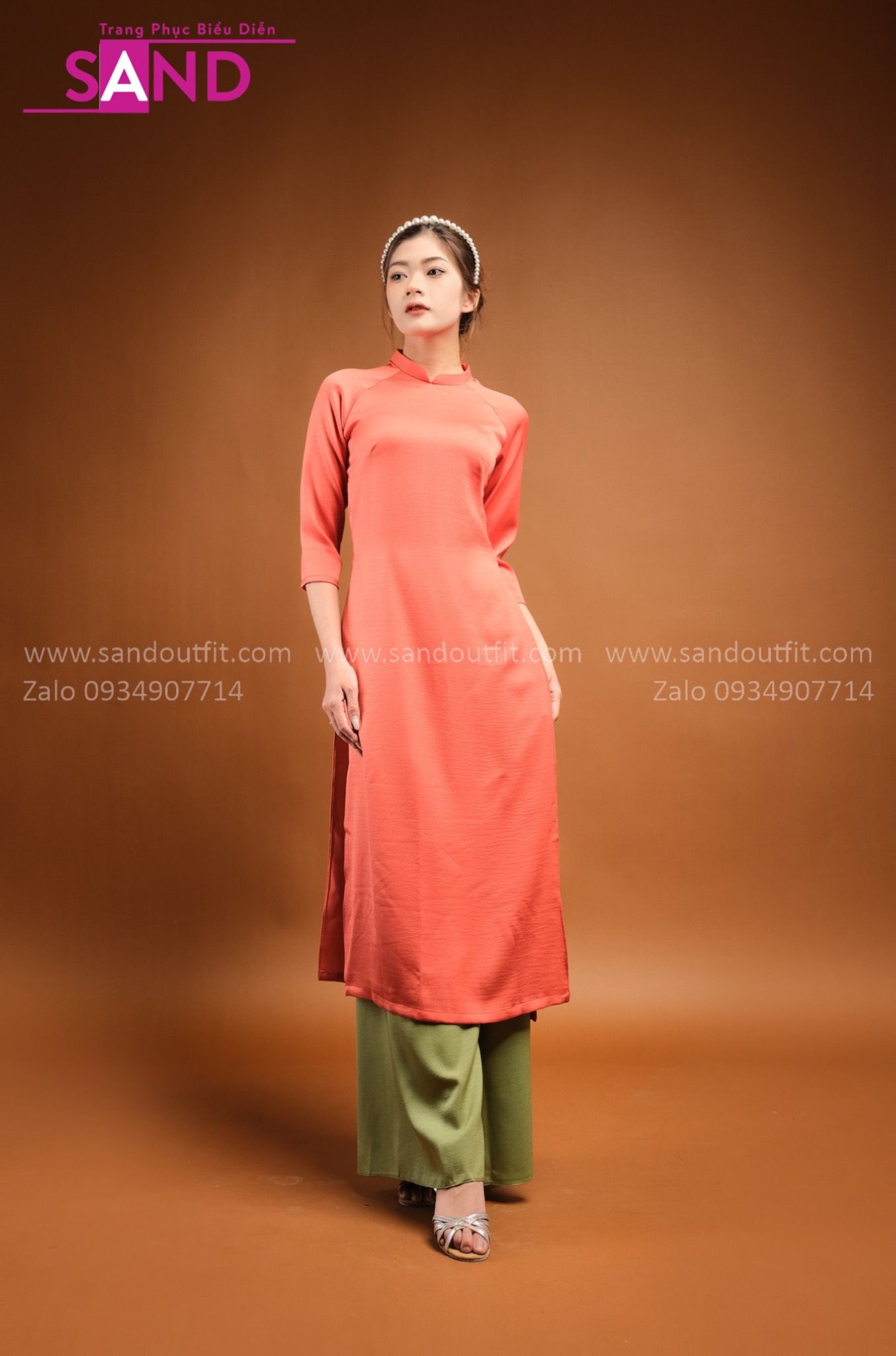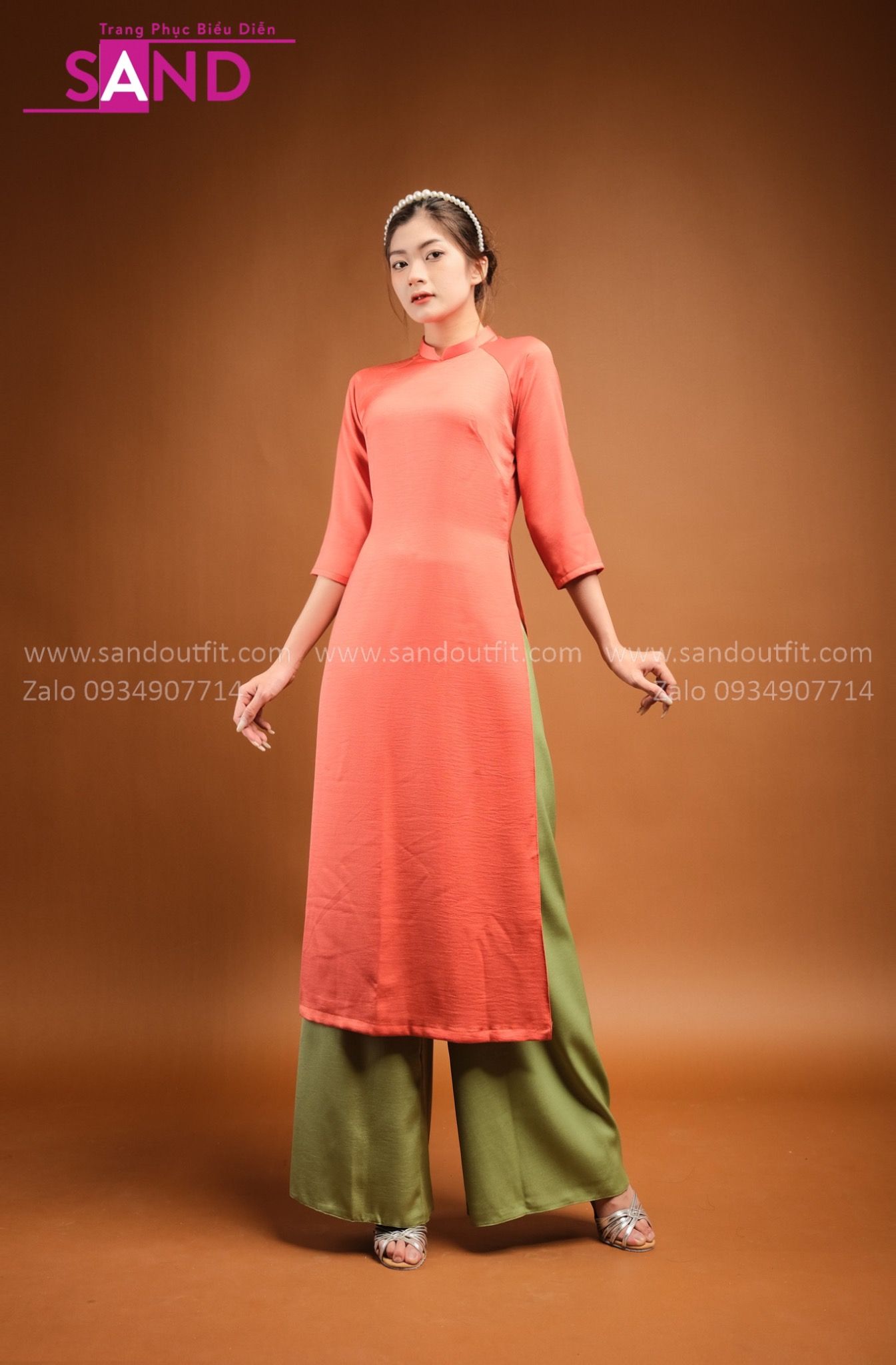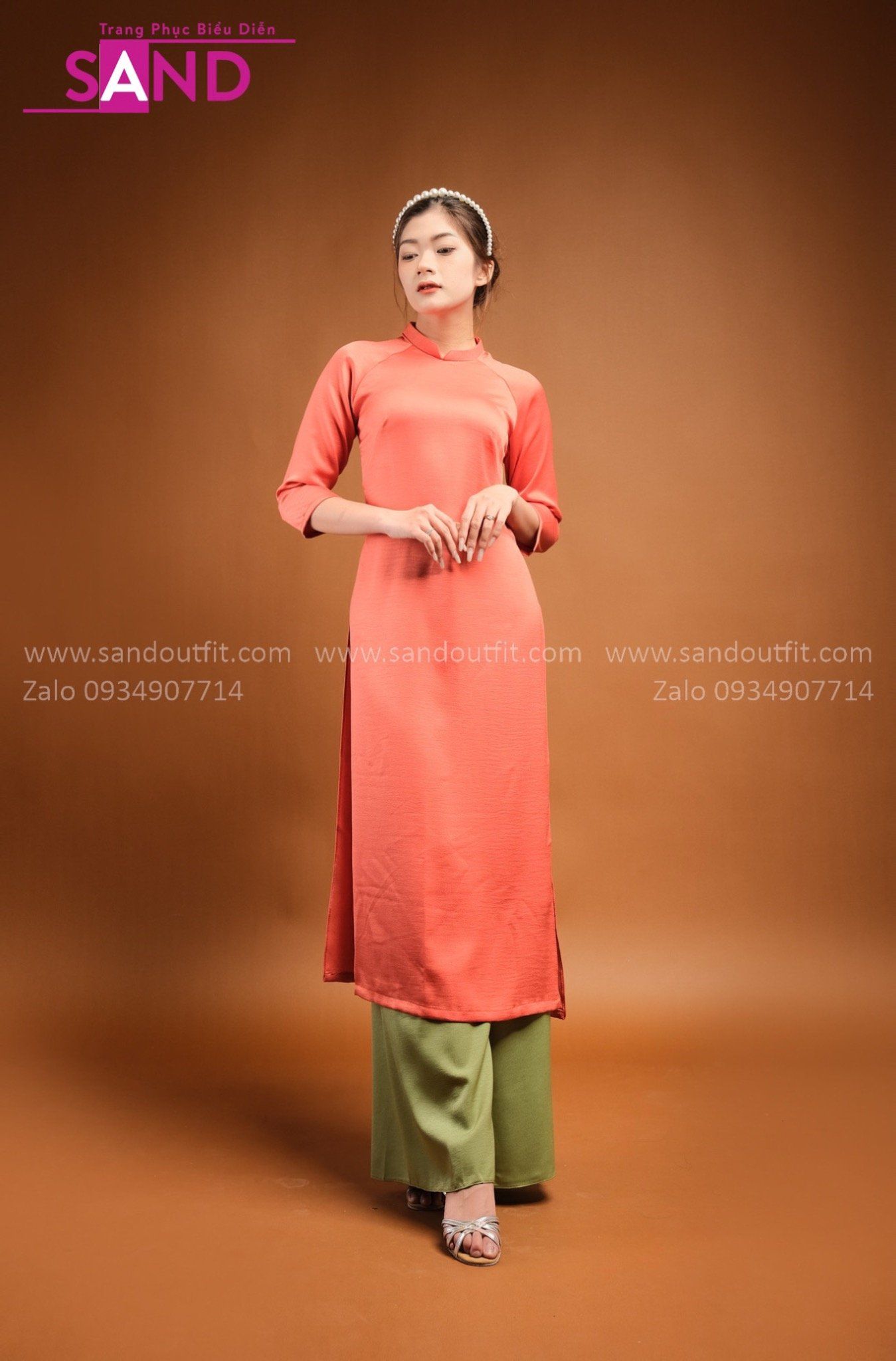 TAC0603 Áo Dài Lụa Tây Thi Cam