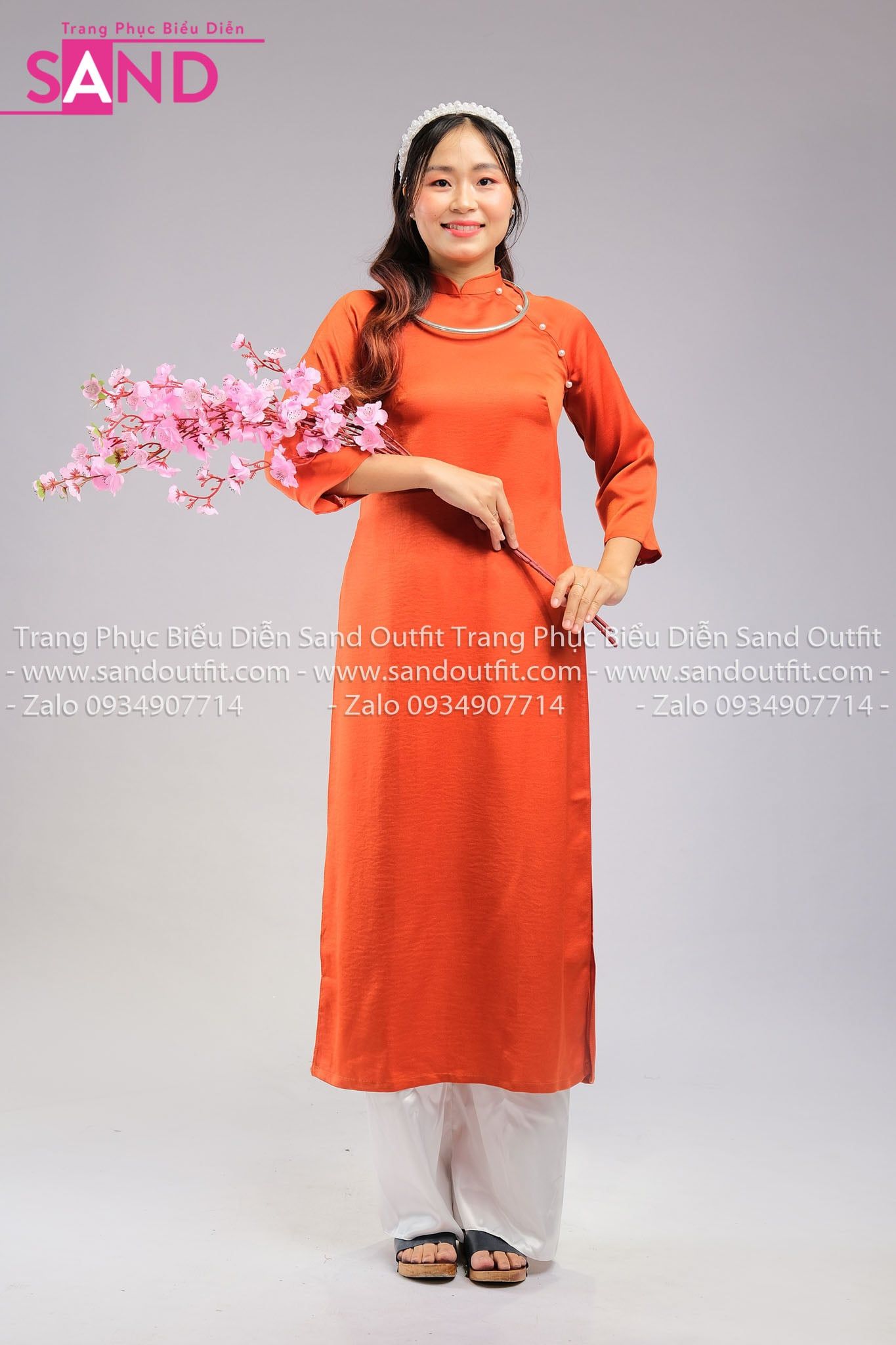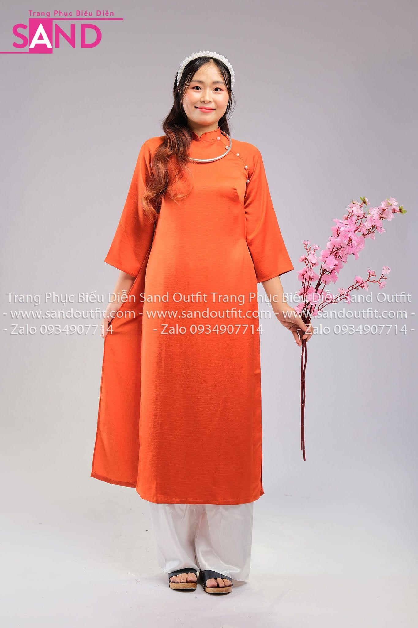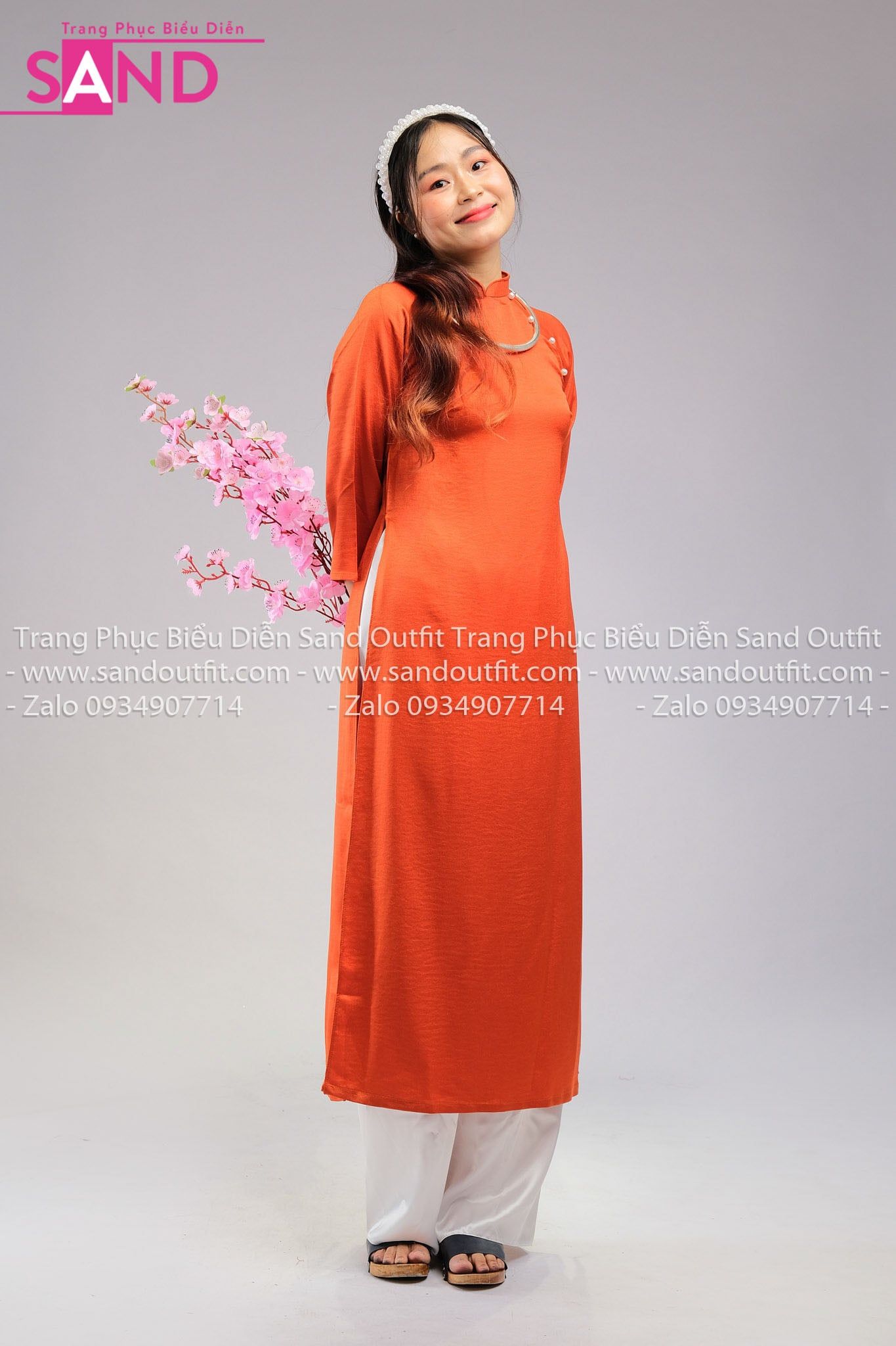 TAC0611 Áo Dài Lụa Tây Thi Màu Cam
