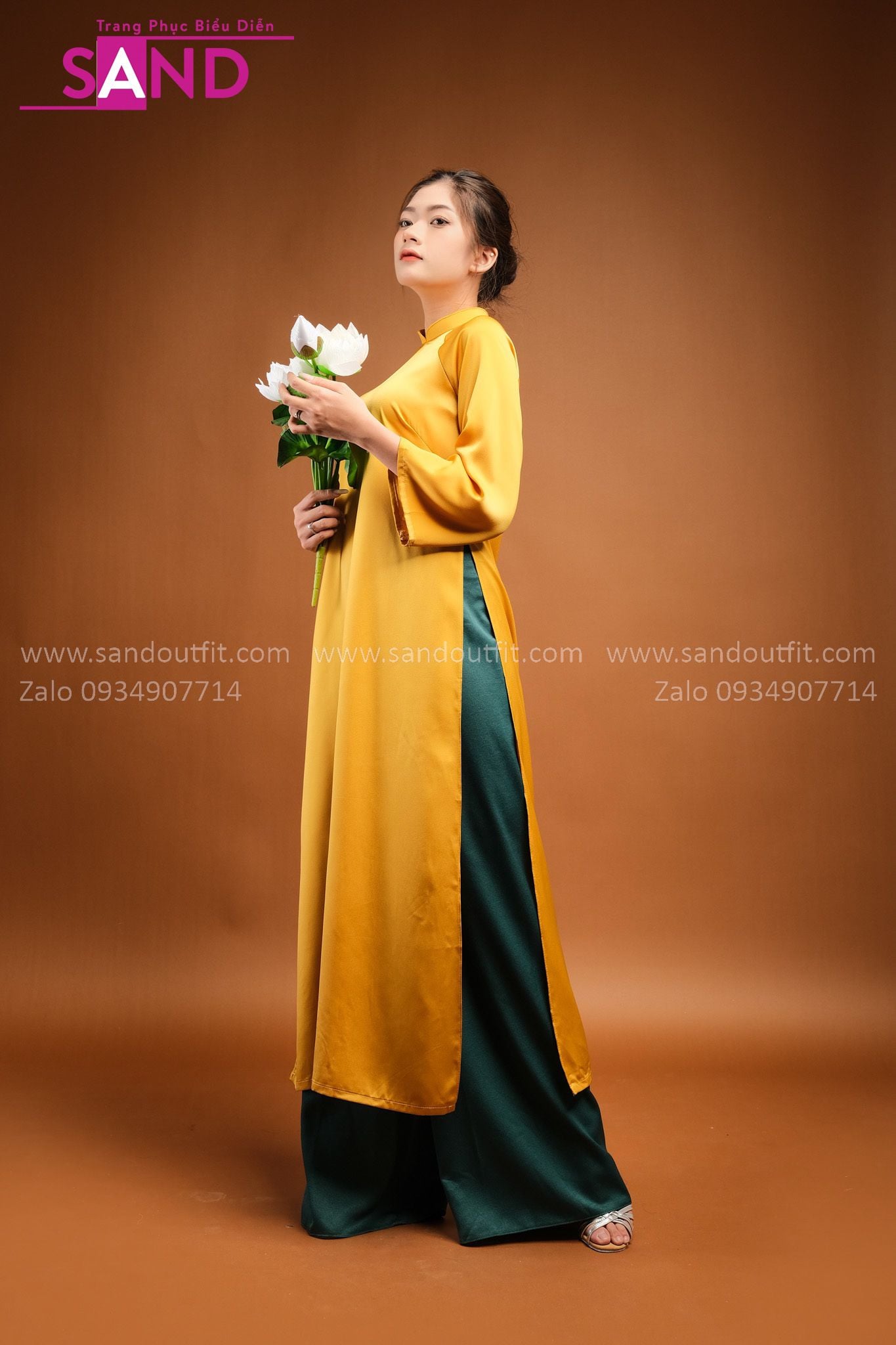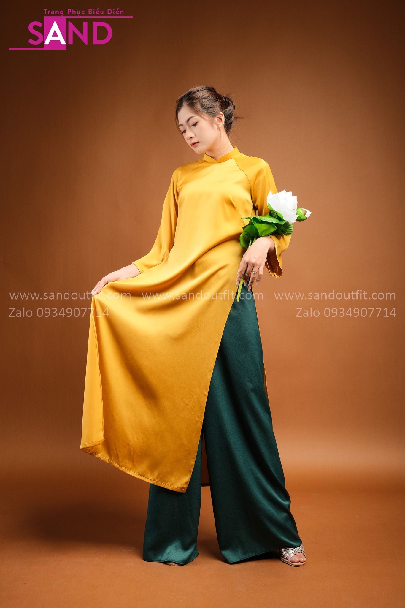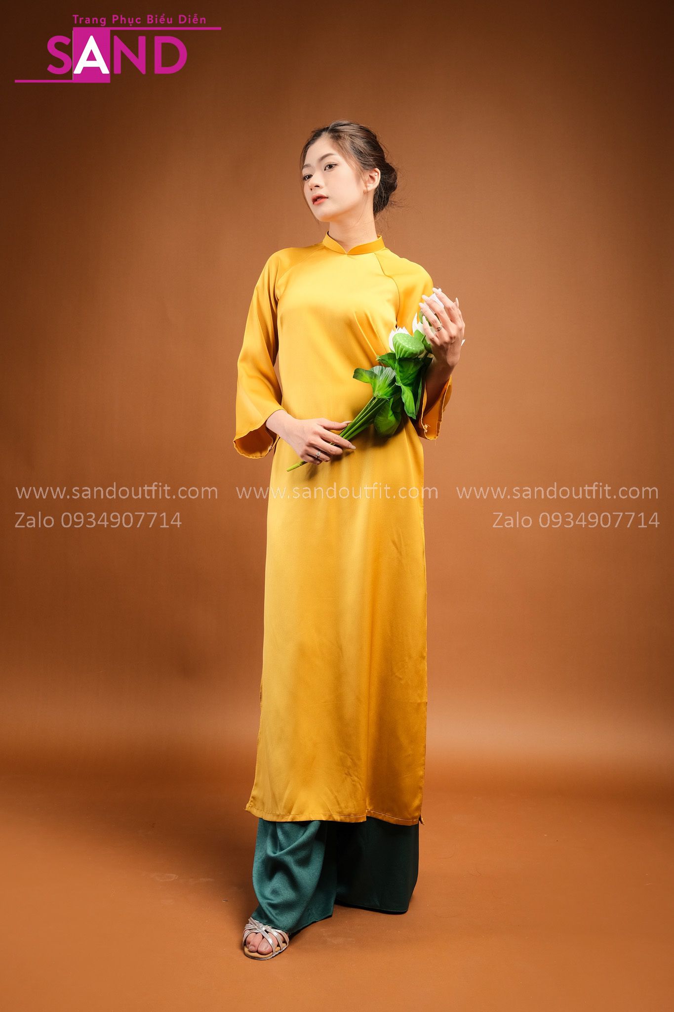 TAC0309 Áo Dài Lụa Tây Thi Vàng Đồng