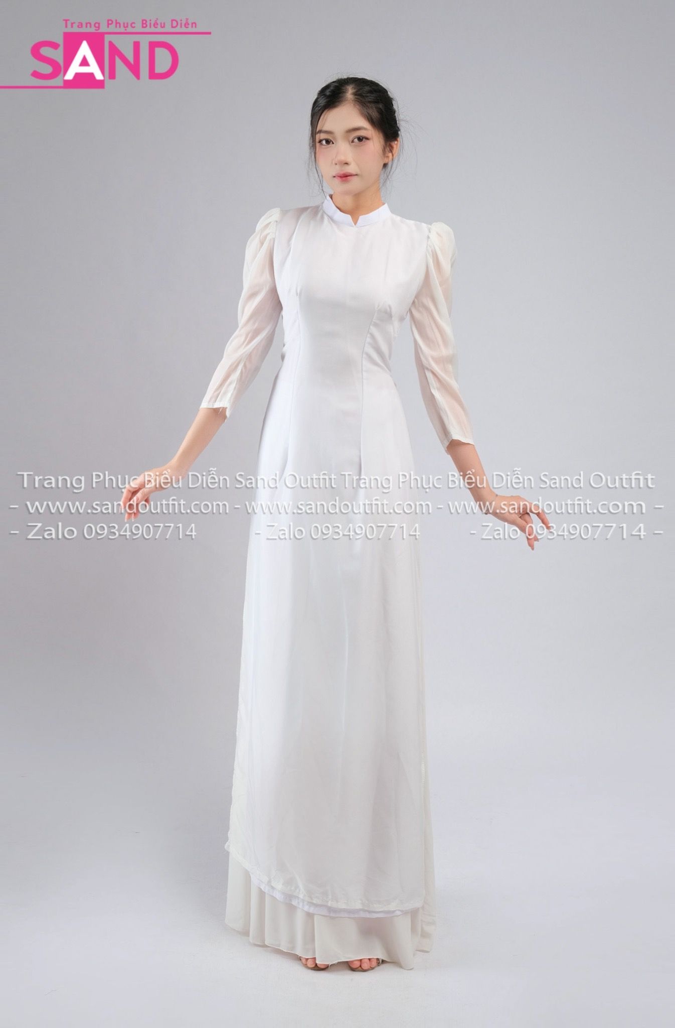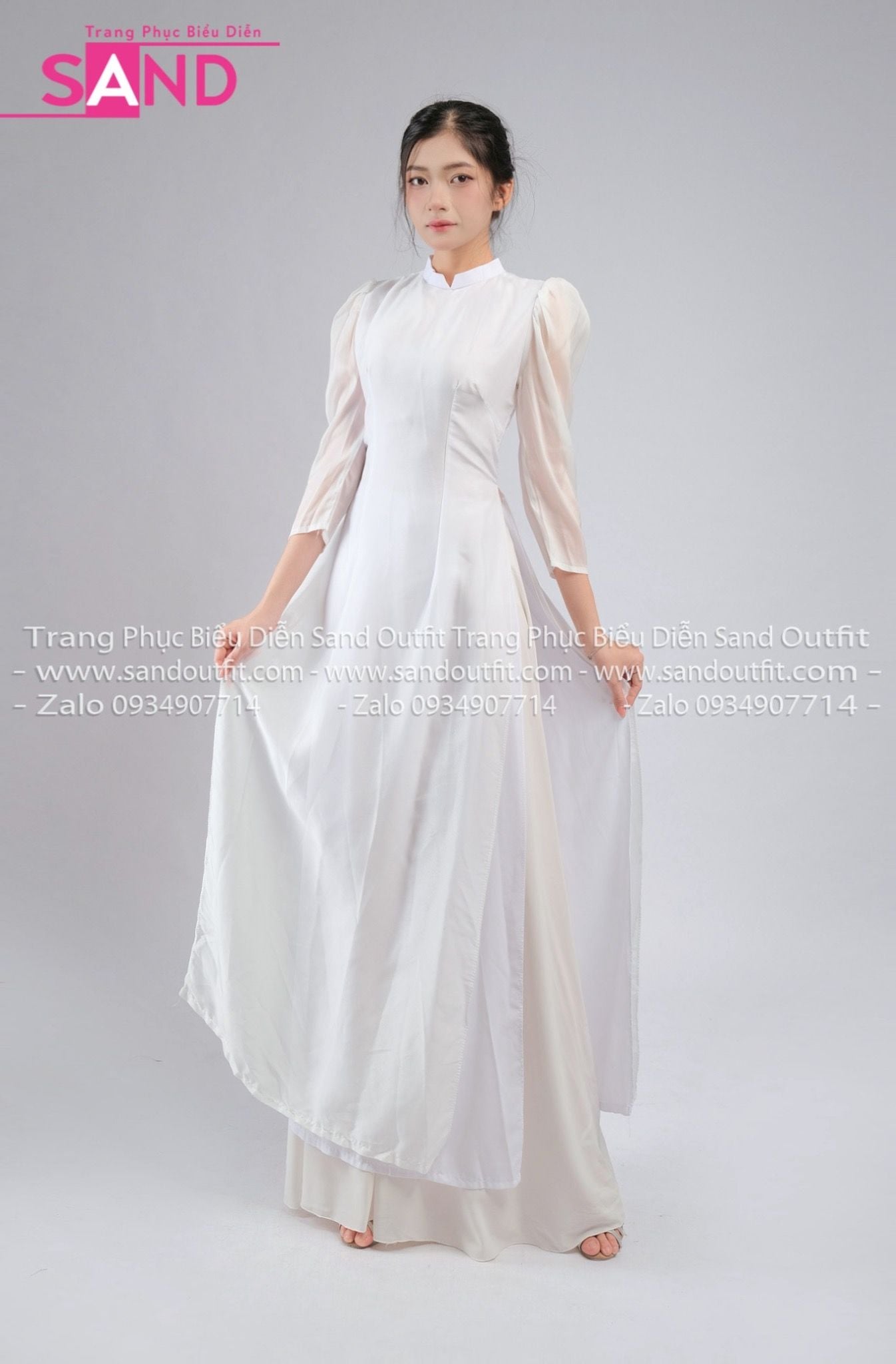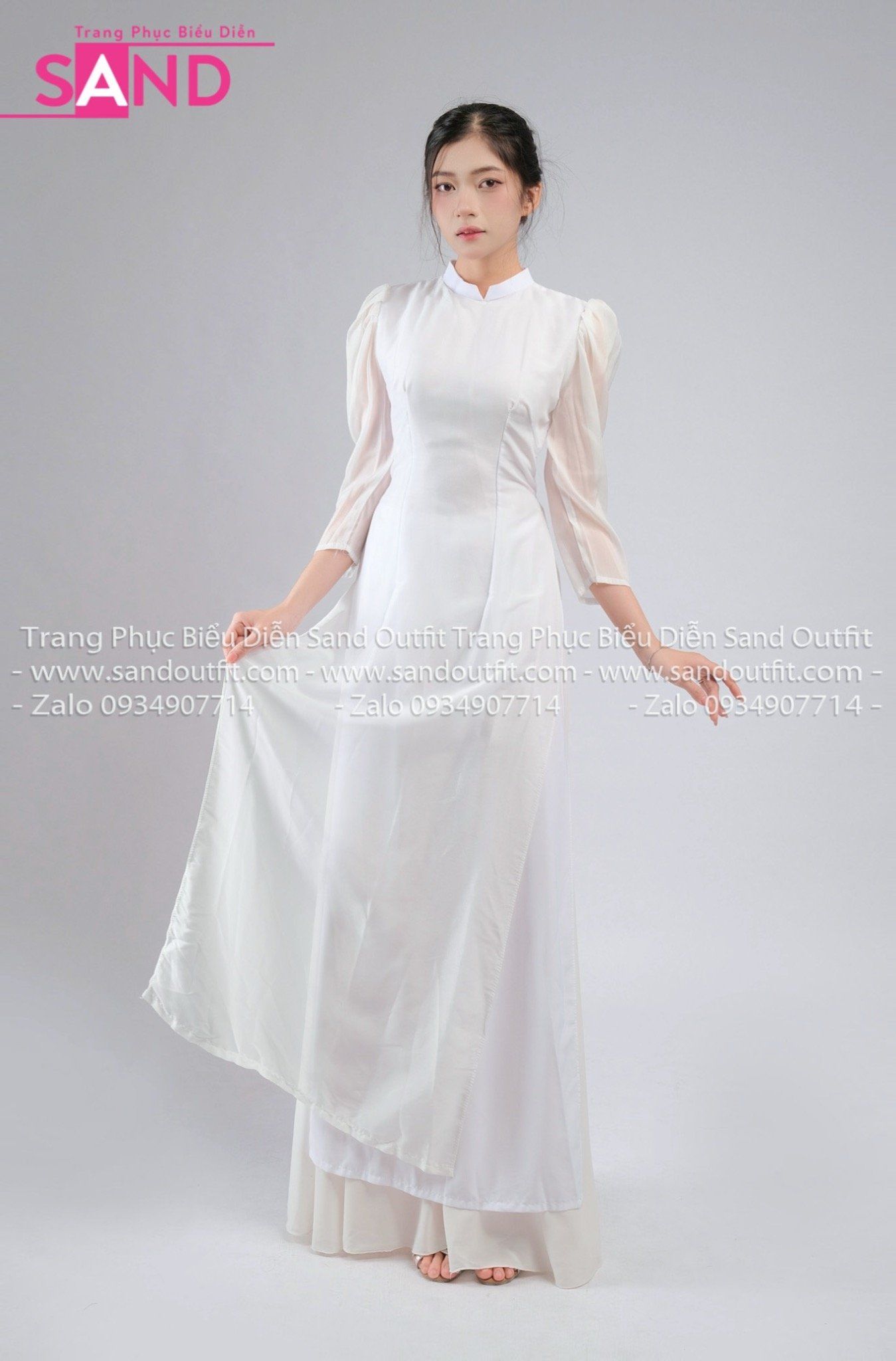 TAC0018 Áo Dài Nữ 4 Tà Tay Bồng Voan - Trắng