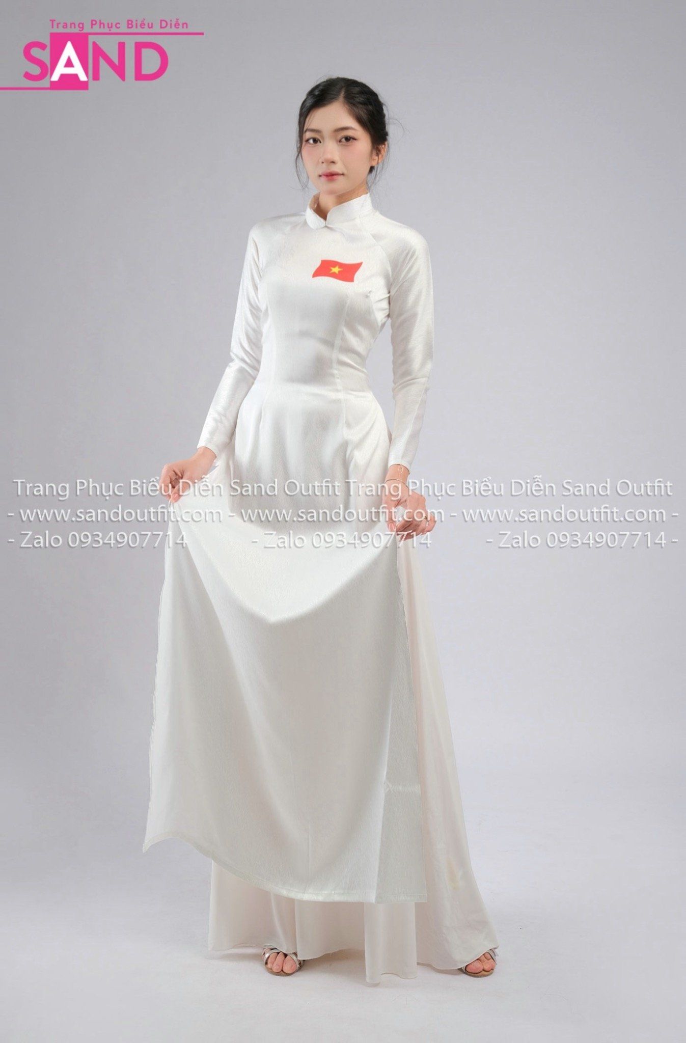 TAA0006 Áo Dài Nữ Phi Hoạ Tiết In Cờ Đỏ Sao Vàng - Trắng