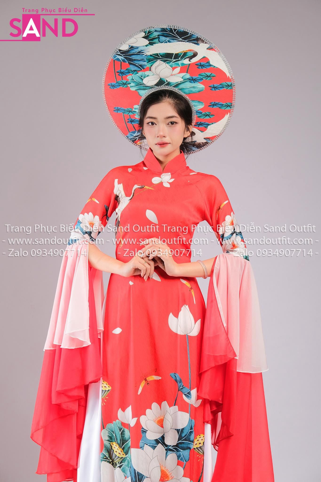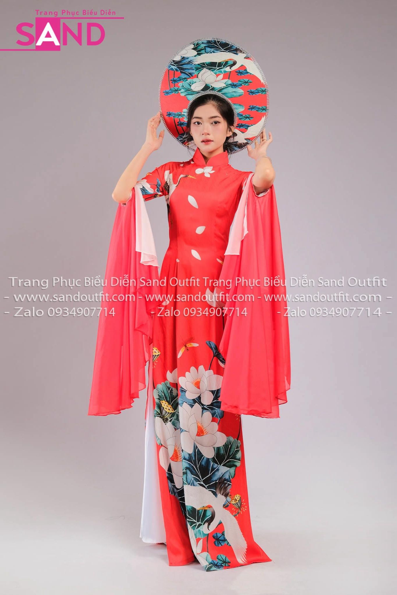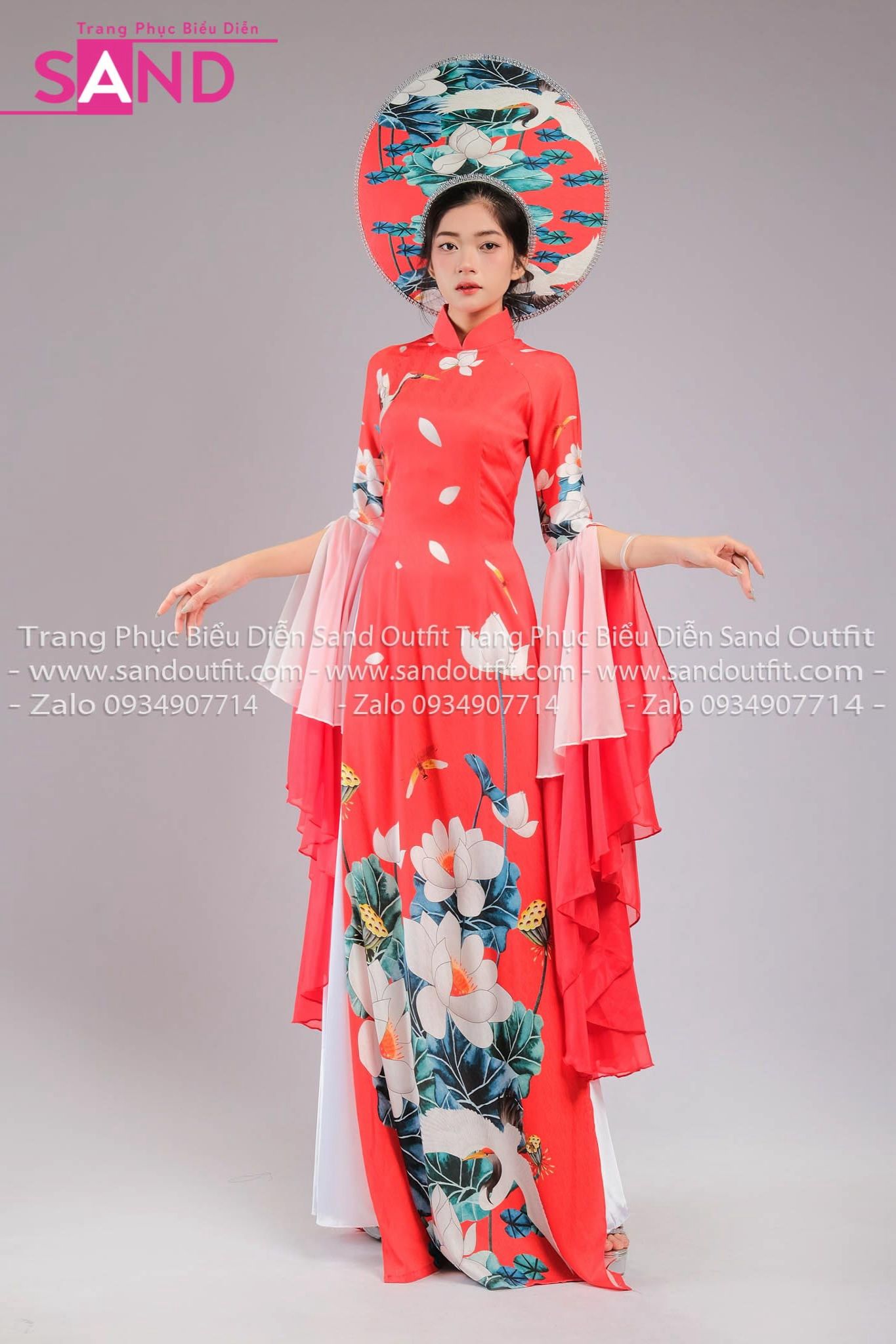 TAE0409 Áo Dài Thiết Kế Tay Voan Hoạ Tiết Sen Táp Đỏ - Màu Đỏ ( KÈM MẤN )