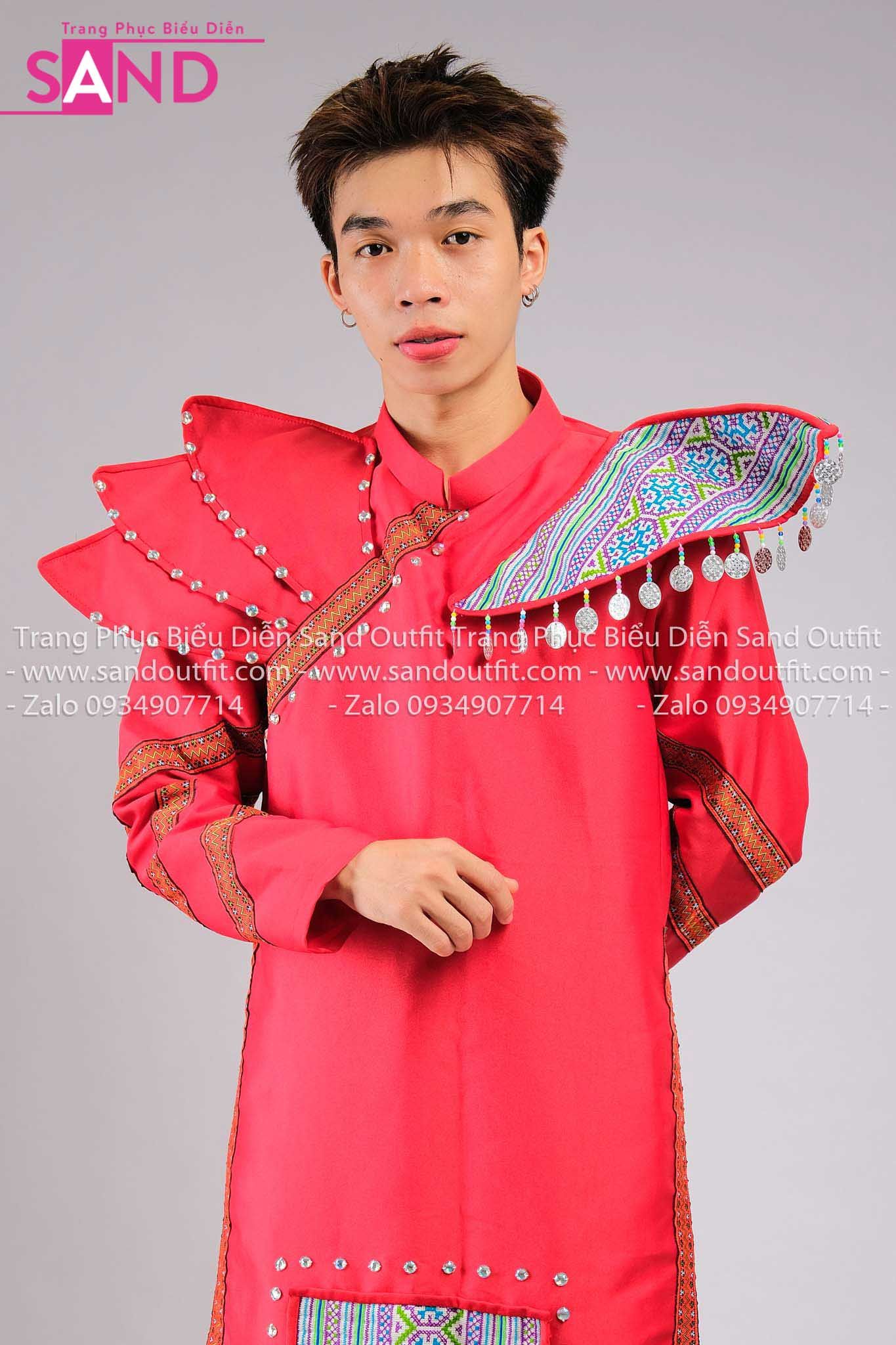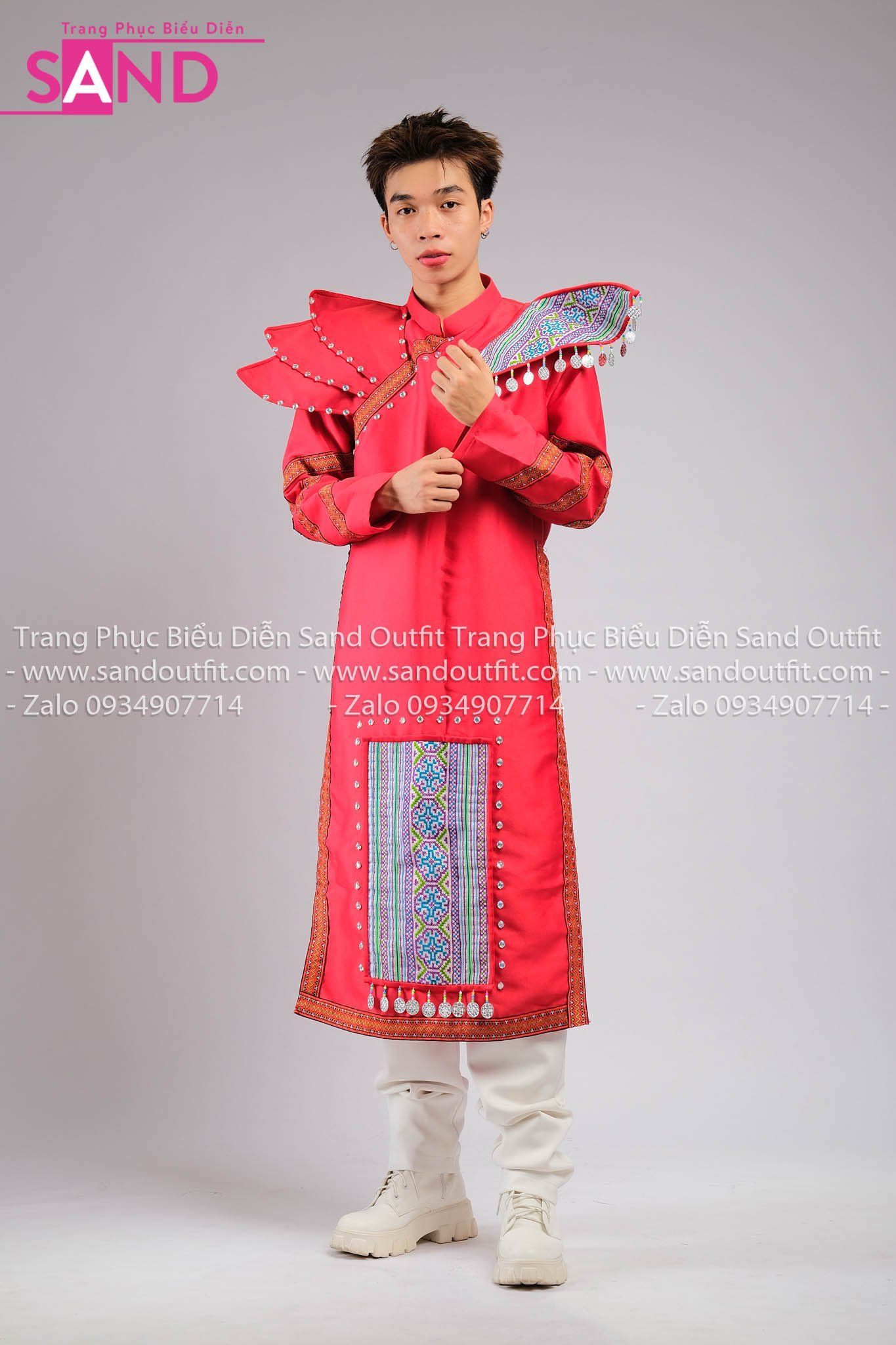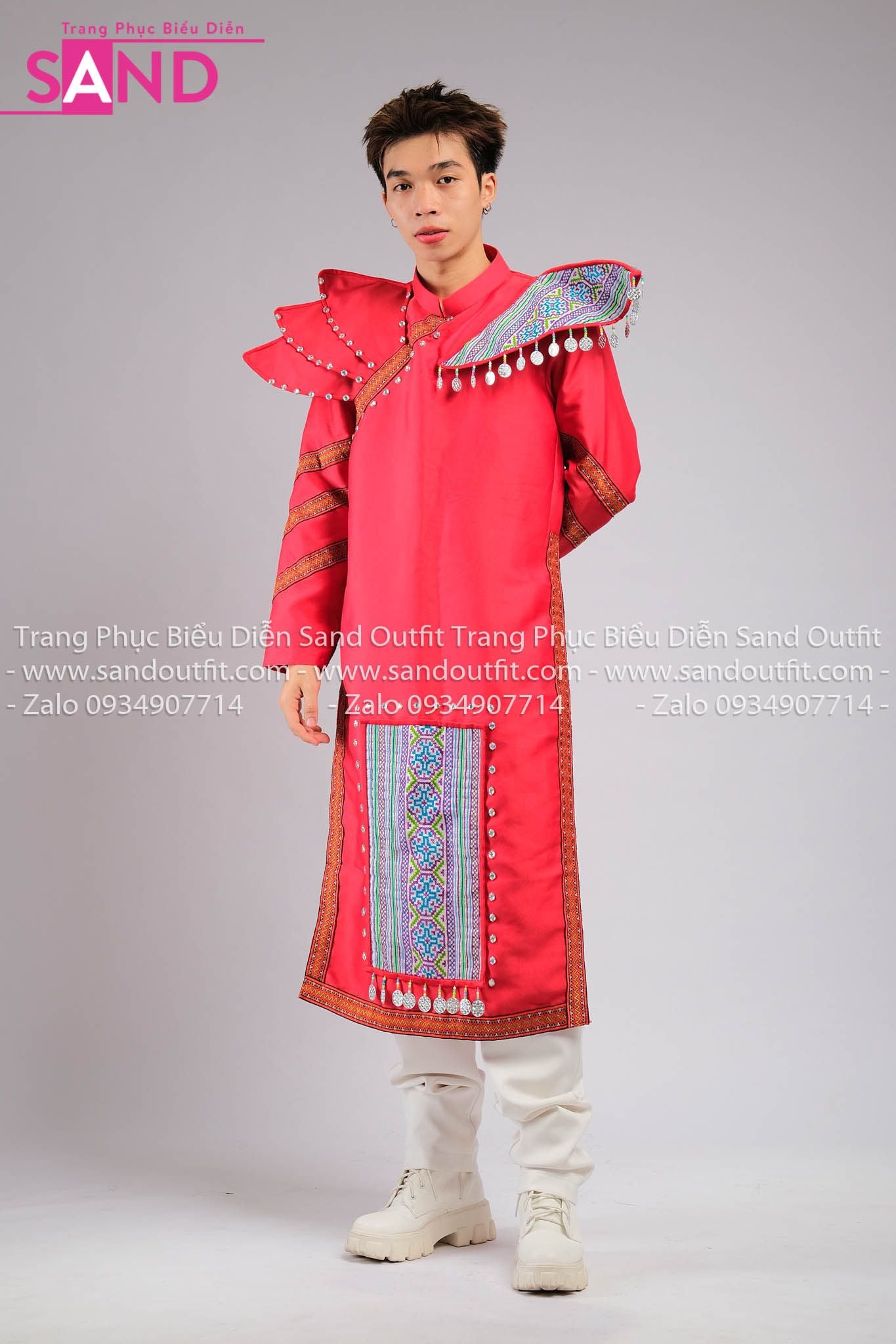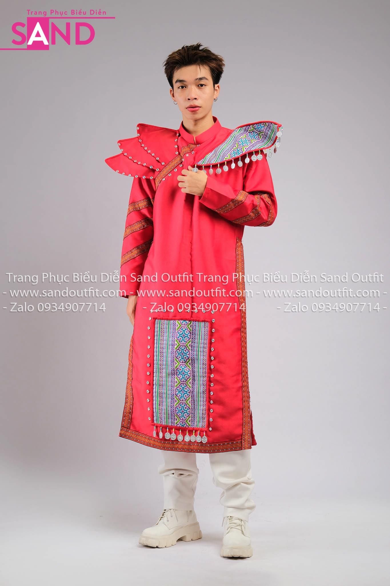 TAT0410 Áo Dài Thổ Cẩm Nam Thiết Kế Cầu Vai - Đỏ