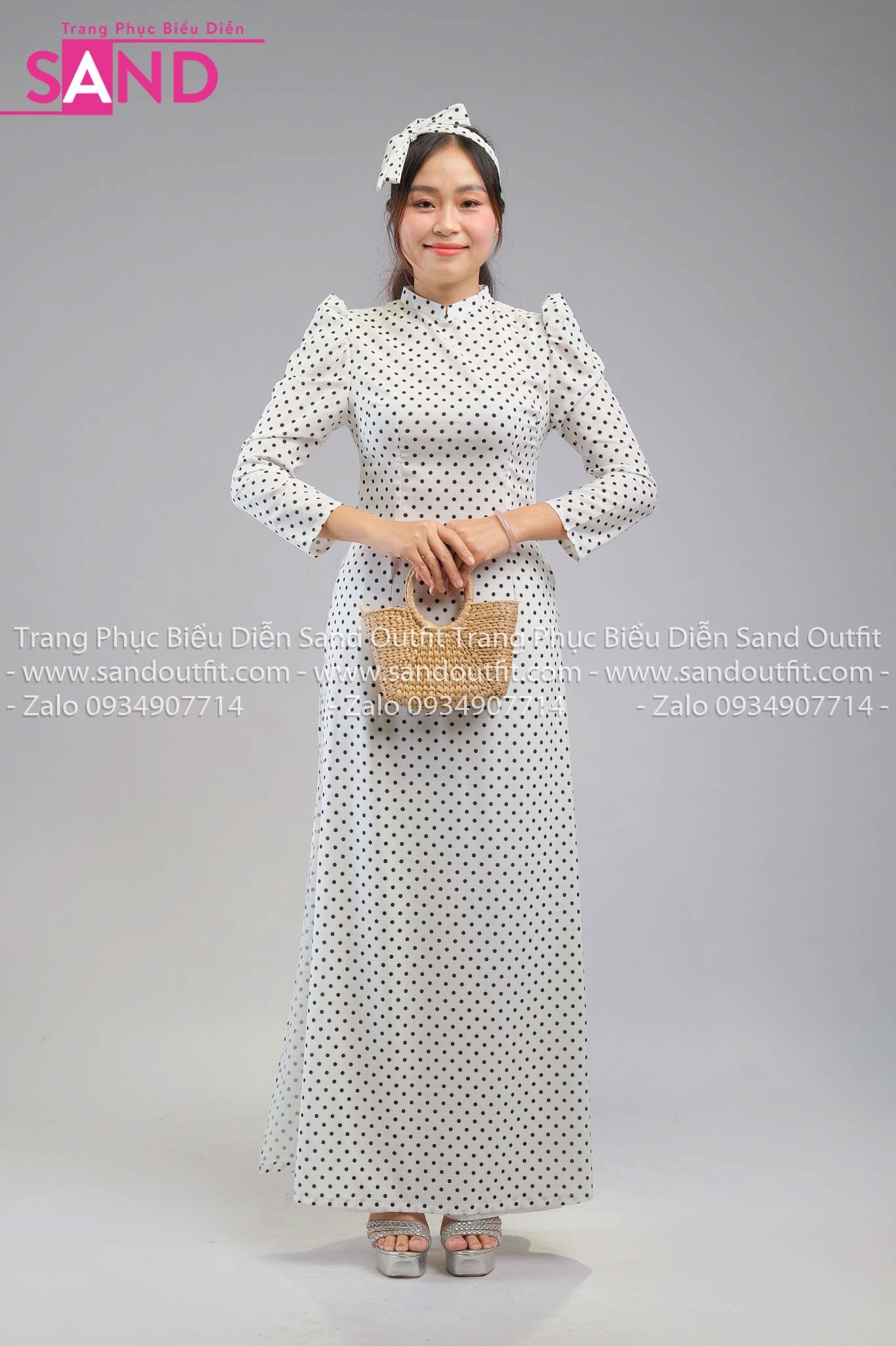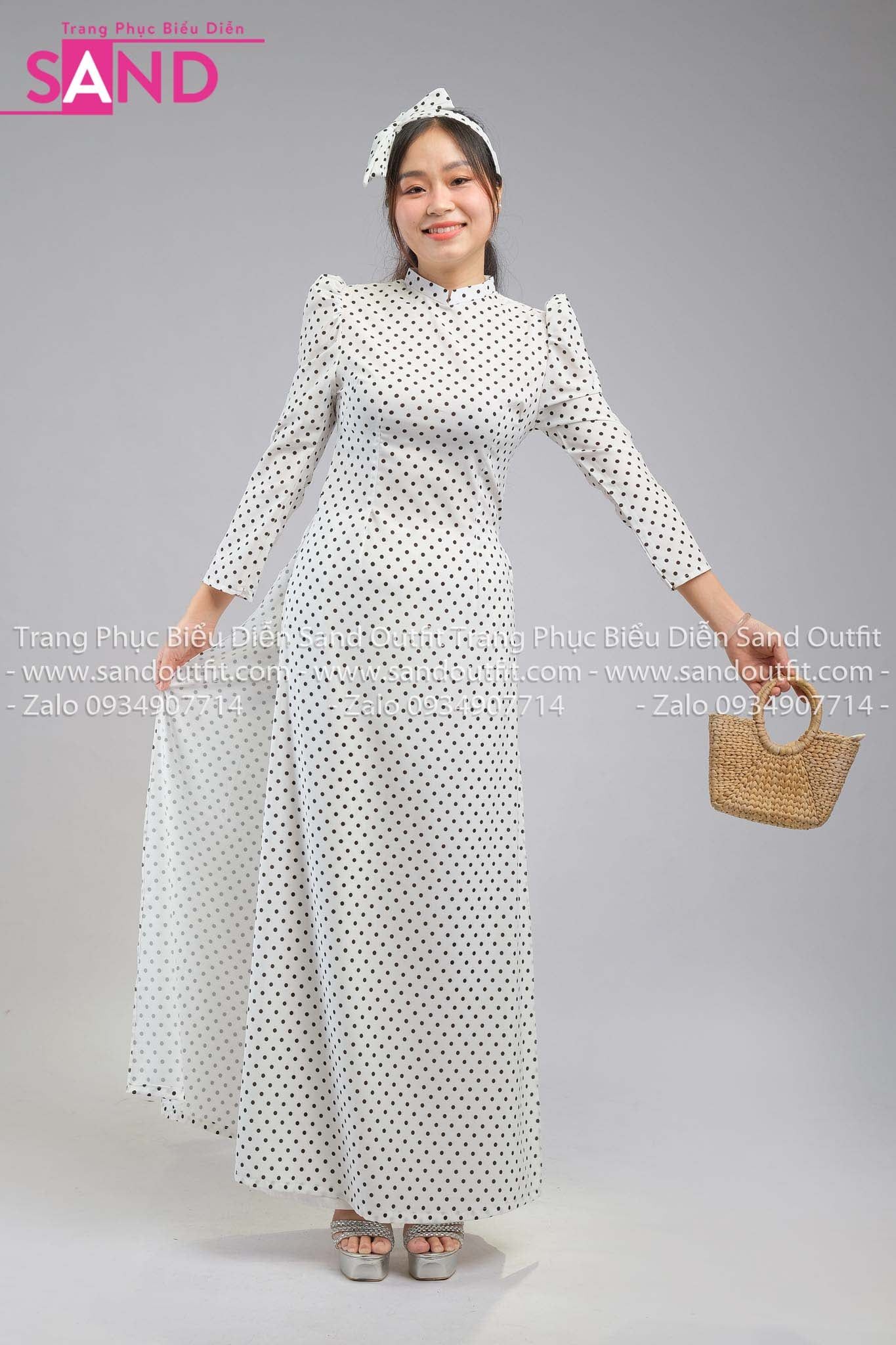 TAA0101 Áo Dài Trắng Chấm Bi Đen (Cô Ba Sài Gòn )