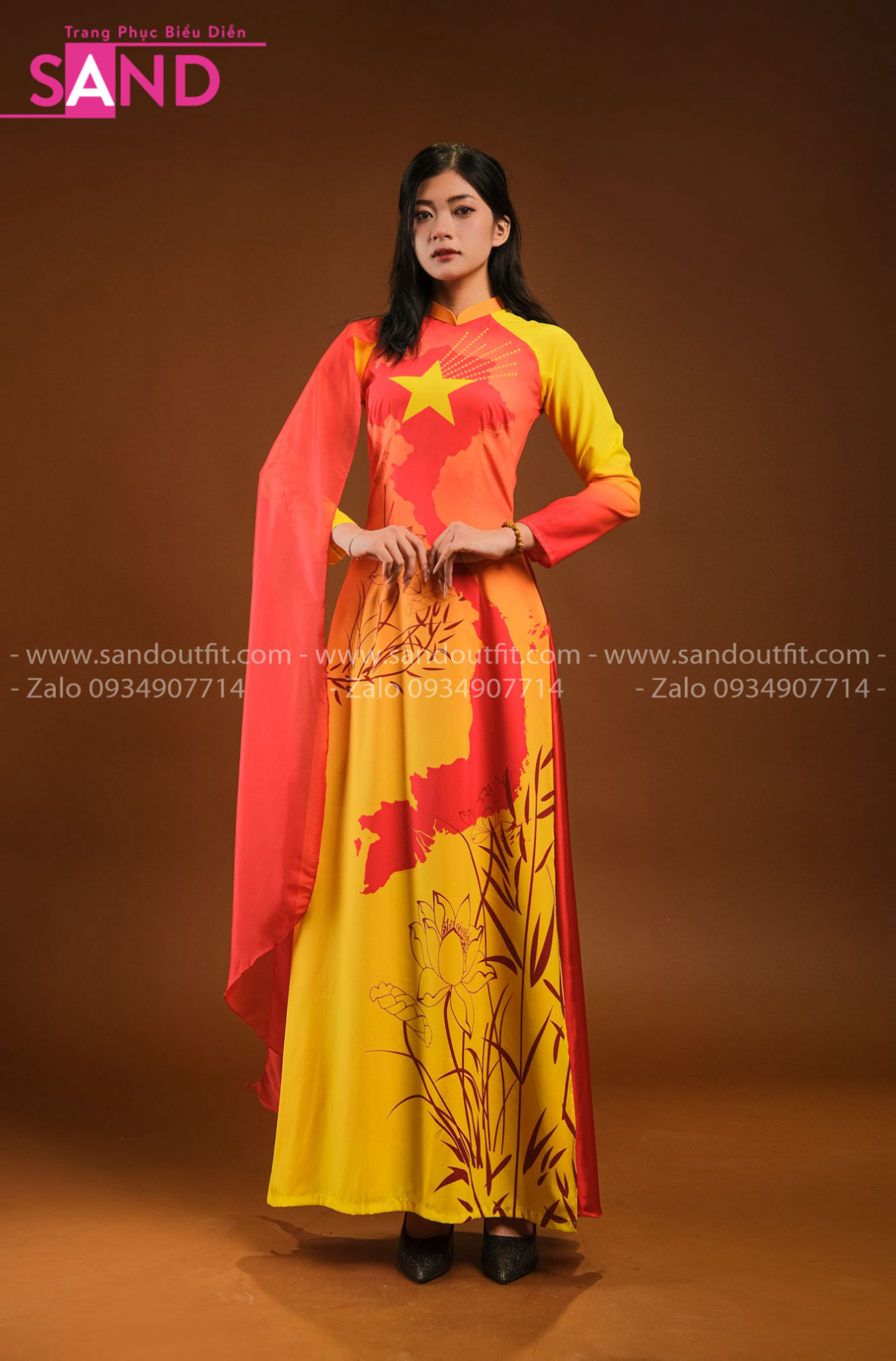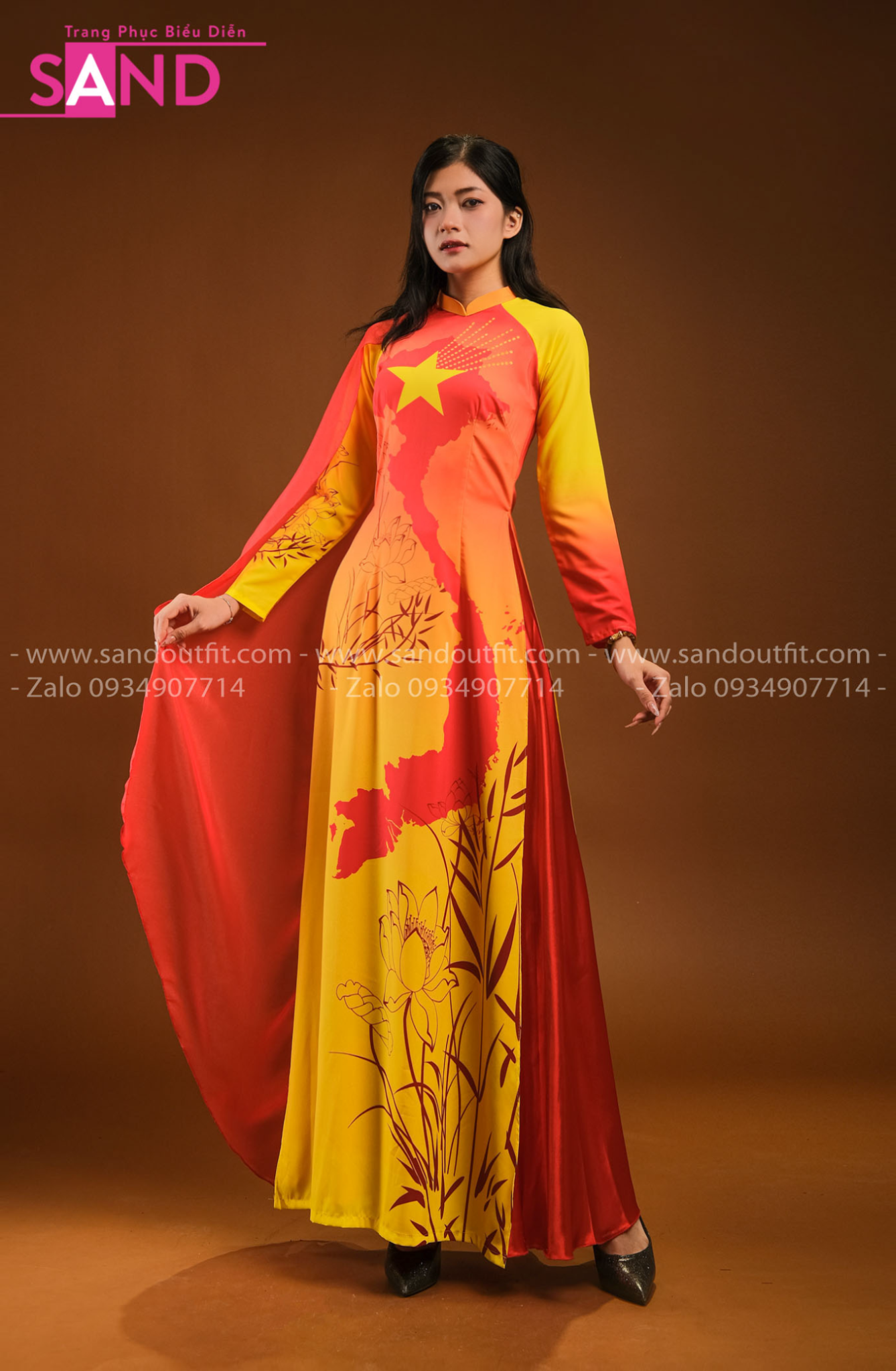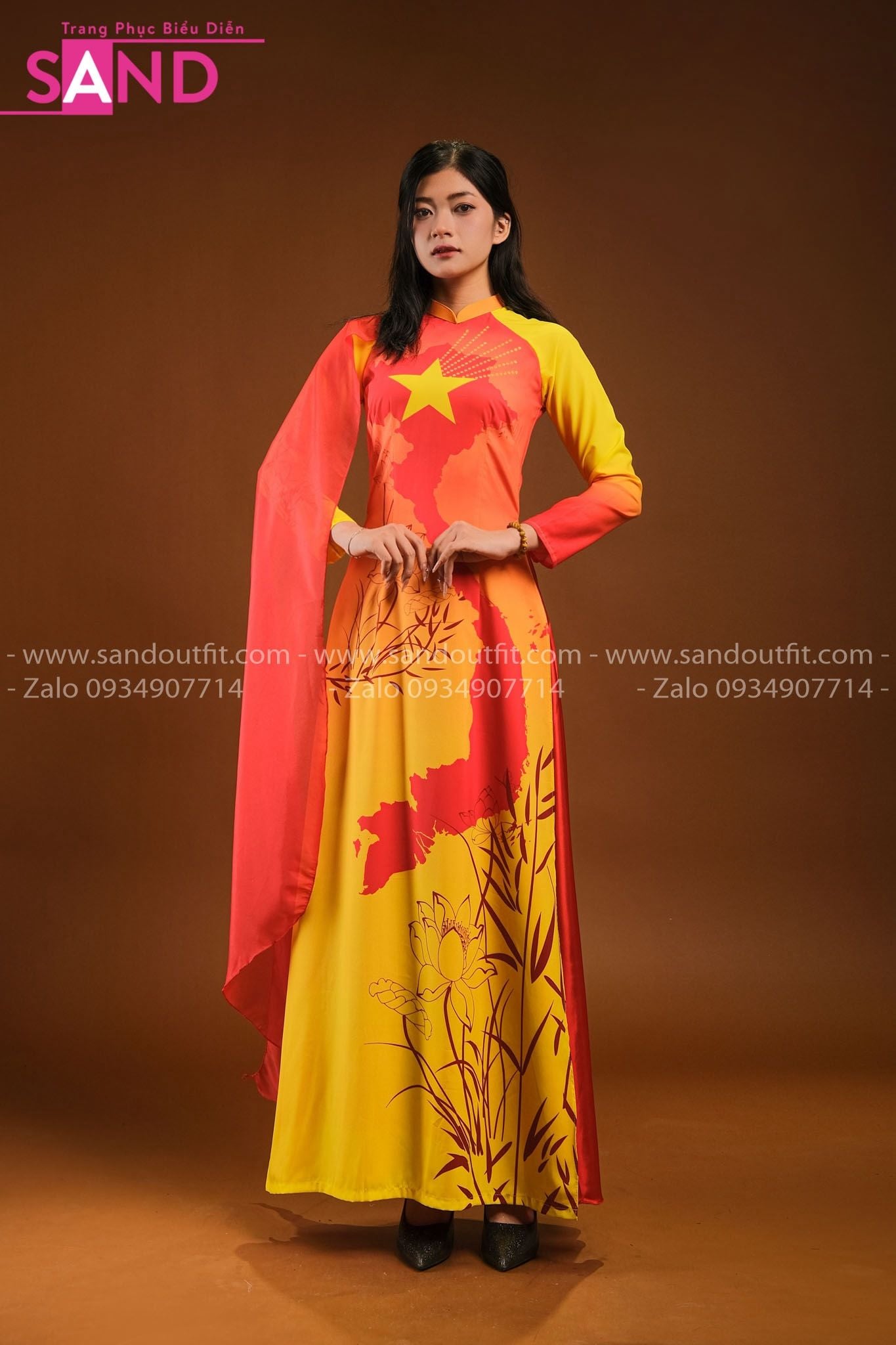 TAC0319 Áo Dài Vàng Tay Lơi Hoạ Tiết Bản Đồ - Nữ
