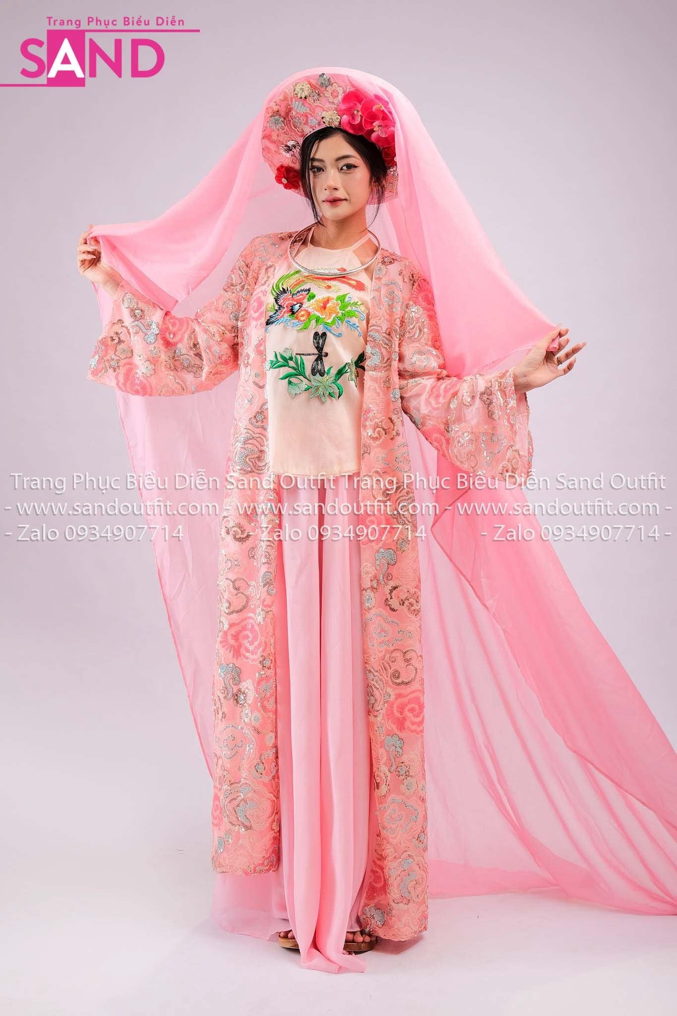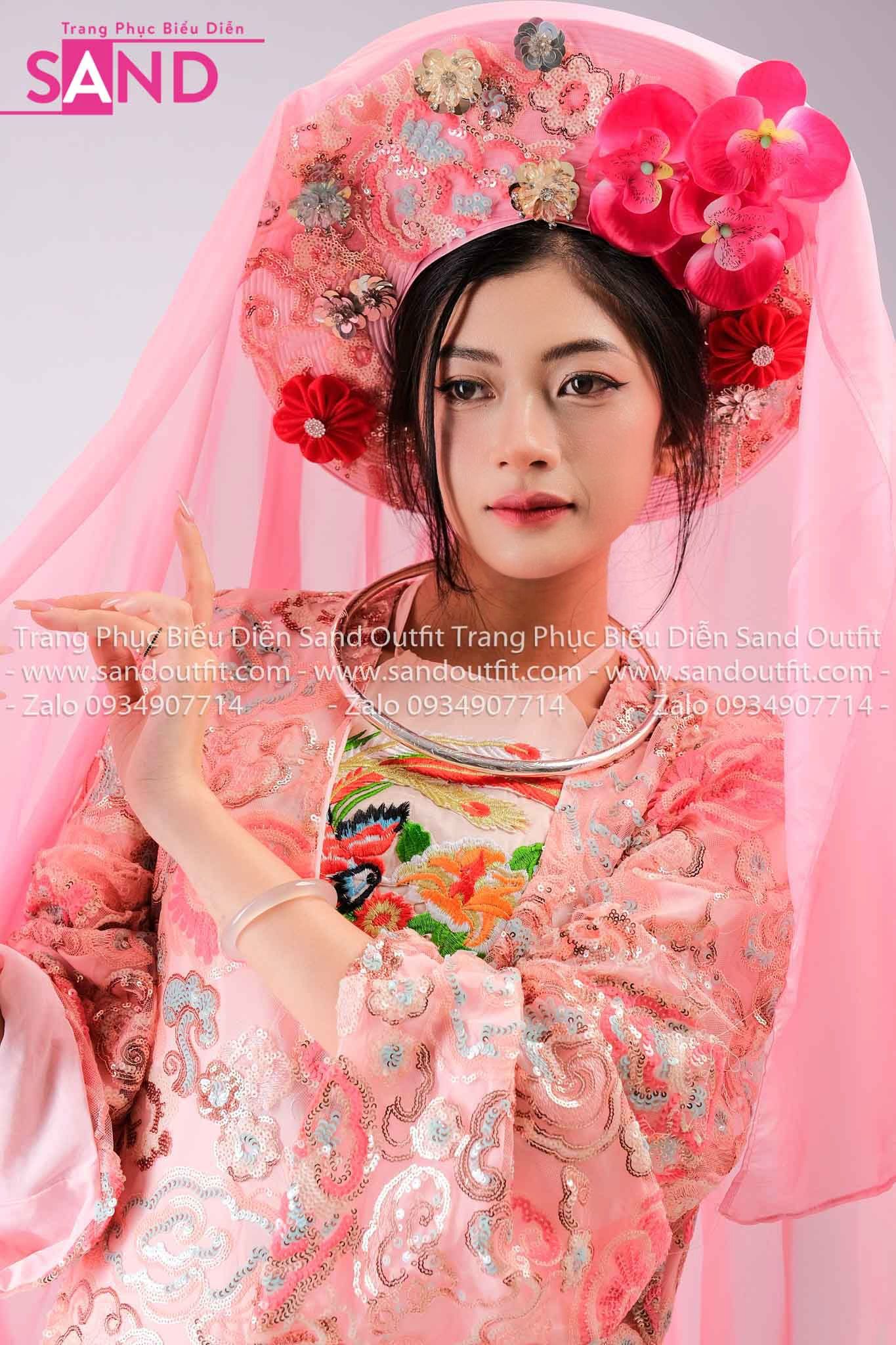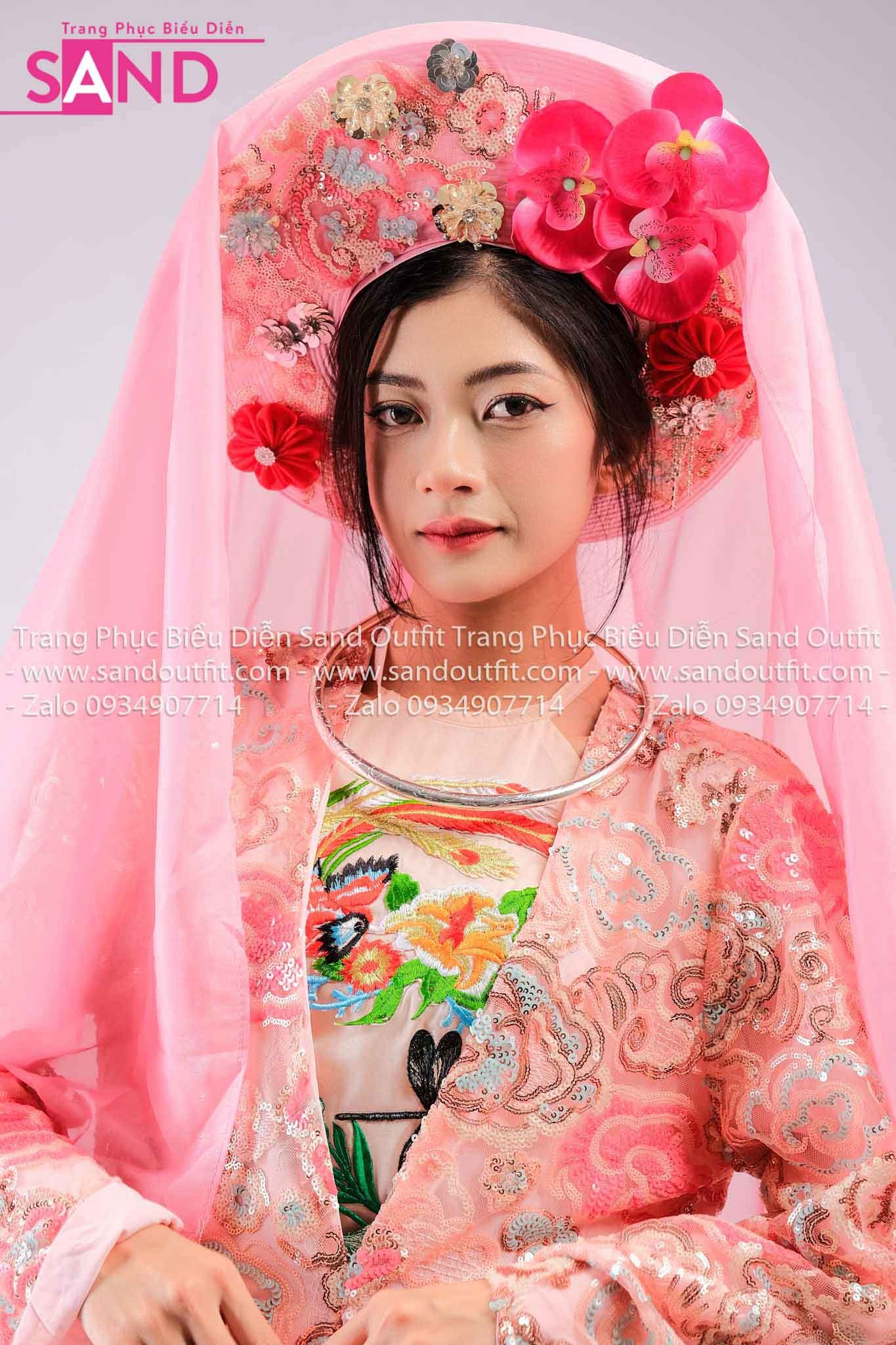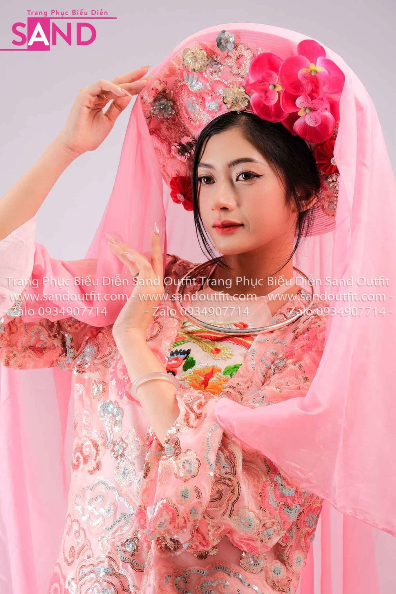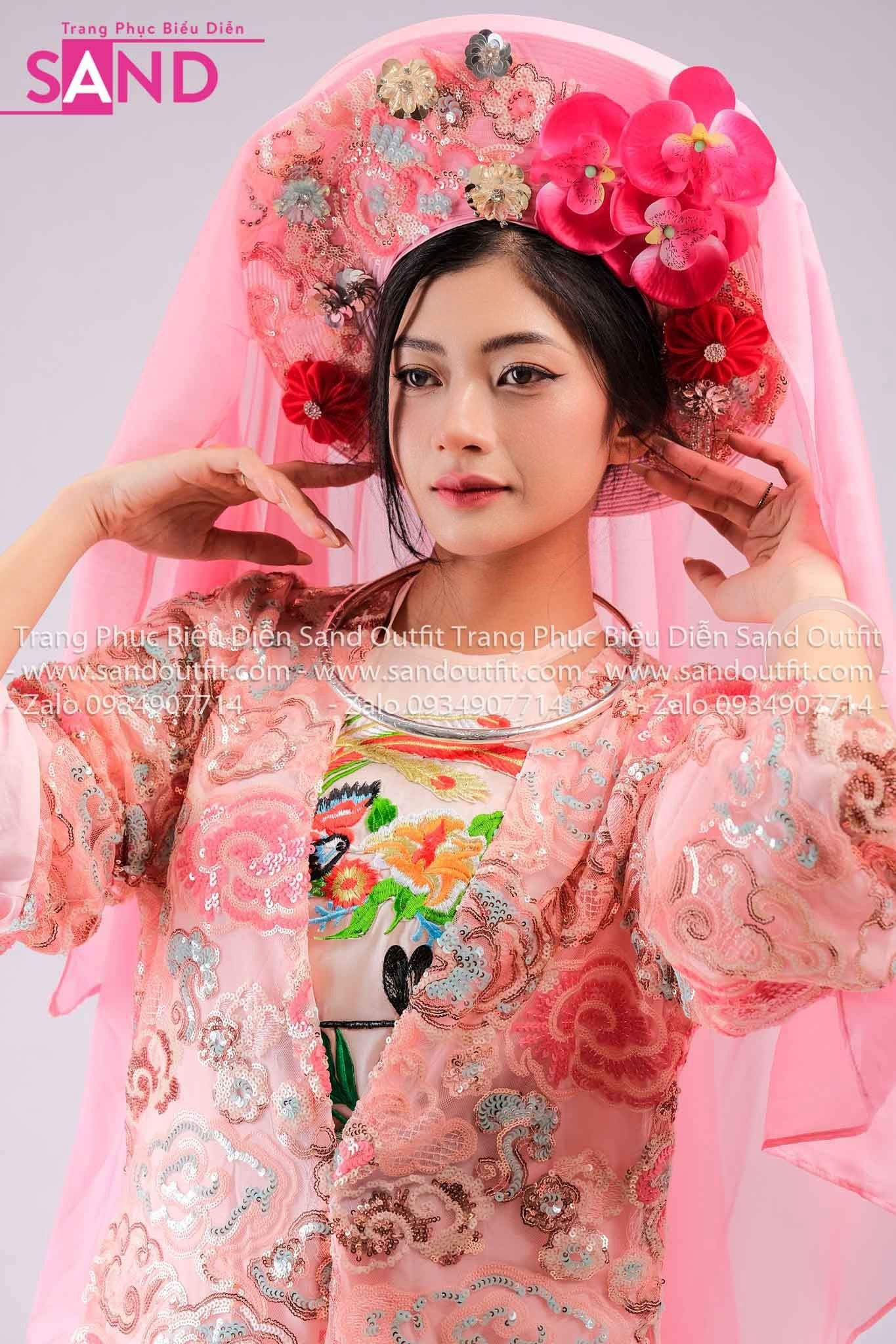 TTL0504 Áo Dài Yếm Cách Tân Thêu Văn Hóa Đạo Mẫu - Hồng (Bắc Bling)