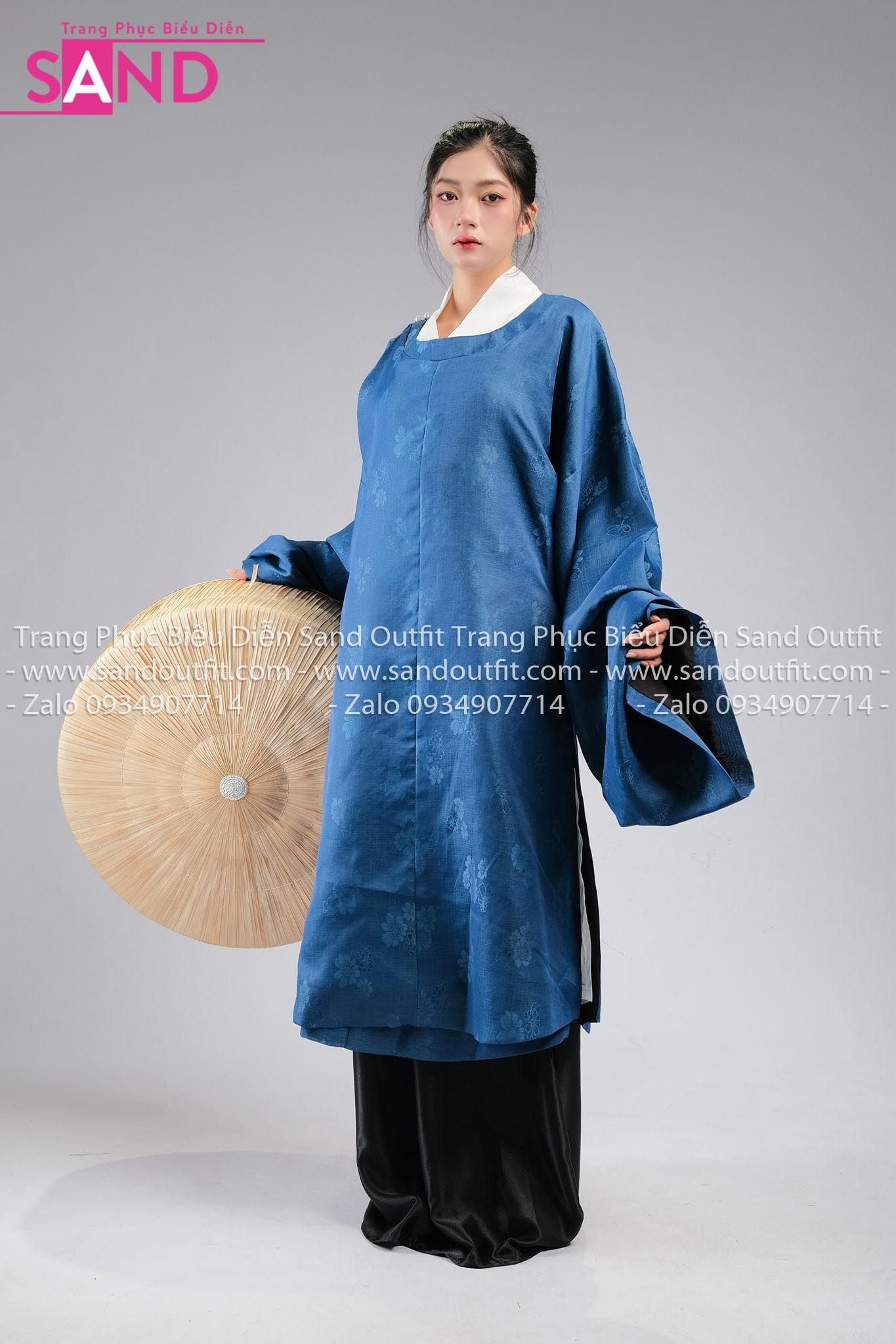 TCL1402 Sét Áo Viên Lĩnh Vải Sa Hàn Xanh Phối Áo Giao Lĩnh Trắng - Nữ