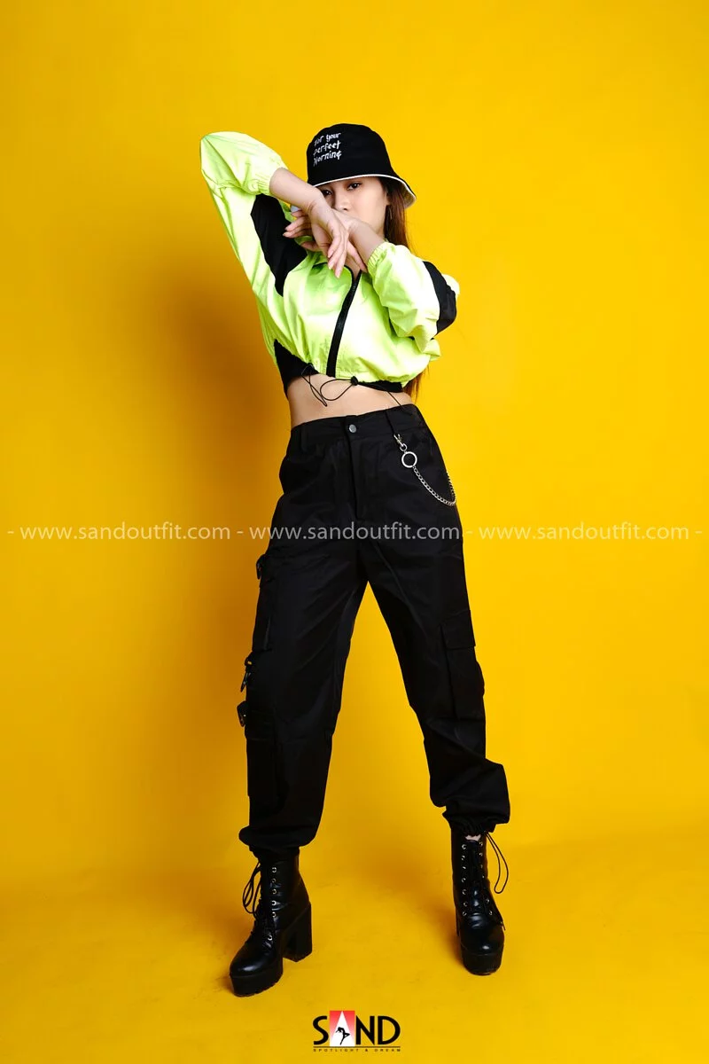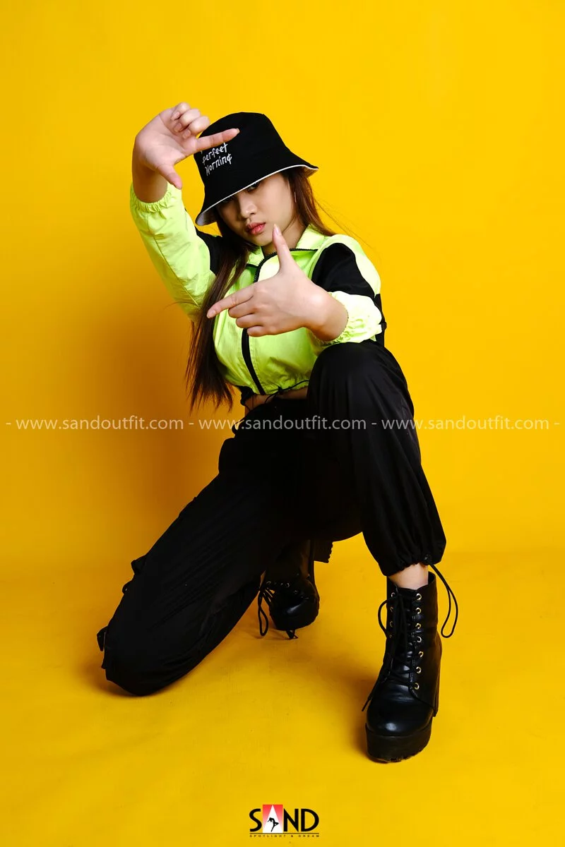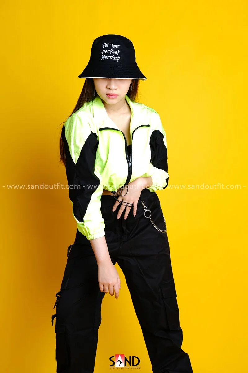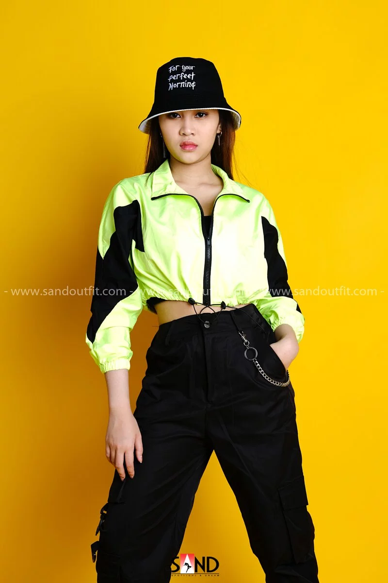 Áo Khoác Dù Croptop Không Nón Xanh Neon