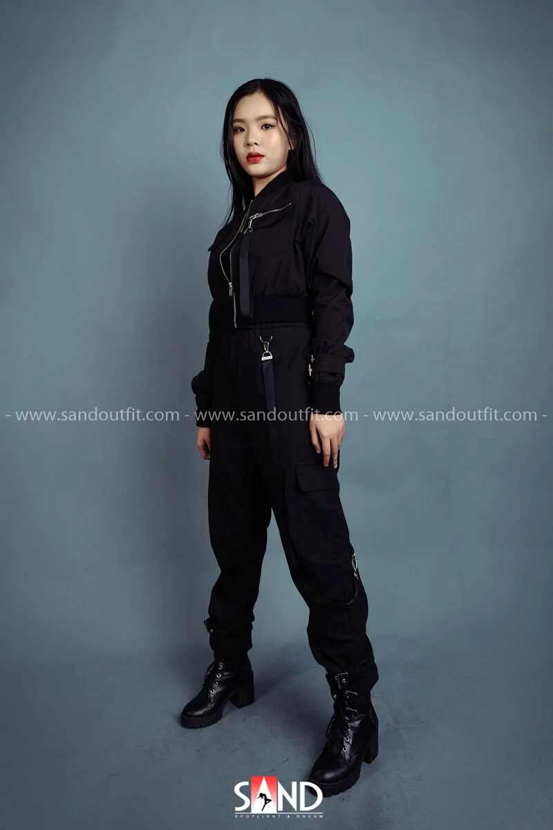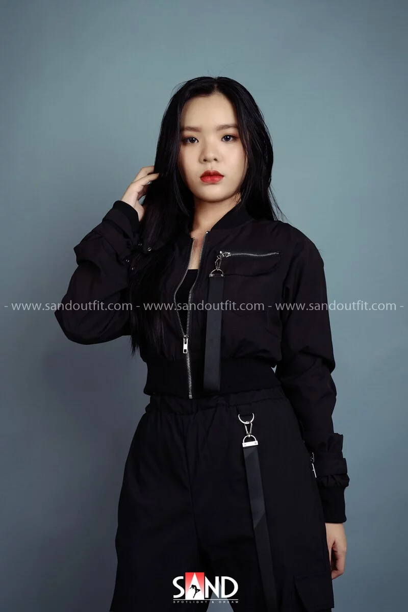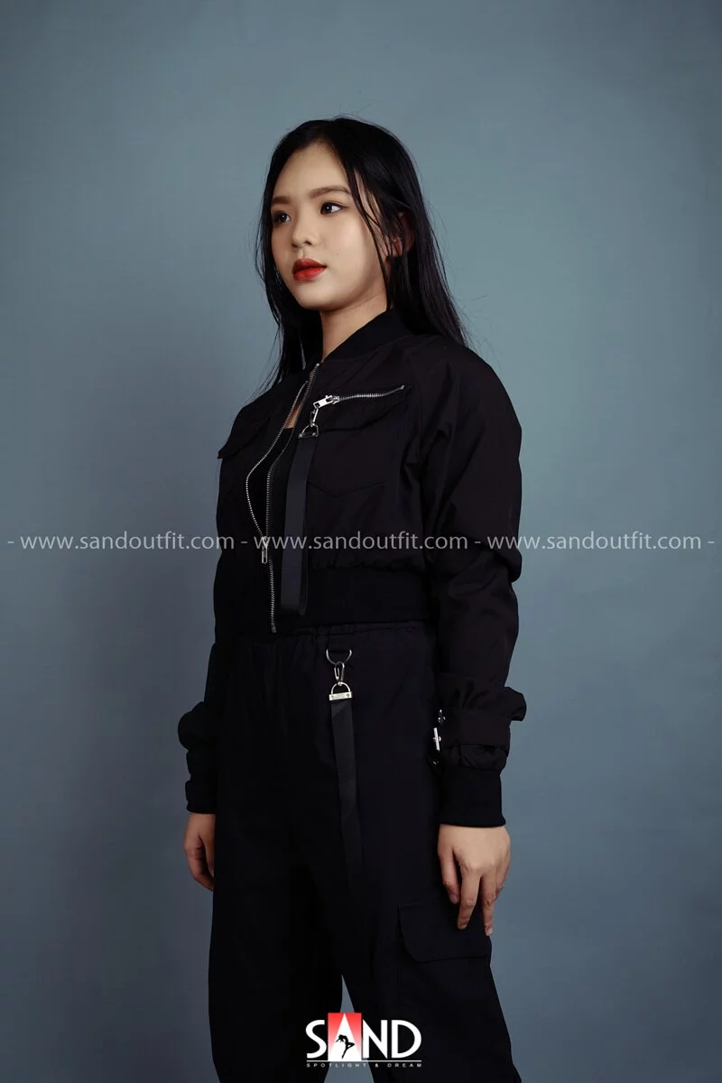 Áo Khoác Kaki Croptop Ống Tay Phối Khoen Đen