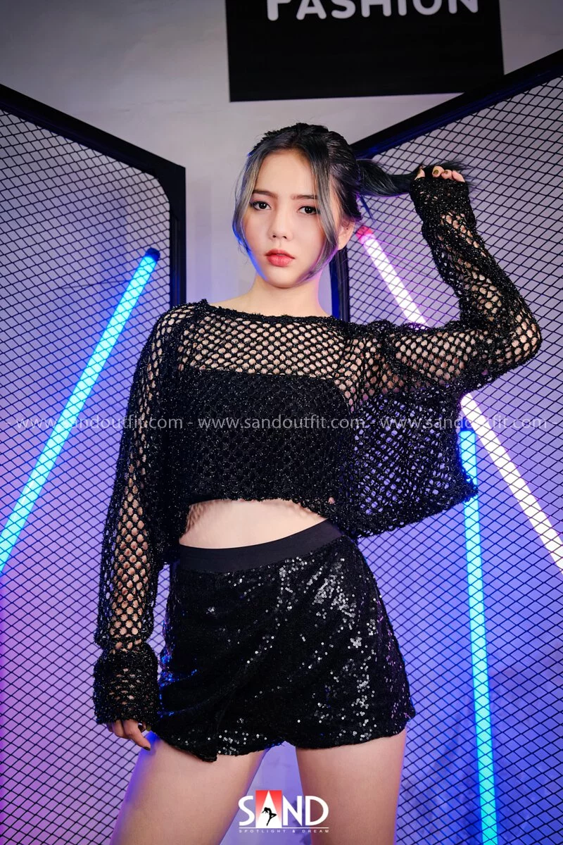 Áo Lưới Croptop Form Rộng - Đen Kim Tuyến