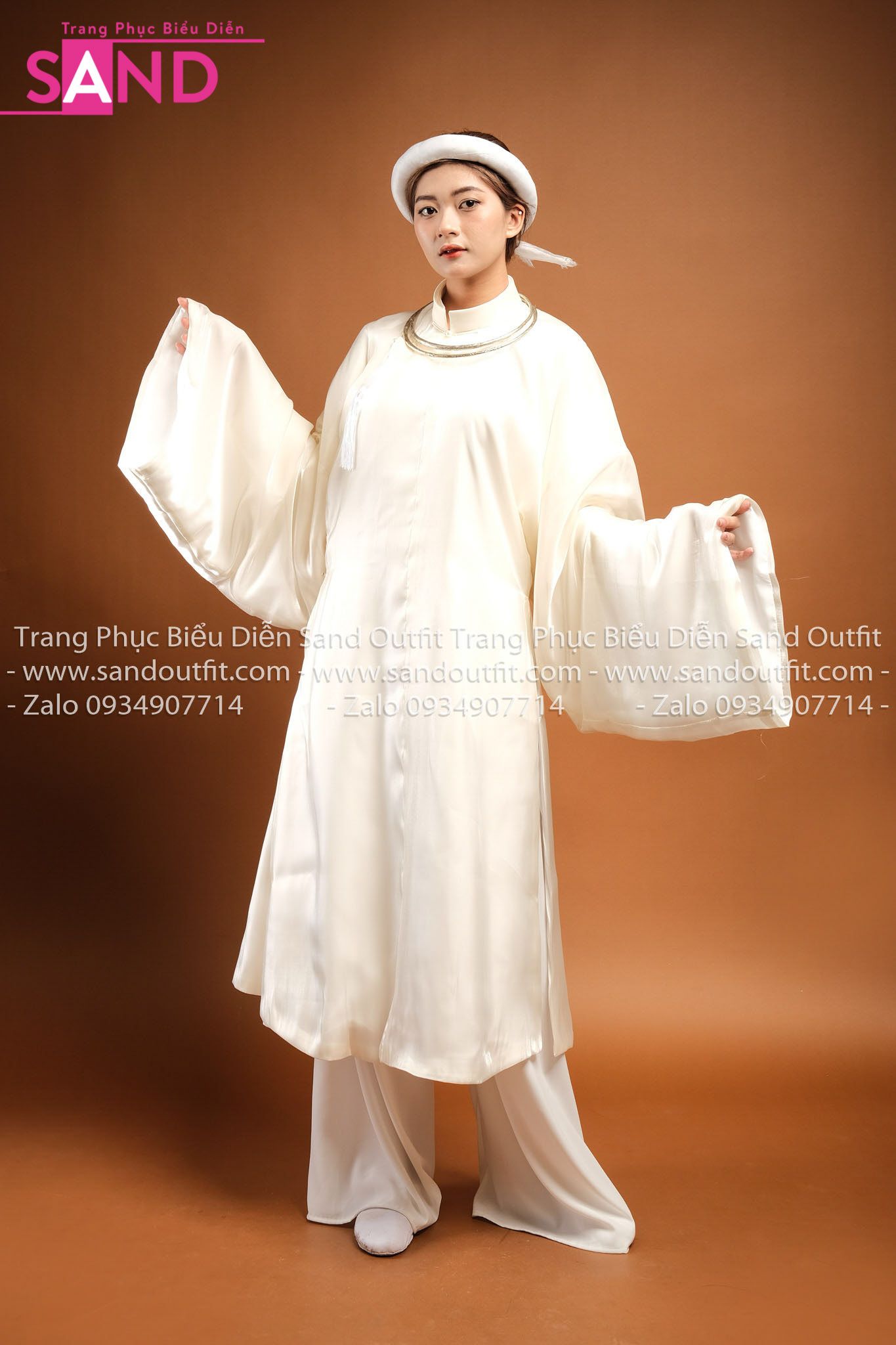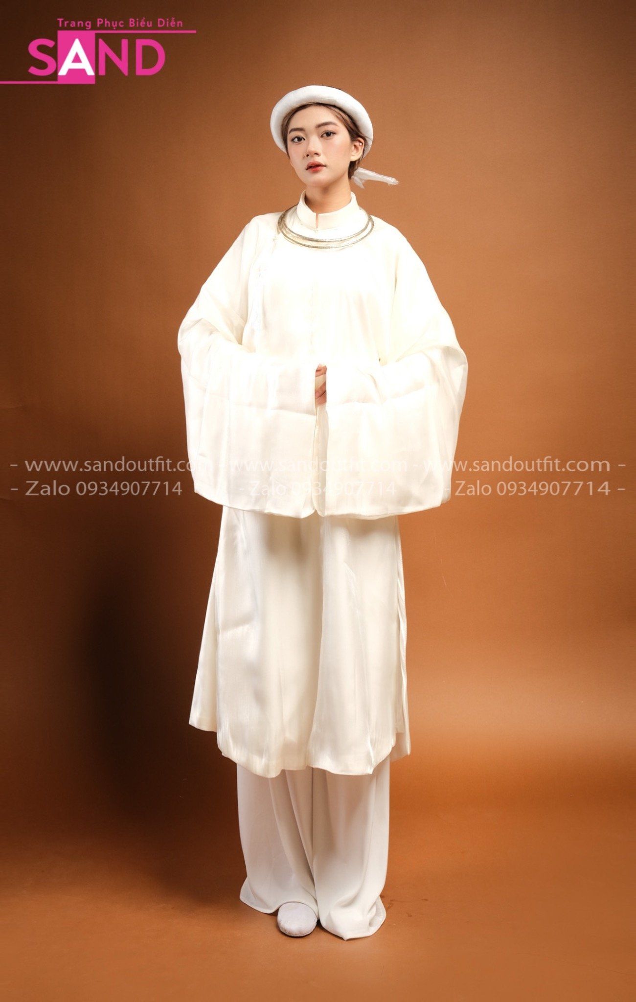TNC1102 Áo Ngũ Tấc Màu Trắng Kem 2 Lớp