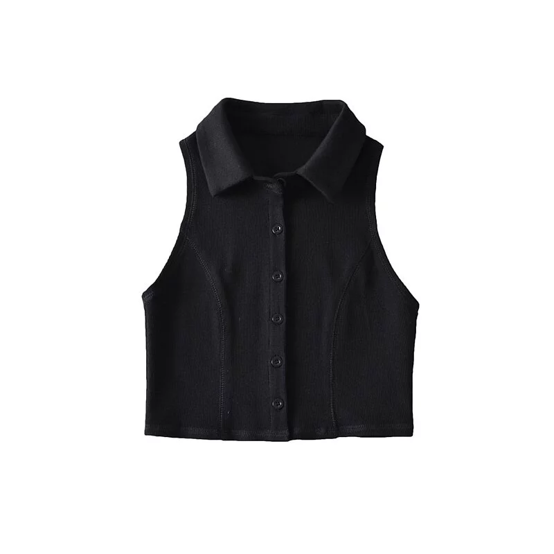 HAC0102 Áo Polo Croptop Không Tay Cổ Sơ Mi Đen
