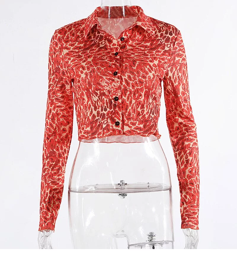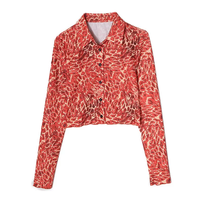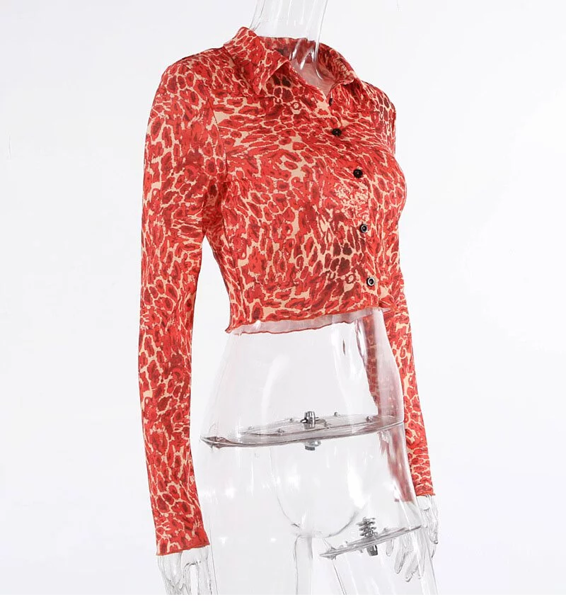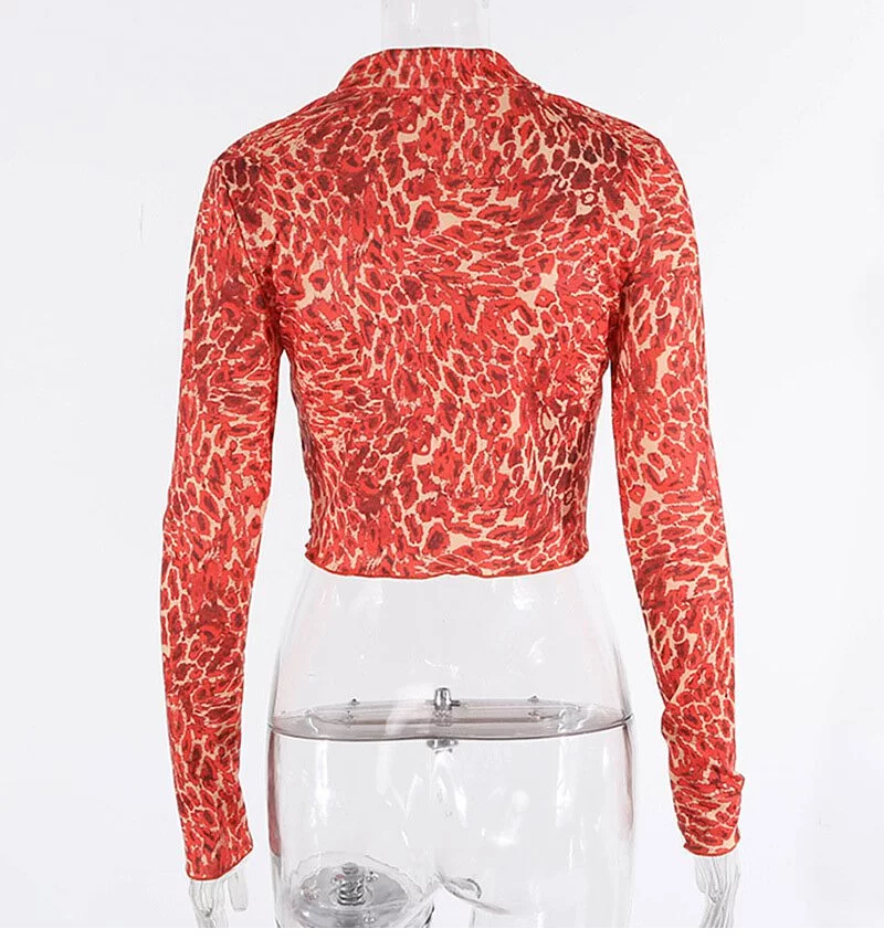 HAS0601 Áo Thun Dài Tay Cam Cổ Sơ Mi Họa Tiết Beo