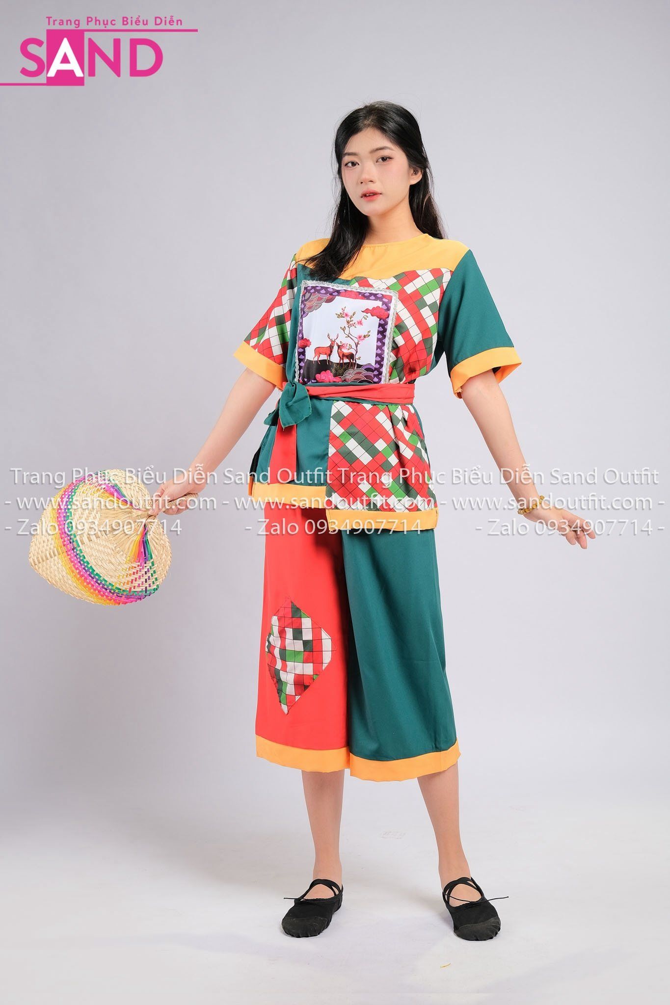 TBD0901 Bà Ba Đồng Dao Hoạ Tiết Caro Hưu Cam Xanh - Nữ