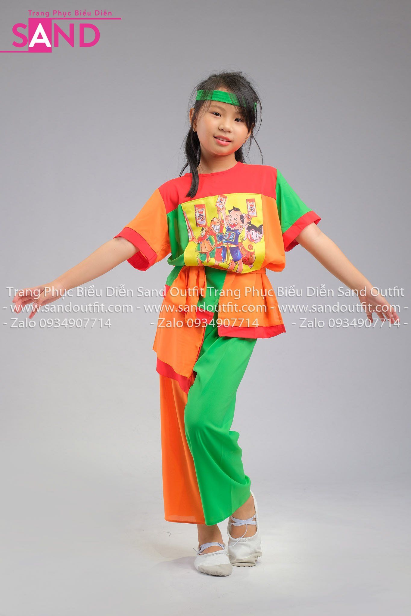 KBD0602 Bà Ba Đồng Dao Trạng Tí Trẻ Em - Xanh Cam (Size Cấp 1 & Cấp 2)