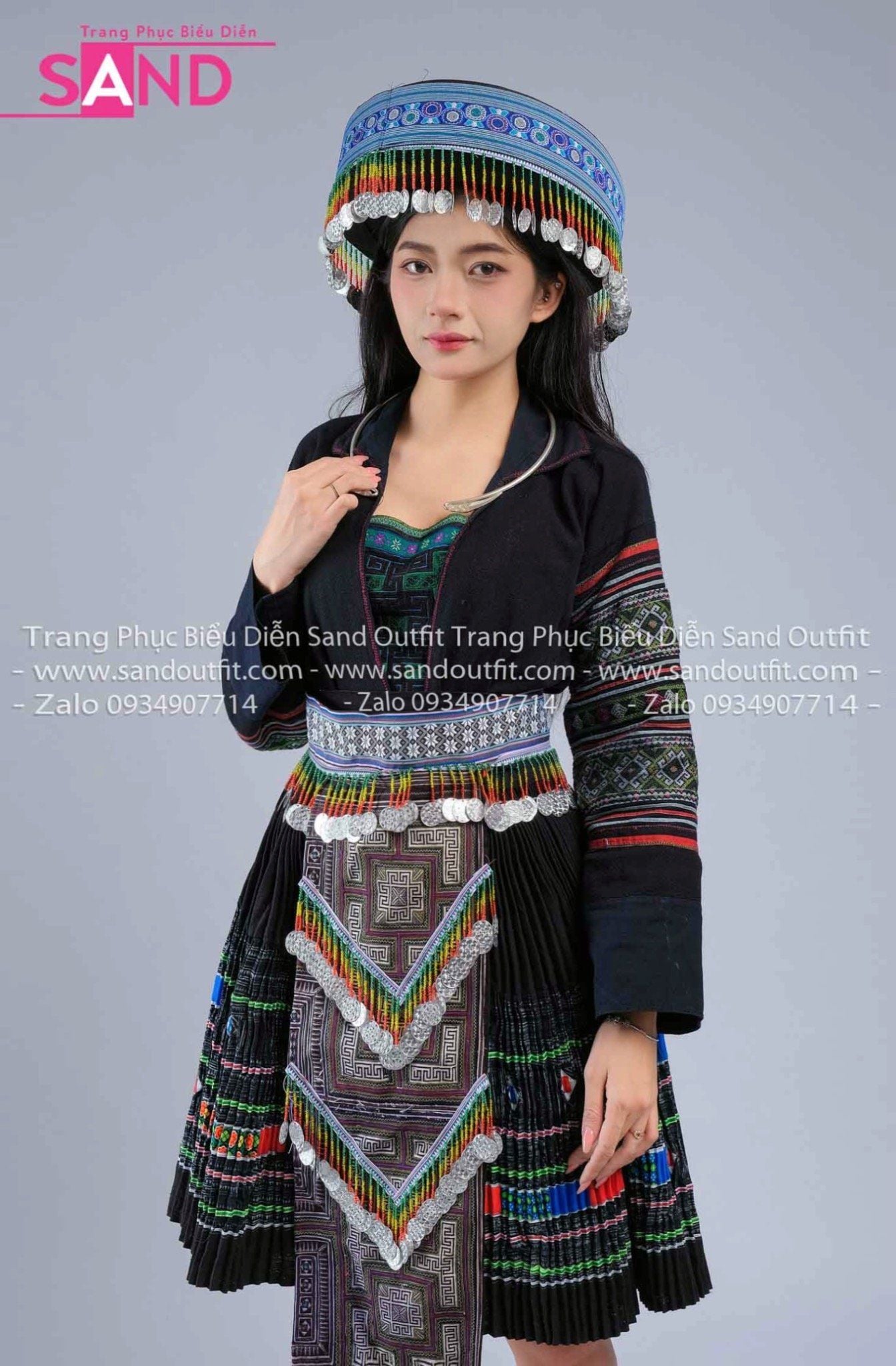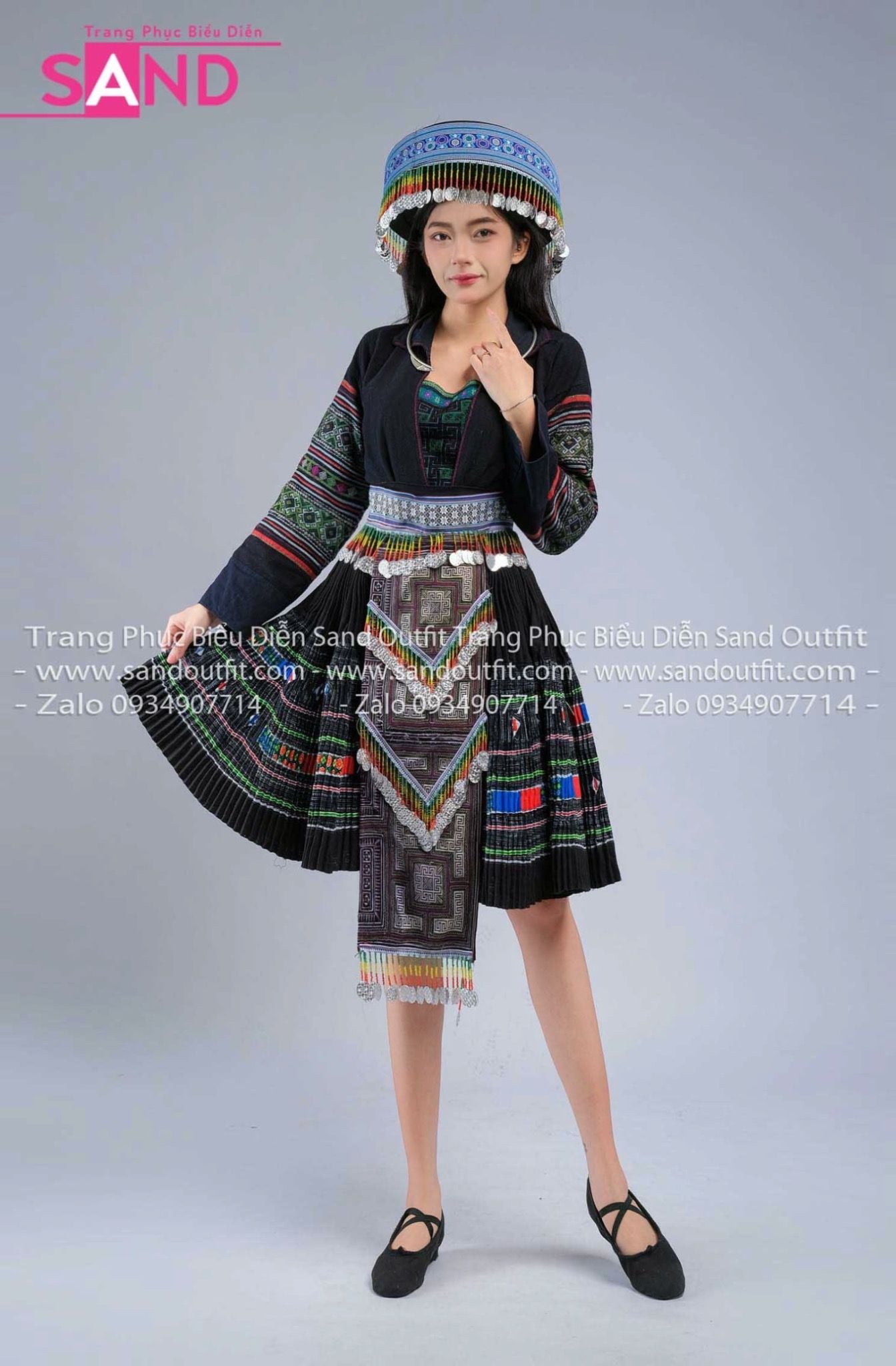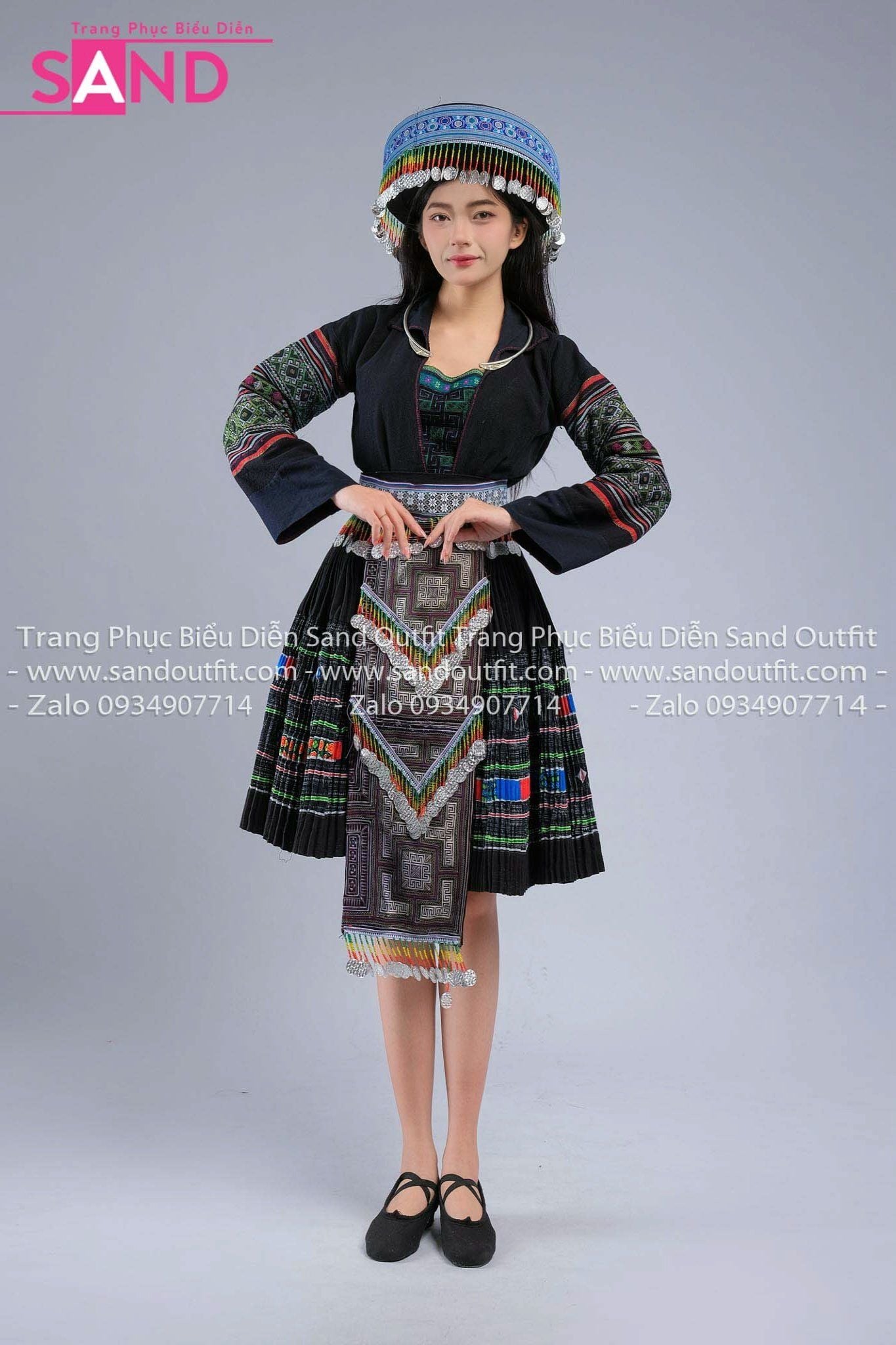 NHM0122 Dân Tộc H’Mong Thêu Tay Nguyên Bản - Đen (kèm mấn)