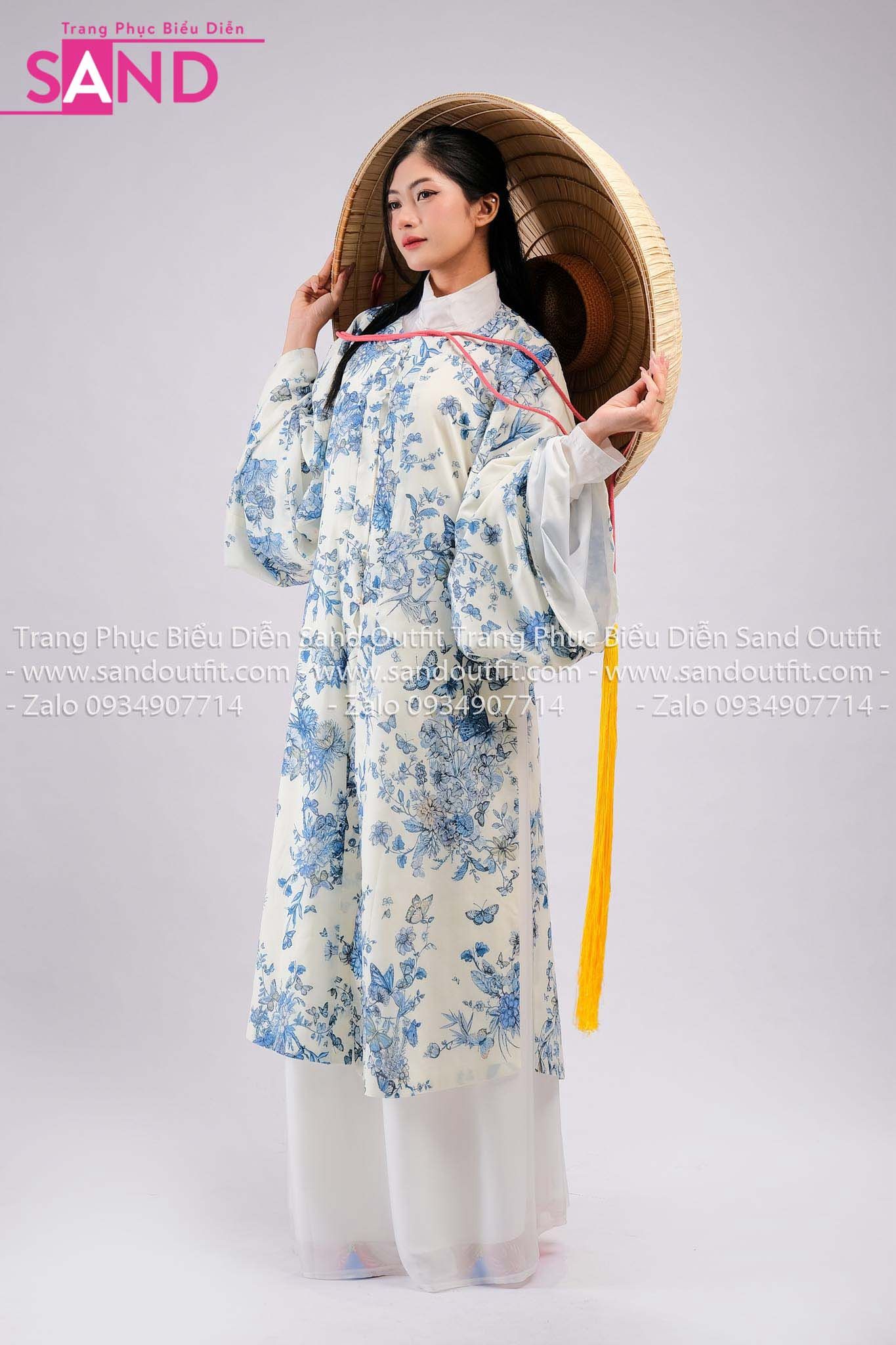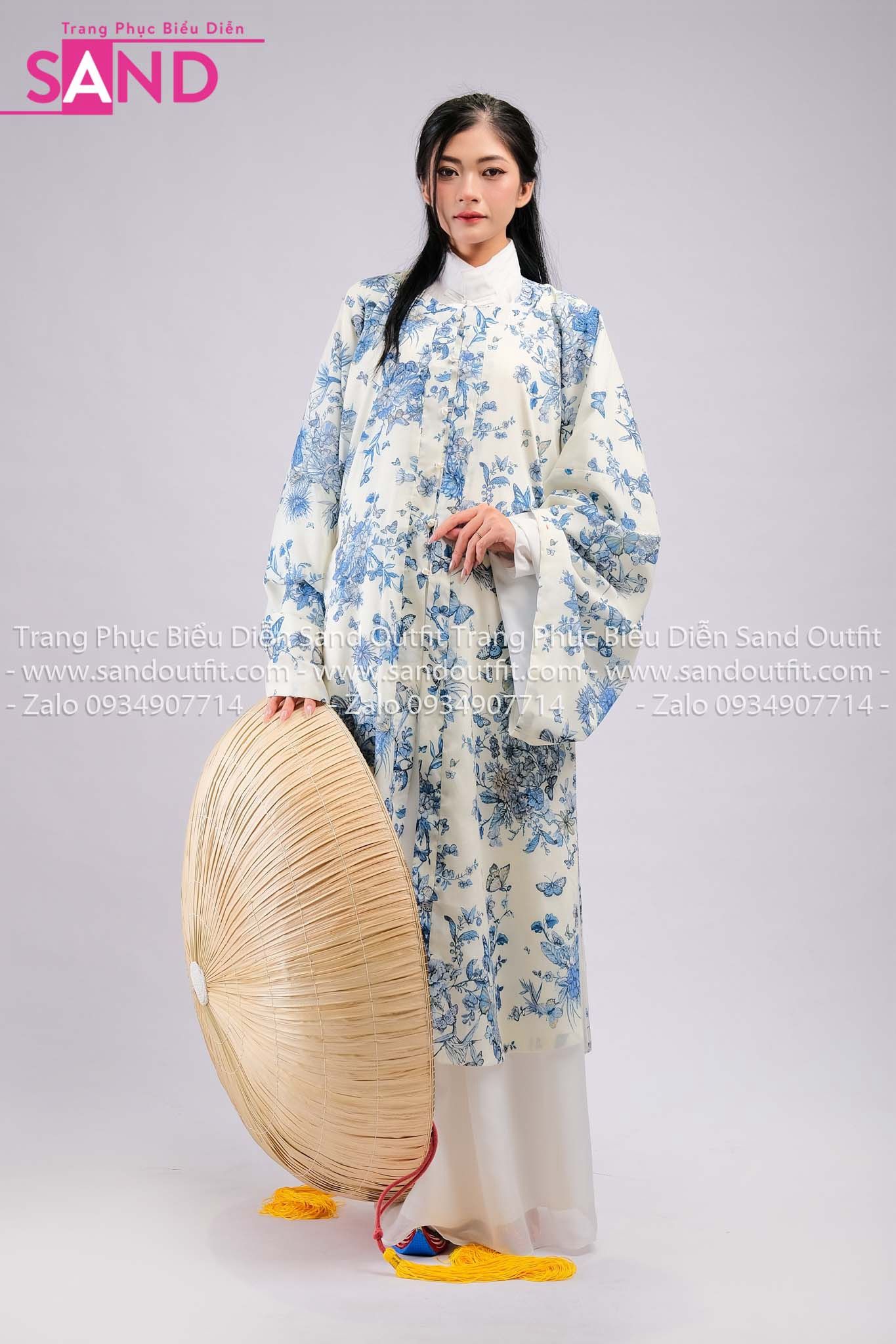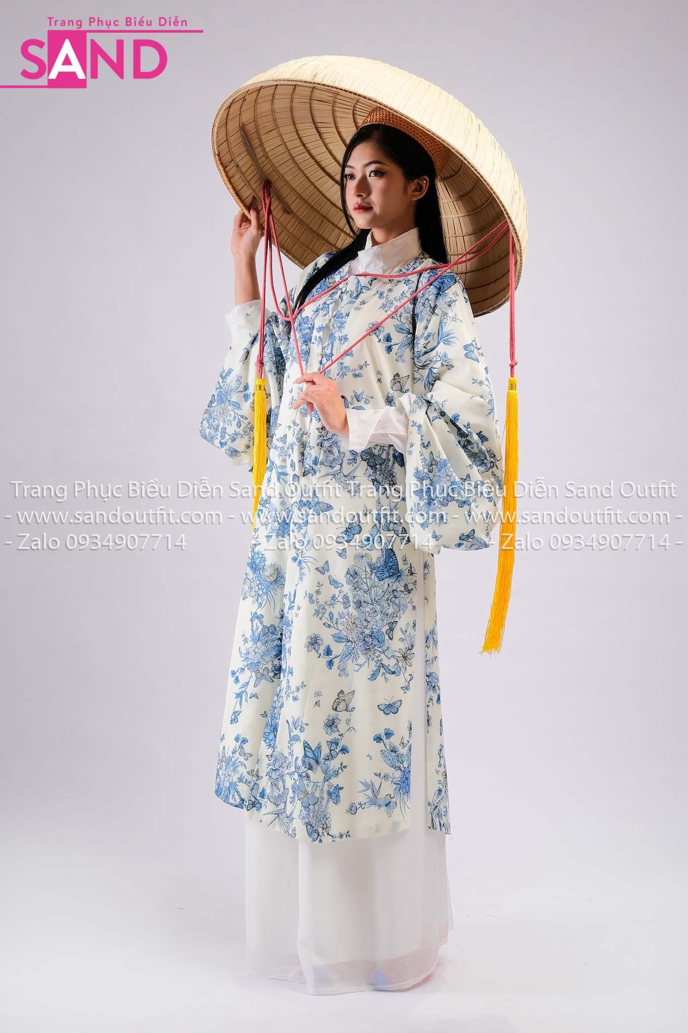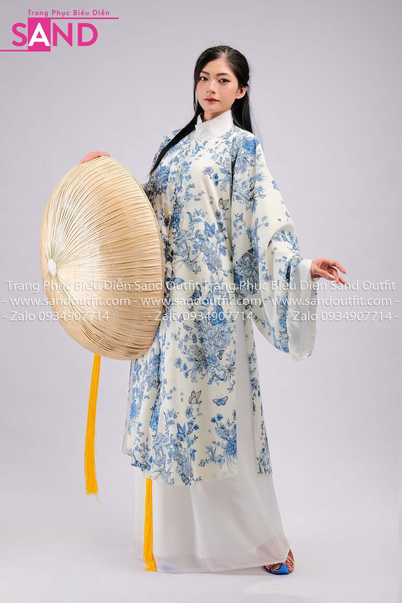 TCL0002 Bộ Áo Tứ Điên Đũi Hồ Điệp Trắng Hoạ Tiết Xanh - Nữ