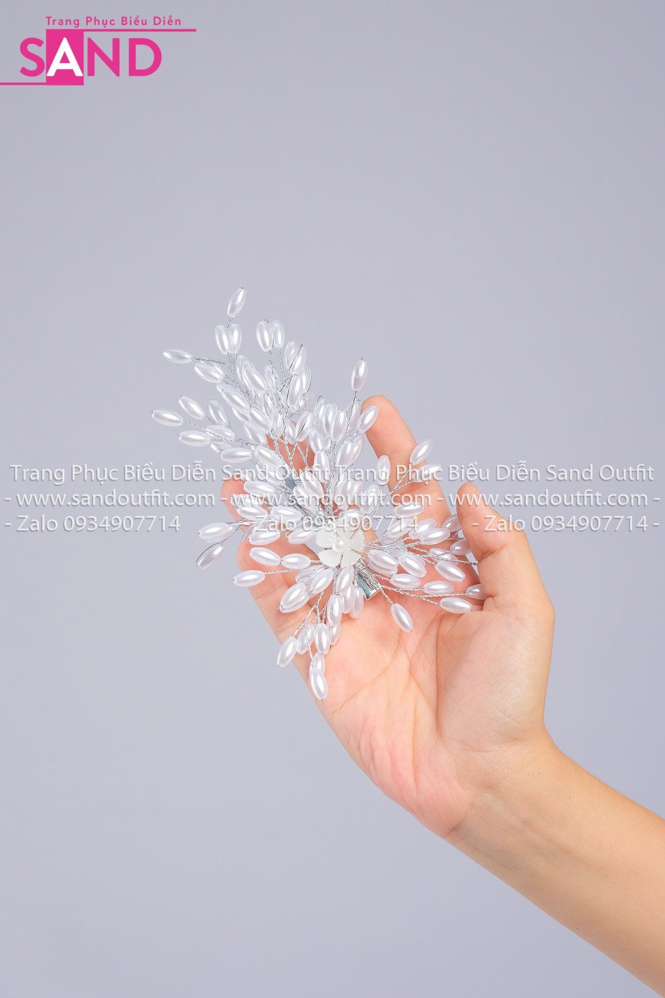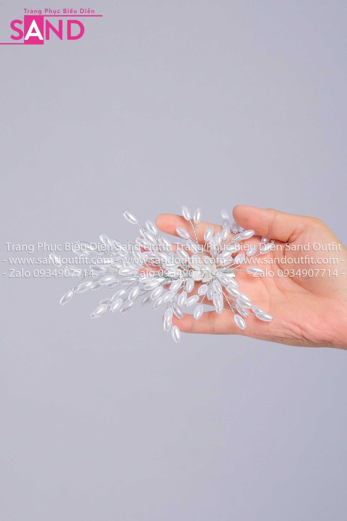 DPT0019 Cài Tóc Đá Trắng Tua Rua