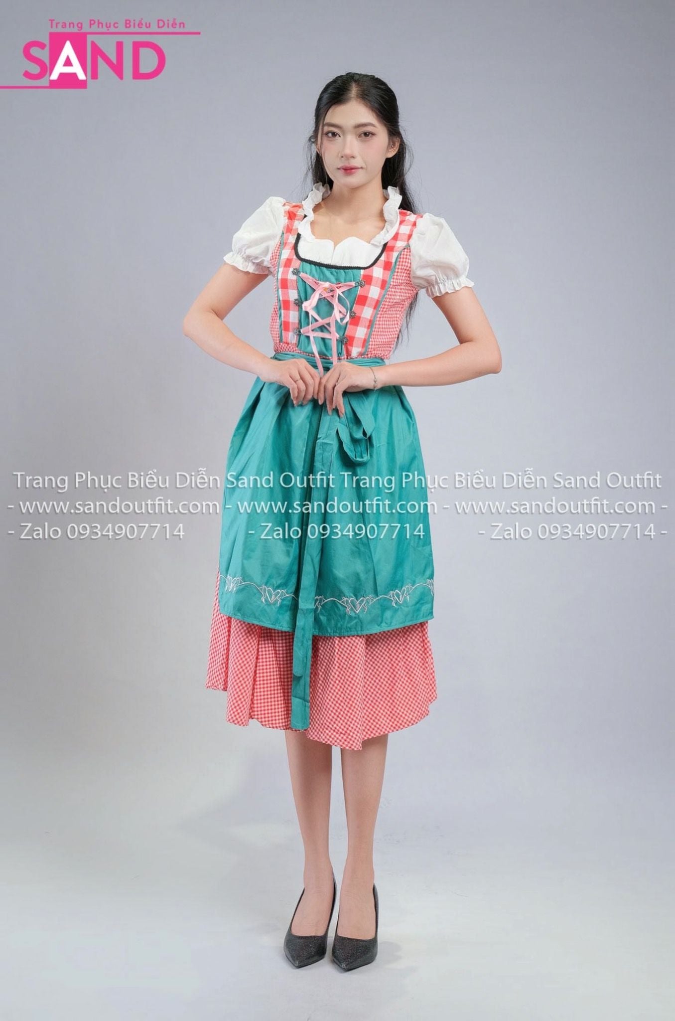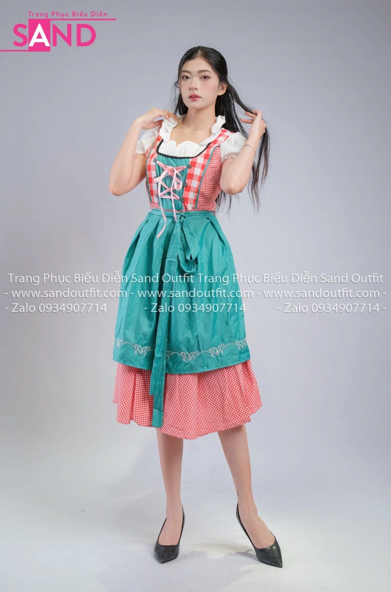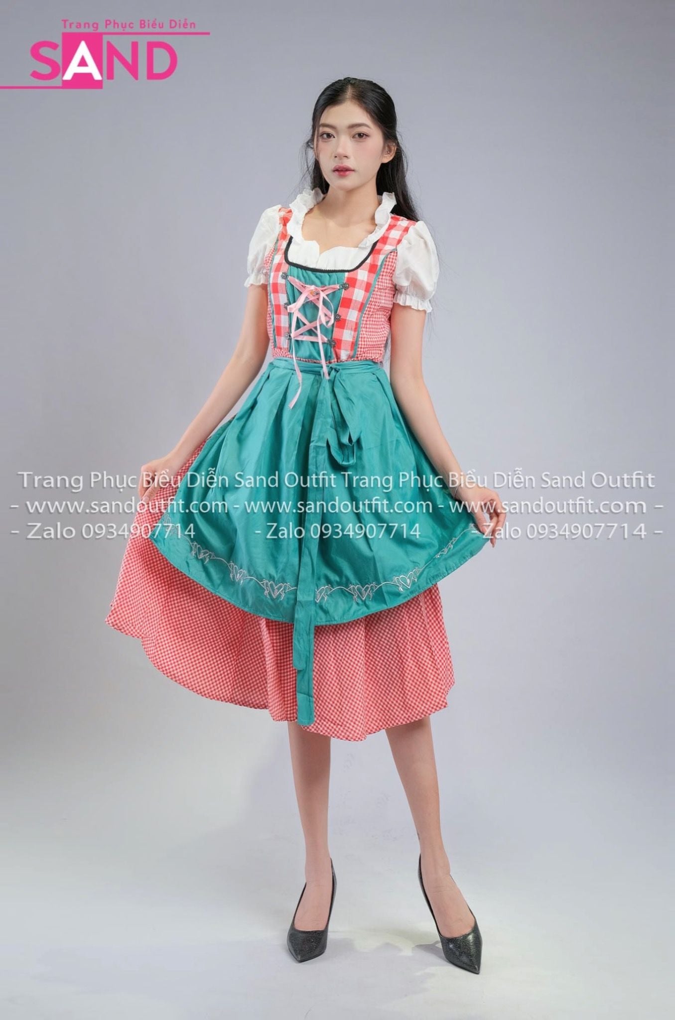 TND0904 Đầm Lễ Hội Bia Đức Nữ Caro Xanh Lá Đậm