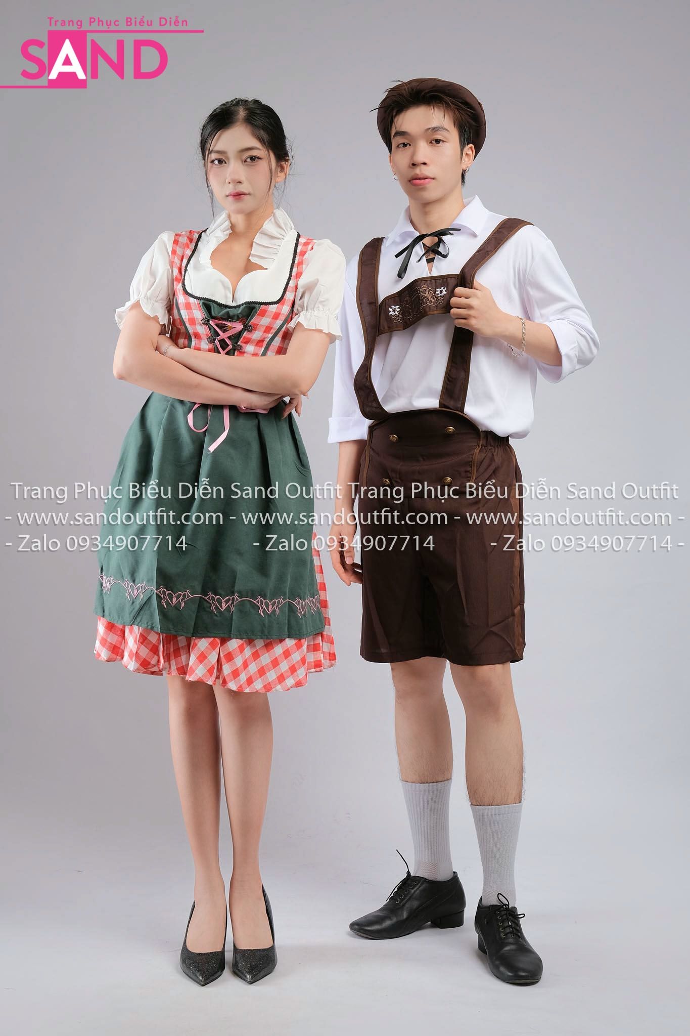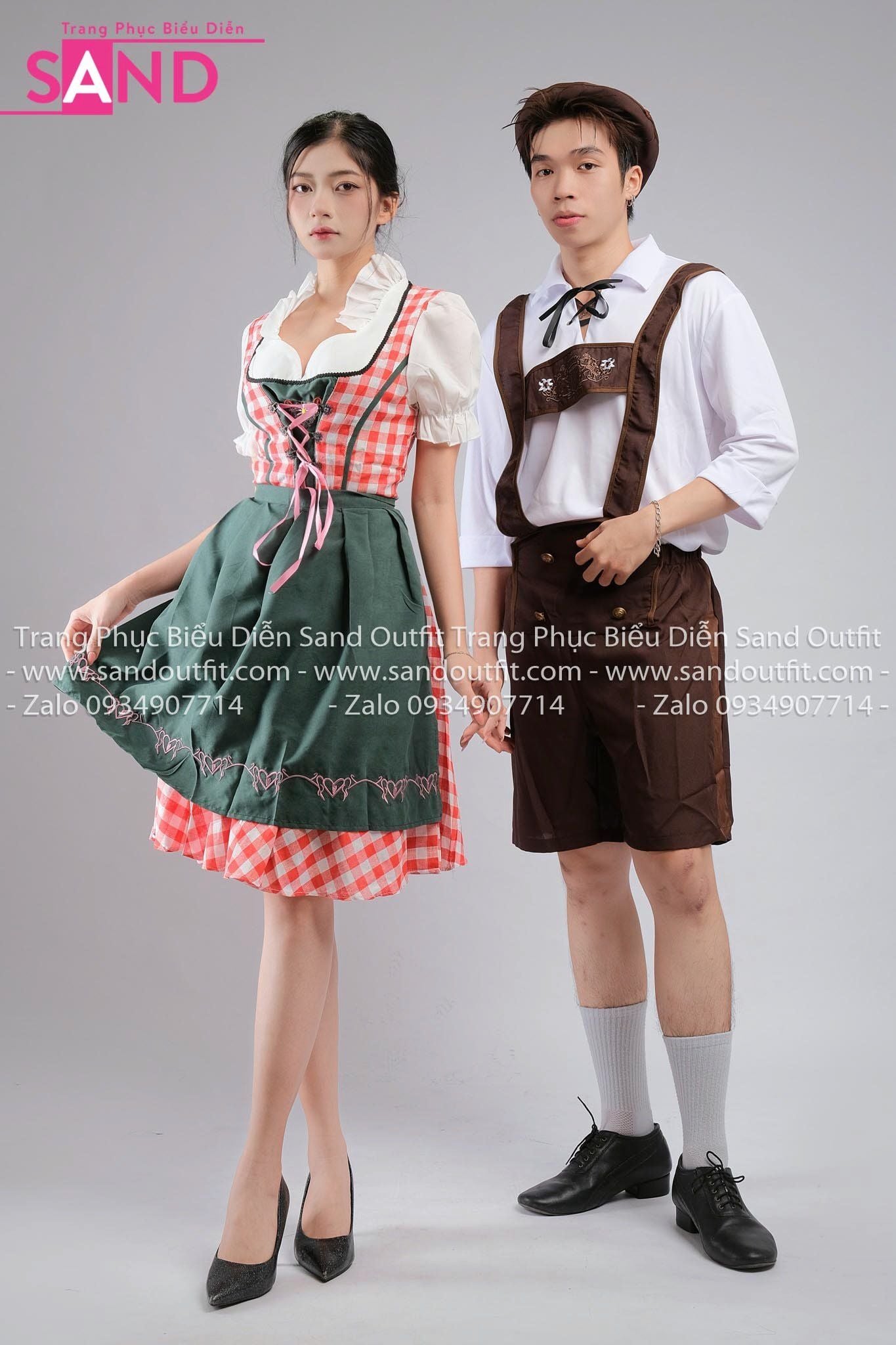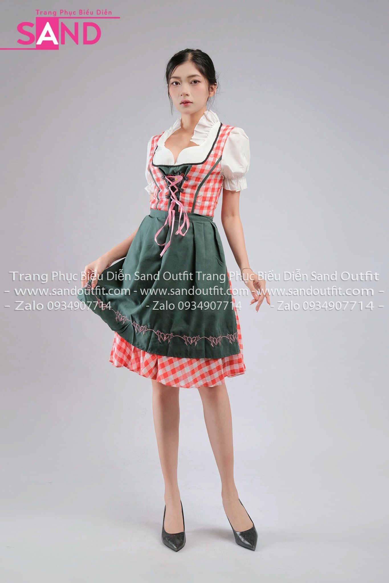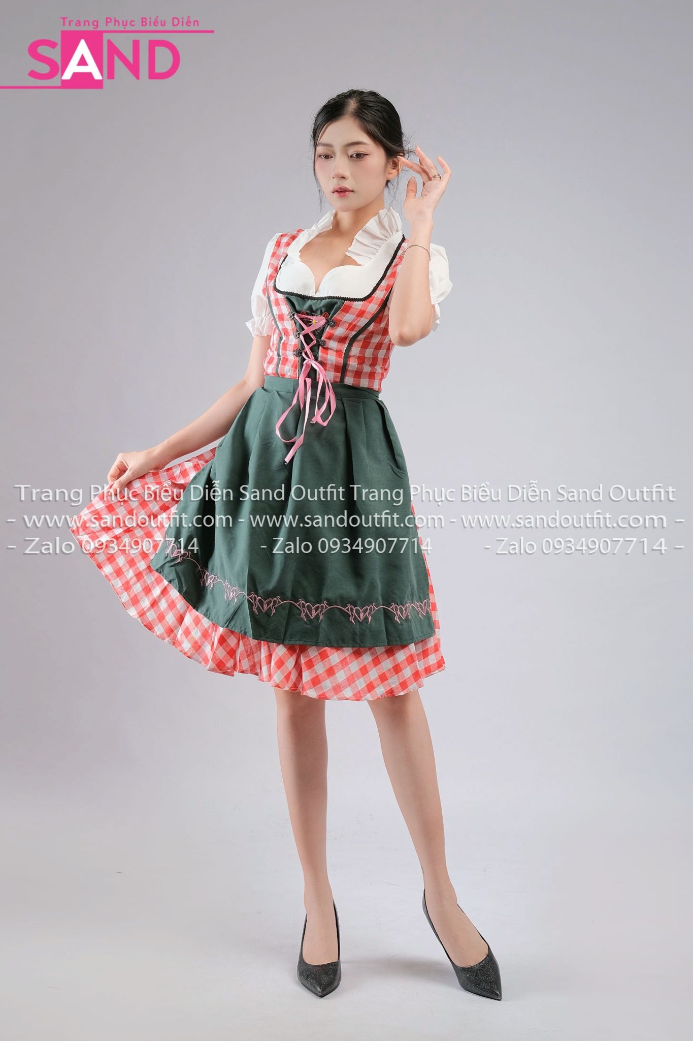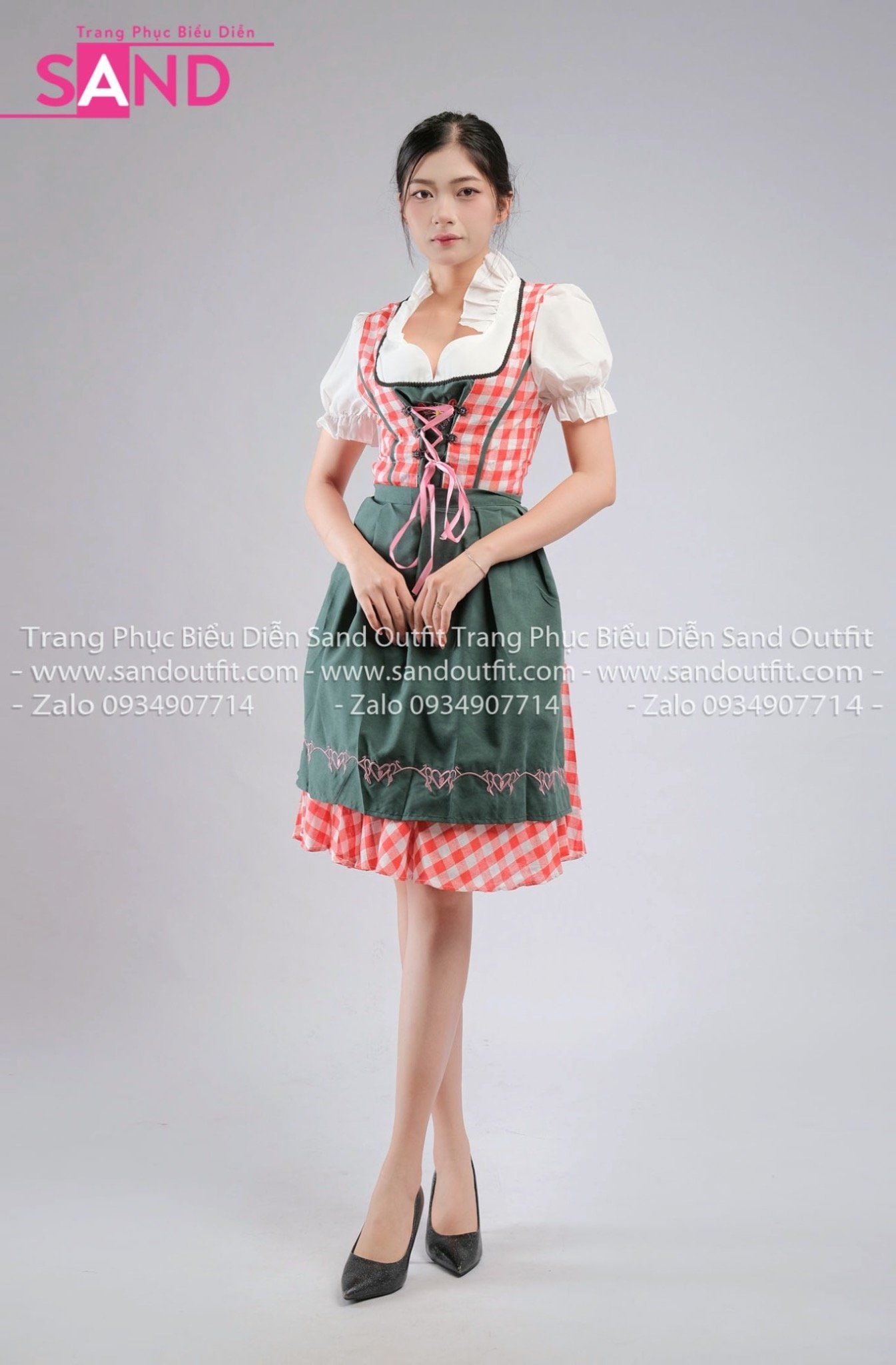 TND0406 Đầm Lễ Hội Bia Đức Nữ Caro Đỏ - Xanh Lá Hoạ Tiết