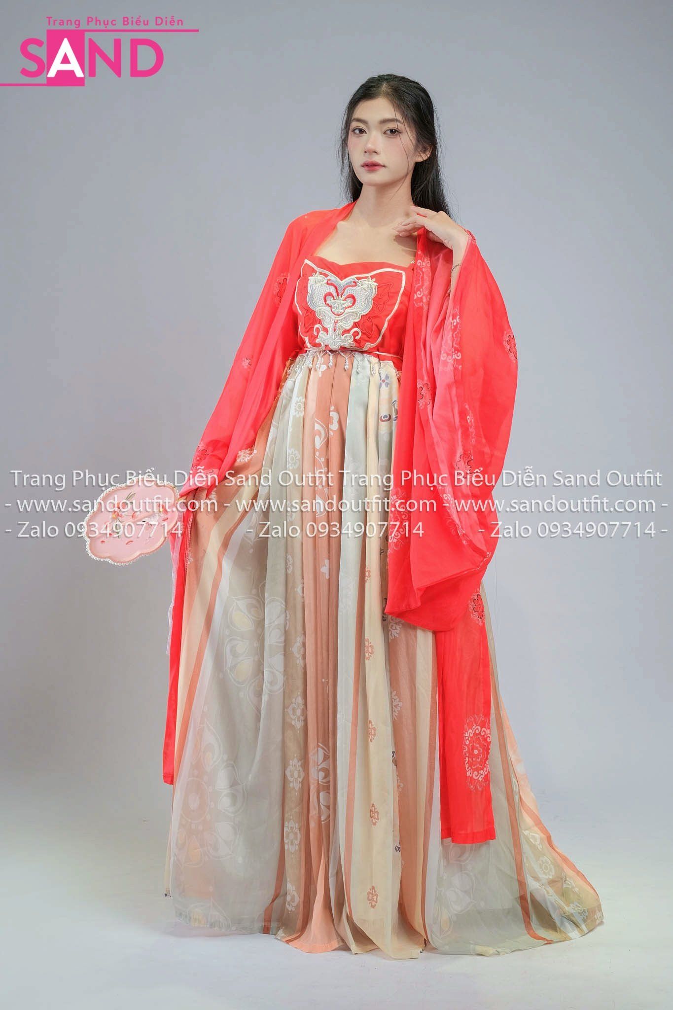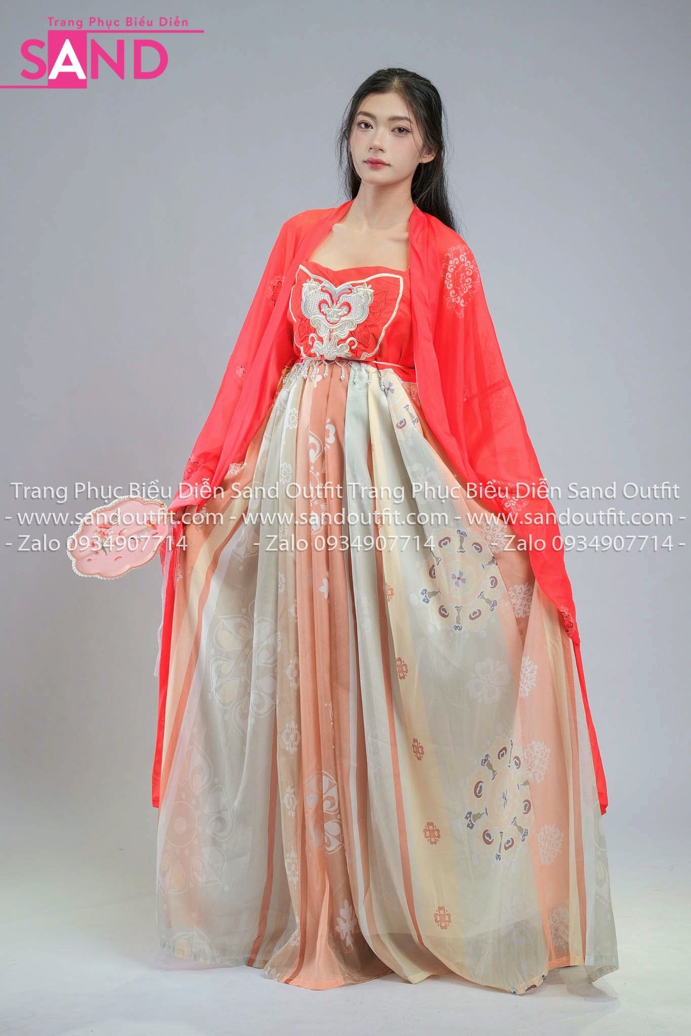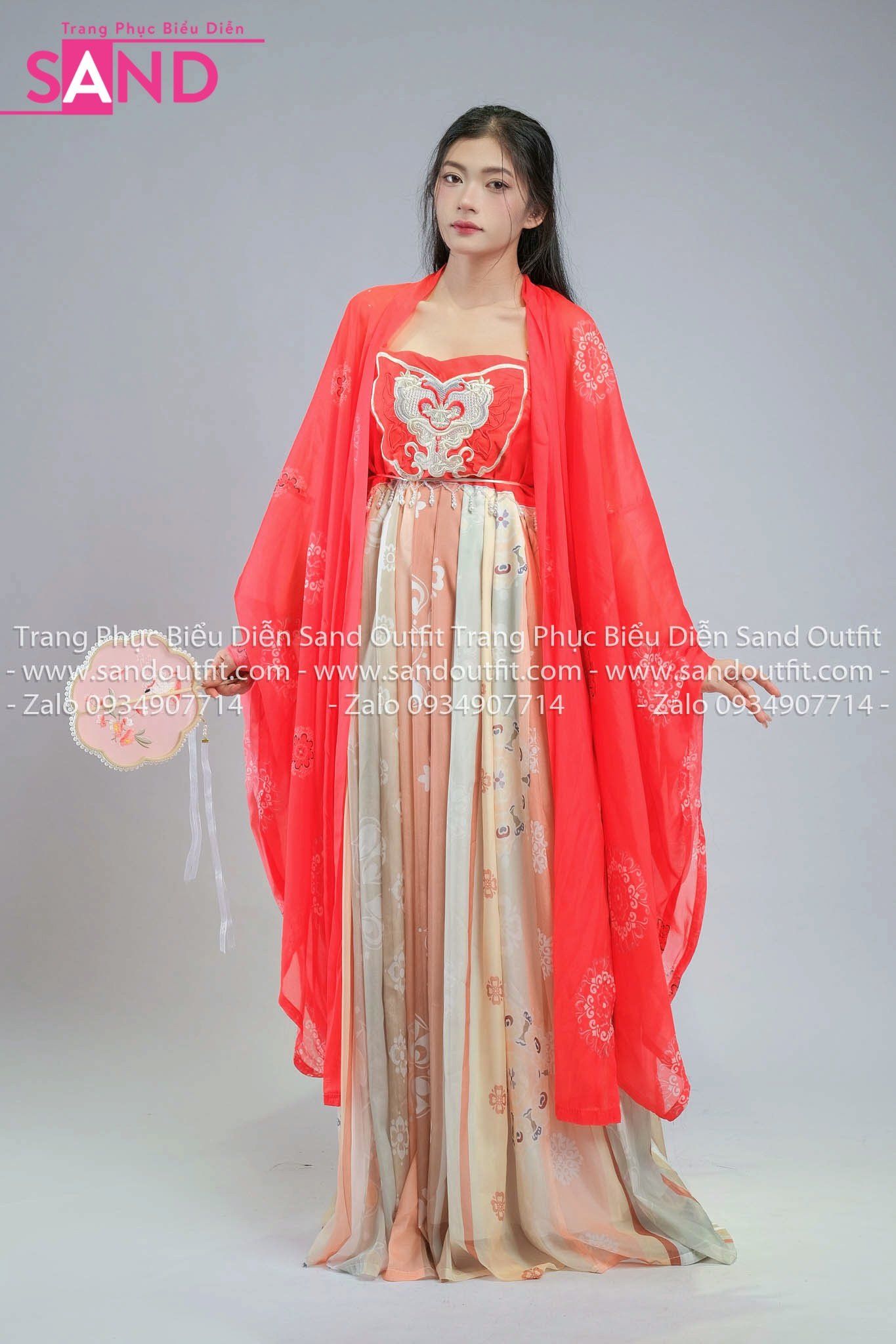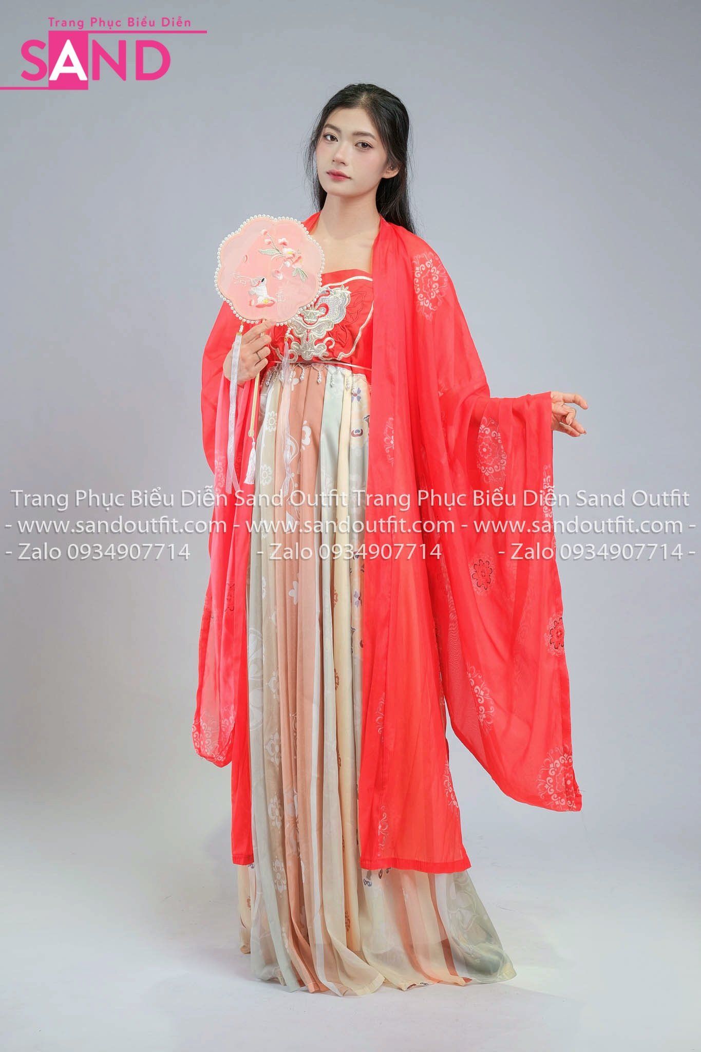 TNQ0414 Hán Phục Thiền Bội Hoạ Tiết Phối Cam - Màu Đỏ