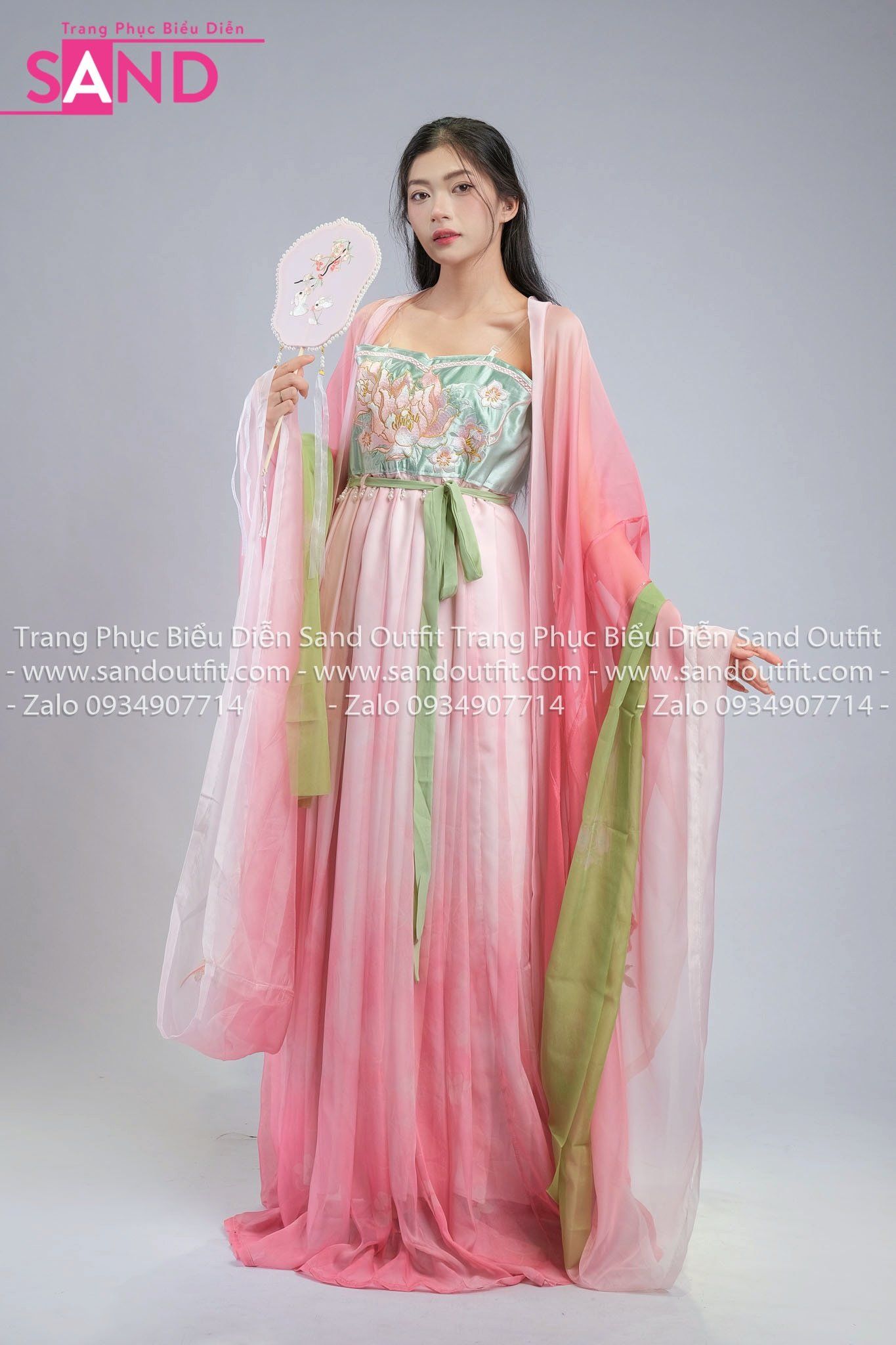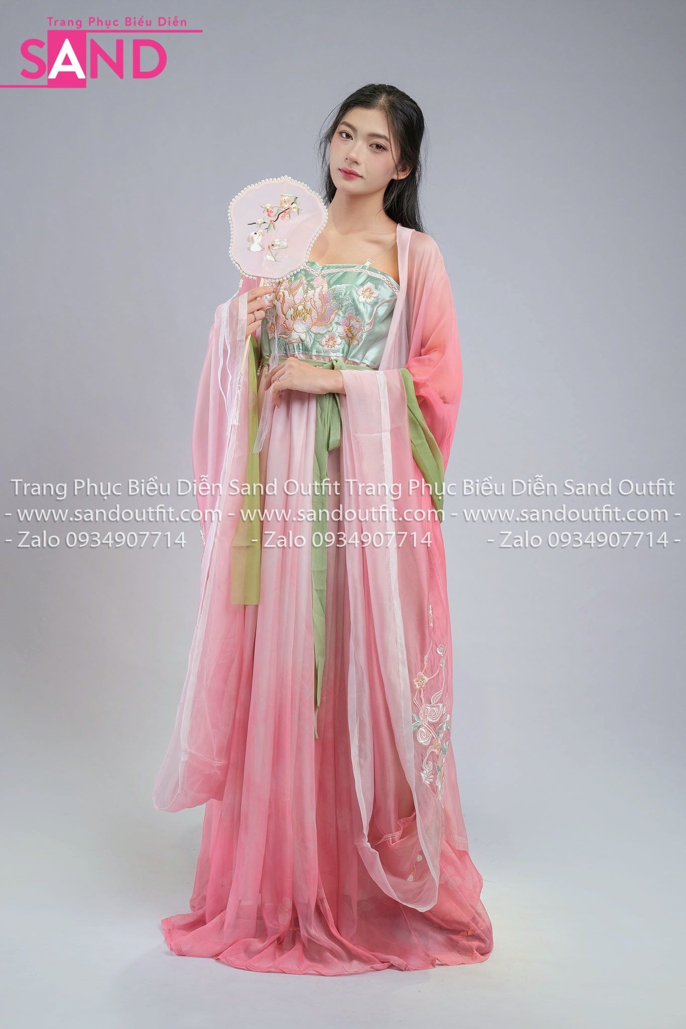 TNQ1501 Hán Phục Hoạ Tiết Hoa Nhí - Hồng