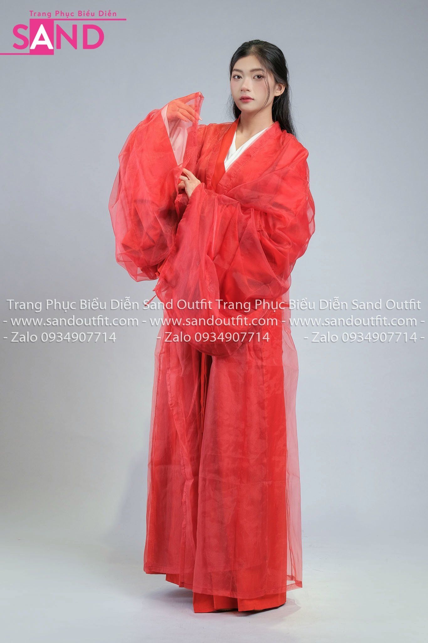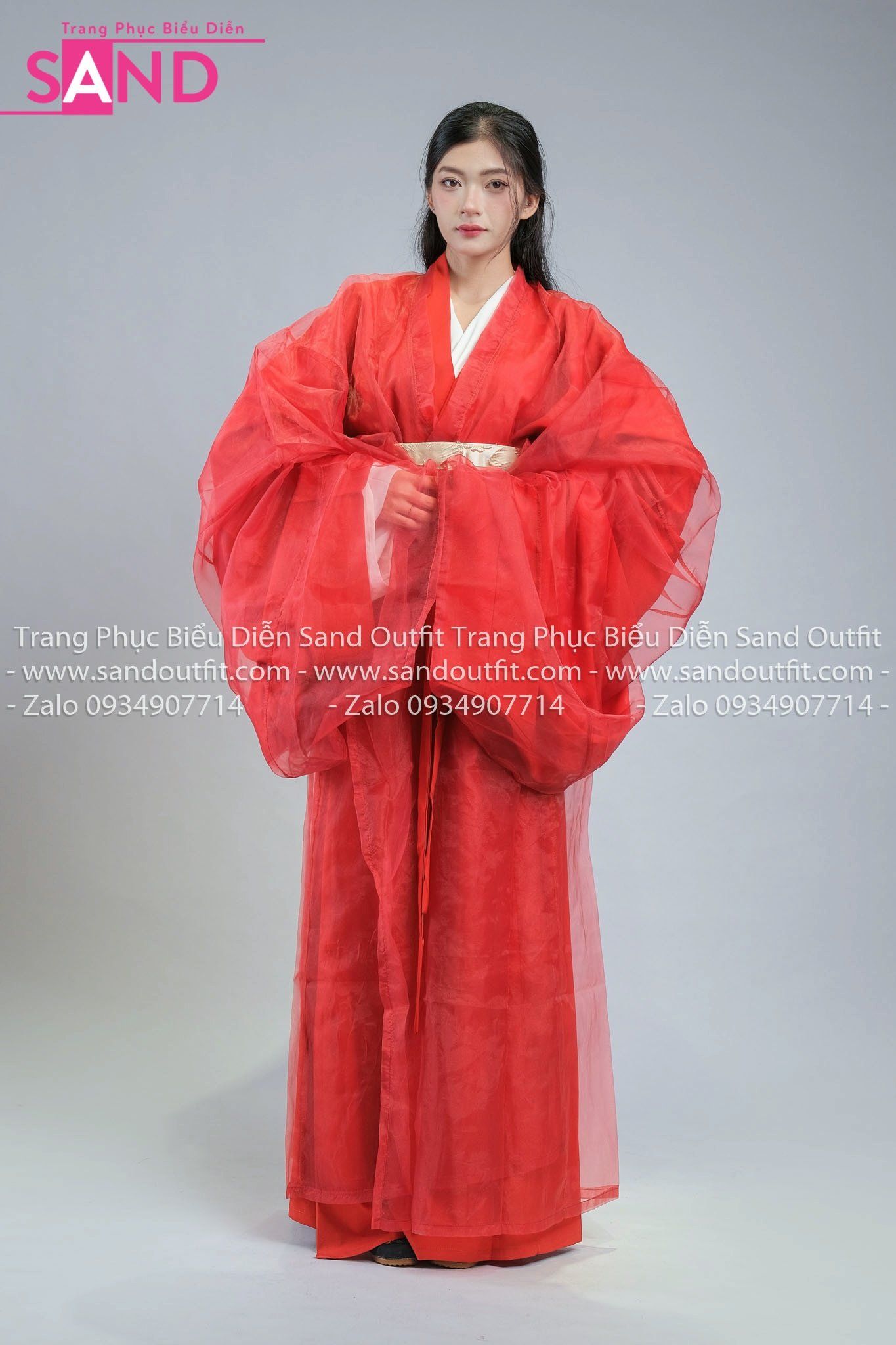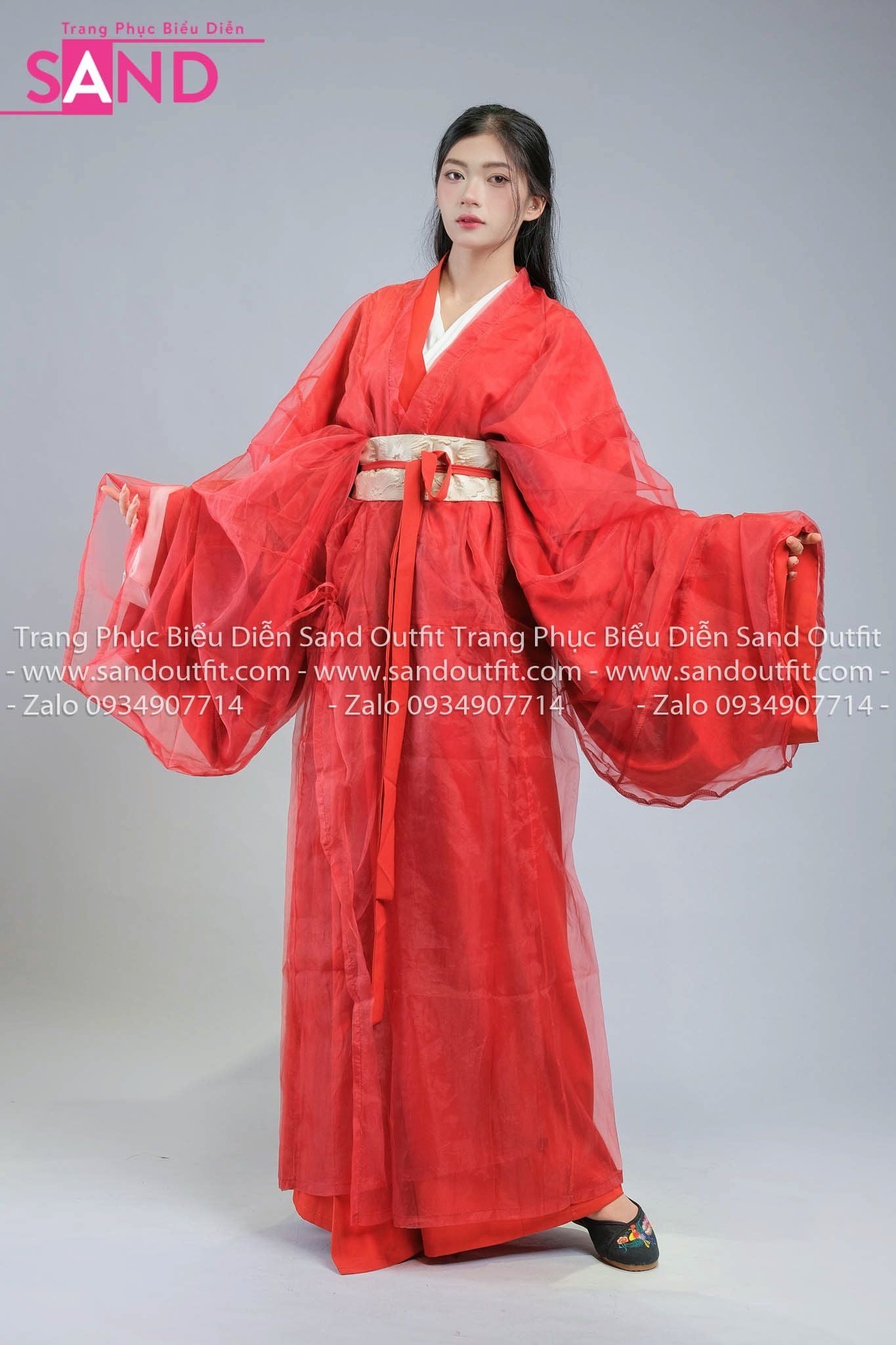 TNQ0411 Hán Phục Hoạ Tiết Trơn Đai Eo - Màu Đỏ