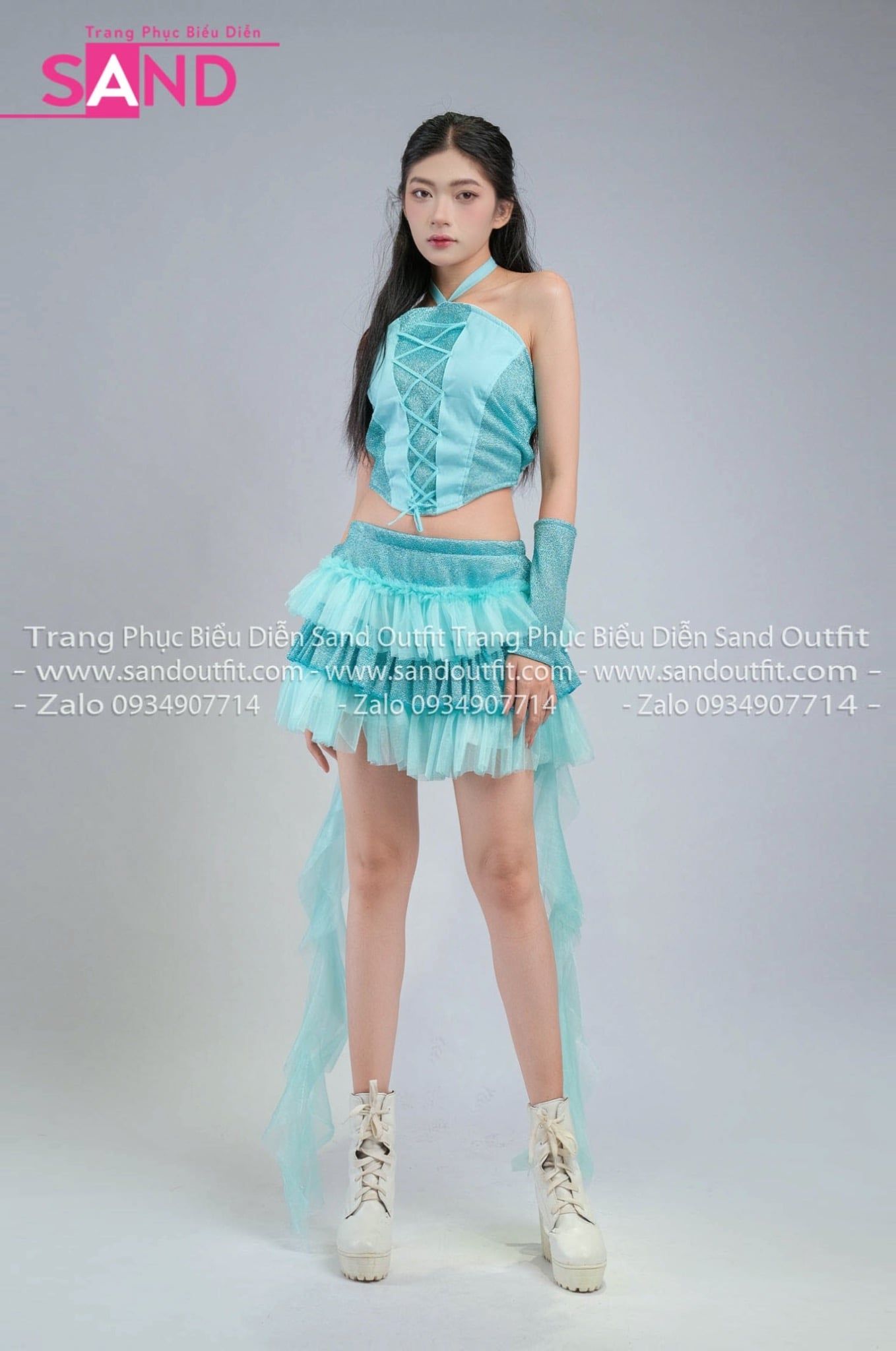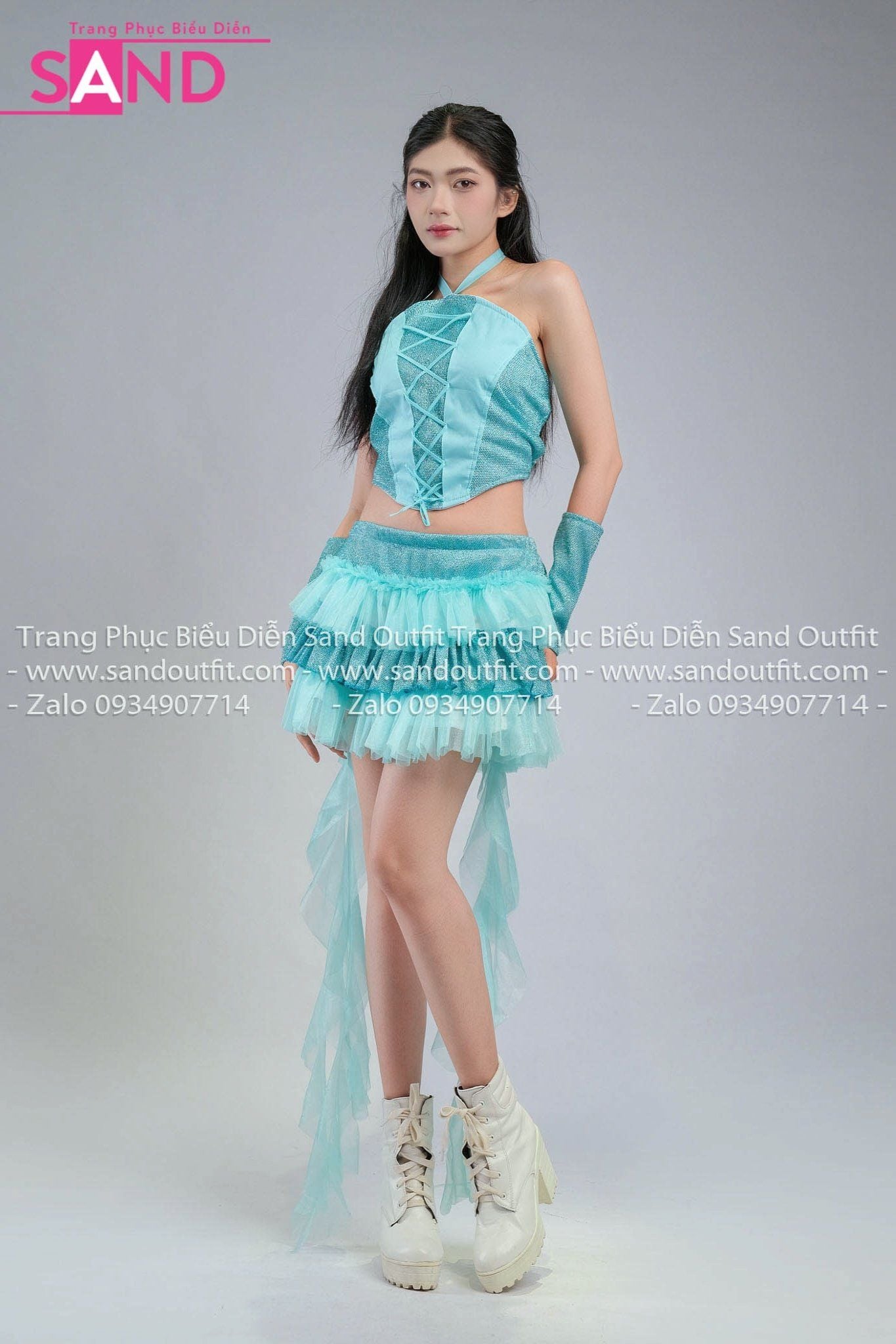 HBH0901 Set Áo Ống Váy Ánh Kim Tua Rua Xanh Mint