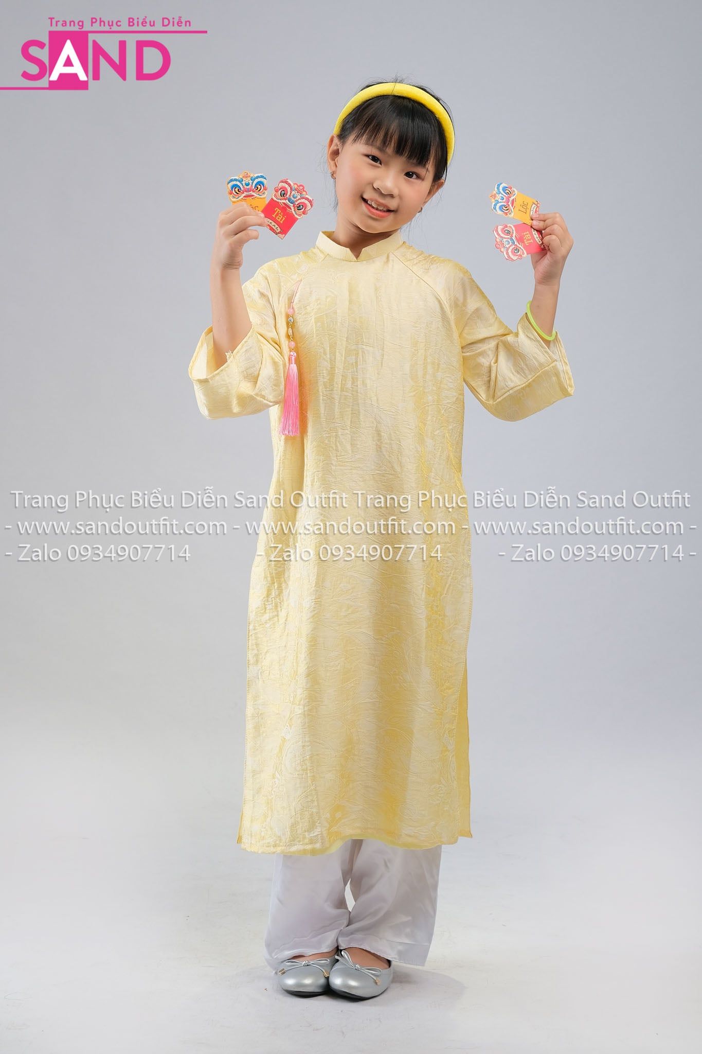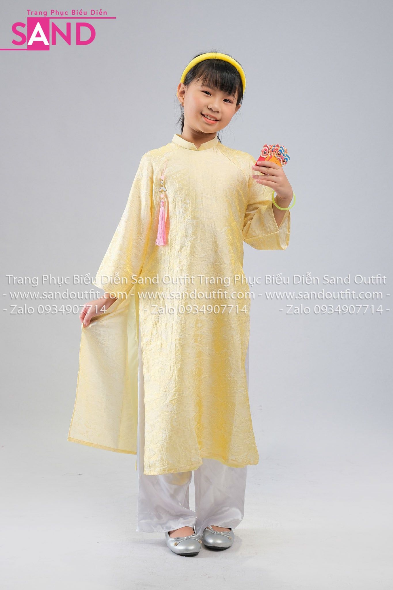 KAC0306 Áo Dài Tằm Óng 2 Tà Trẻ Em - Vàng (Size Cấp 1)