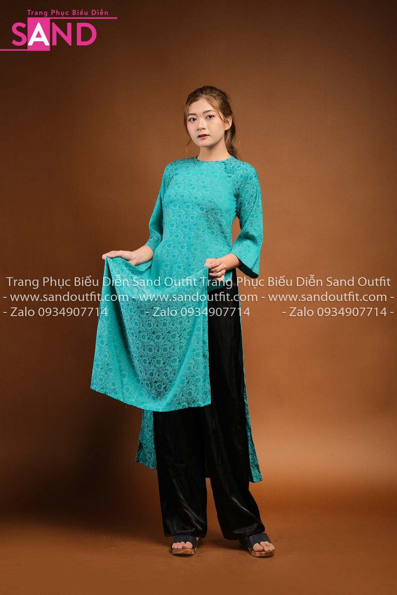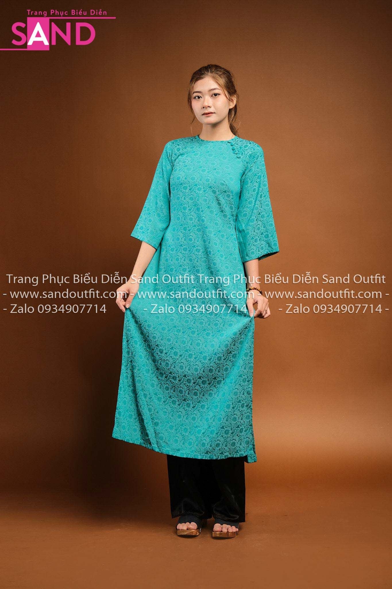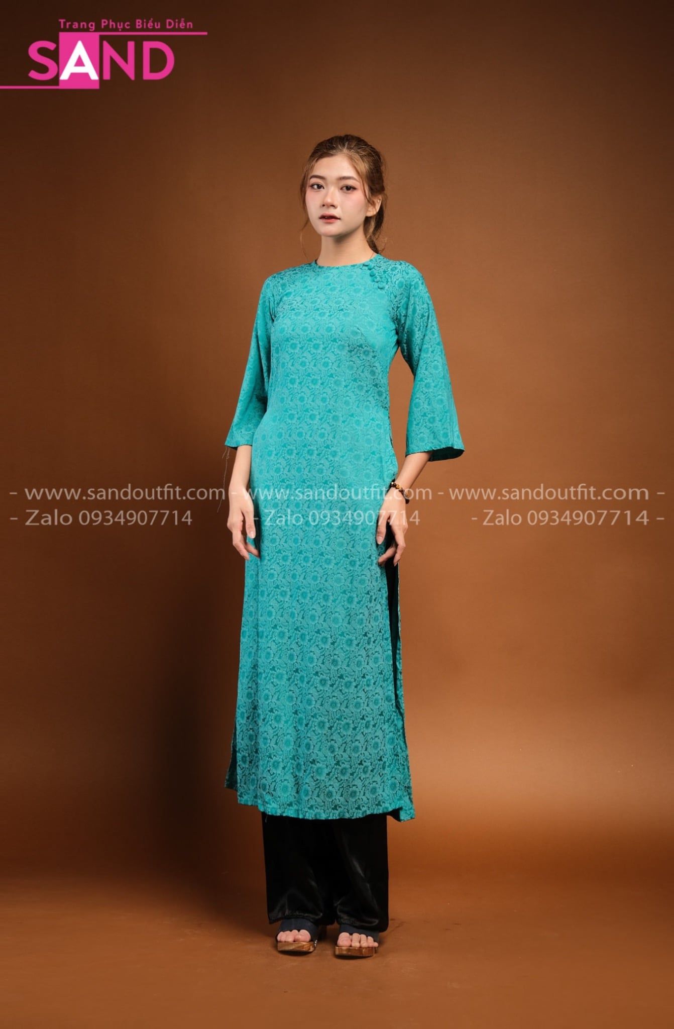 TAC0901 Áo Dài Gấm Suông Cổ Tròn - Xanh Két