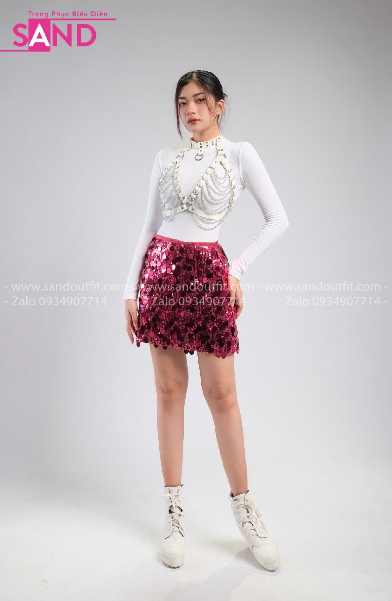 Outfit Phối Sẵn - ( Váy Kim Sa Hồng phối Đai Ngực Xích)