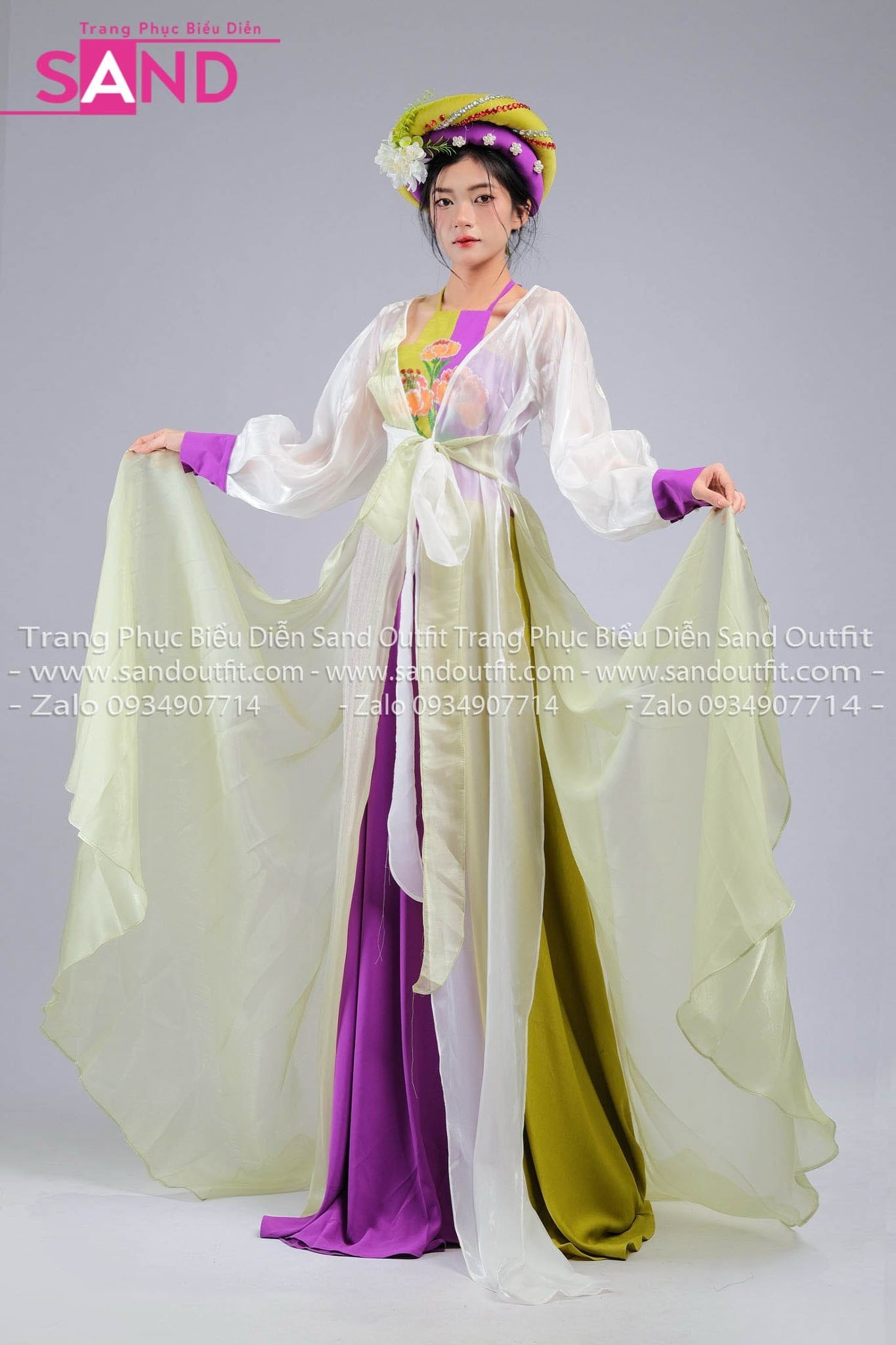 TYD0704 Set Tứ Thân Tấm Cám Thiết Kế Hoạ Tiết Voan - Xanh Tím