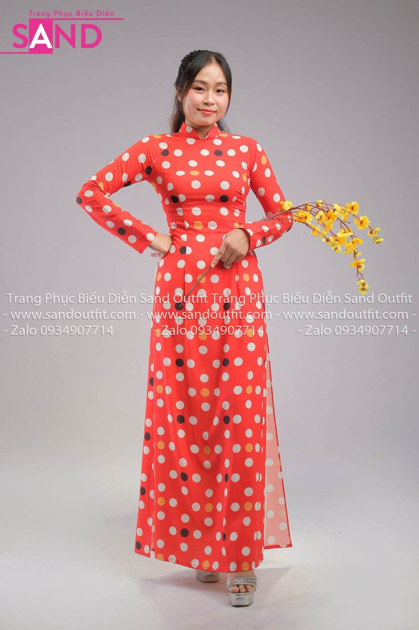 TAA0410 Áo Dài Đỏ Chấm Bi (Cô Ba Sài Gòn)