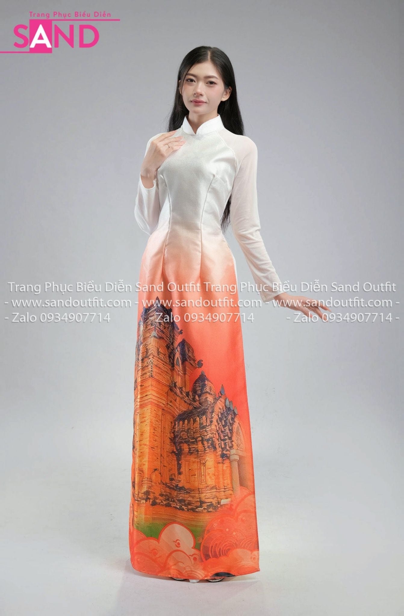 TAC0022 Áo Dài Nữ Cách Tân - Phong Cảnh Tháp Chàm