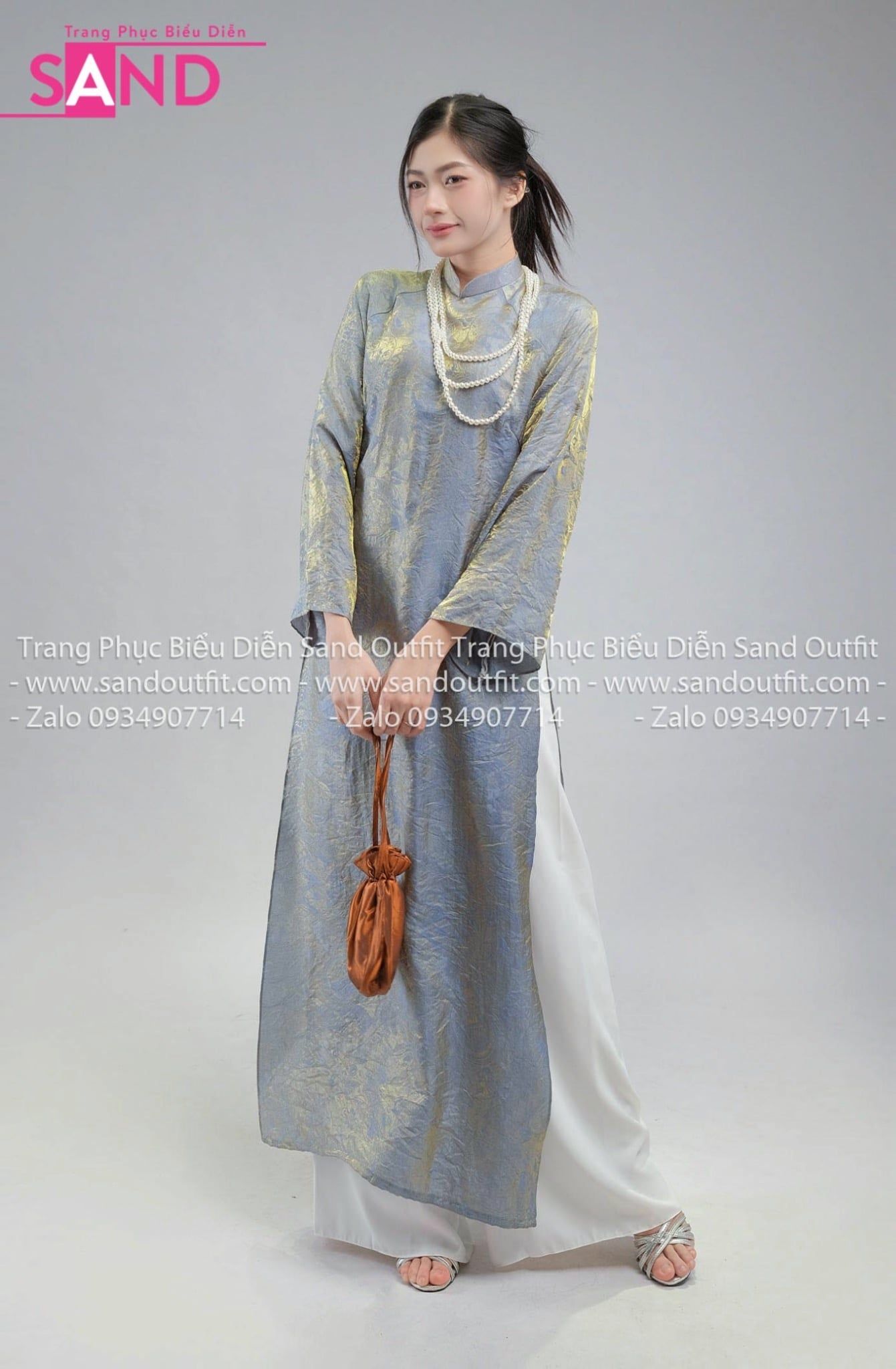 TAC0825 Áo Dài Tằm Óng 2 Tà - Xanh Dương