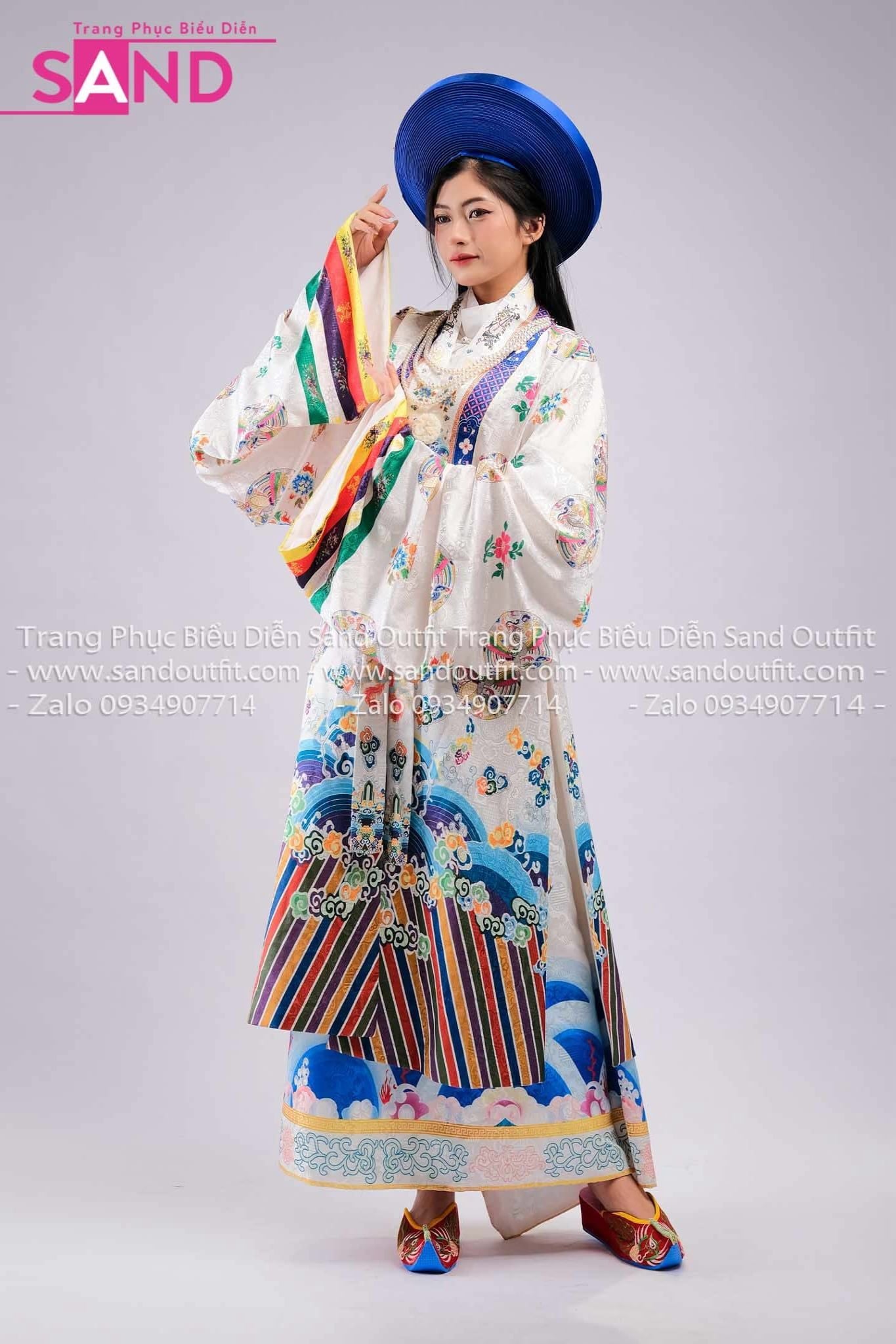 TCB0003 Nhật Bình Cổ Phục Việt Màu Trắng - Nữ