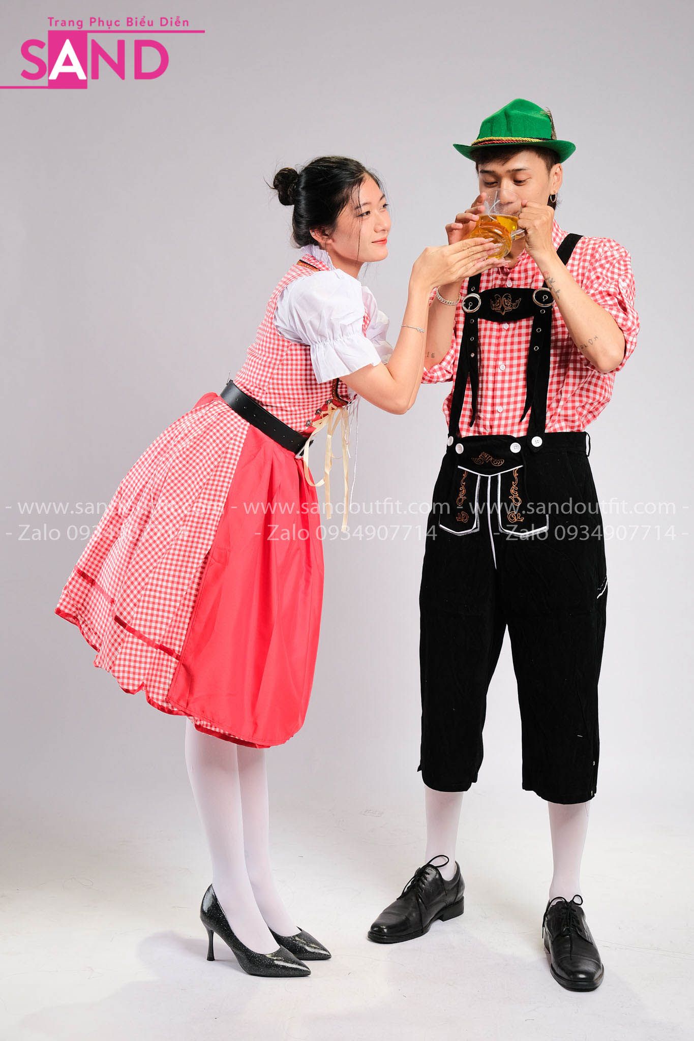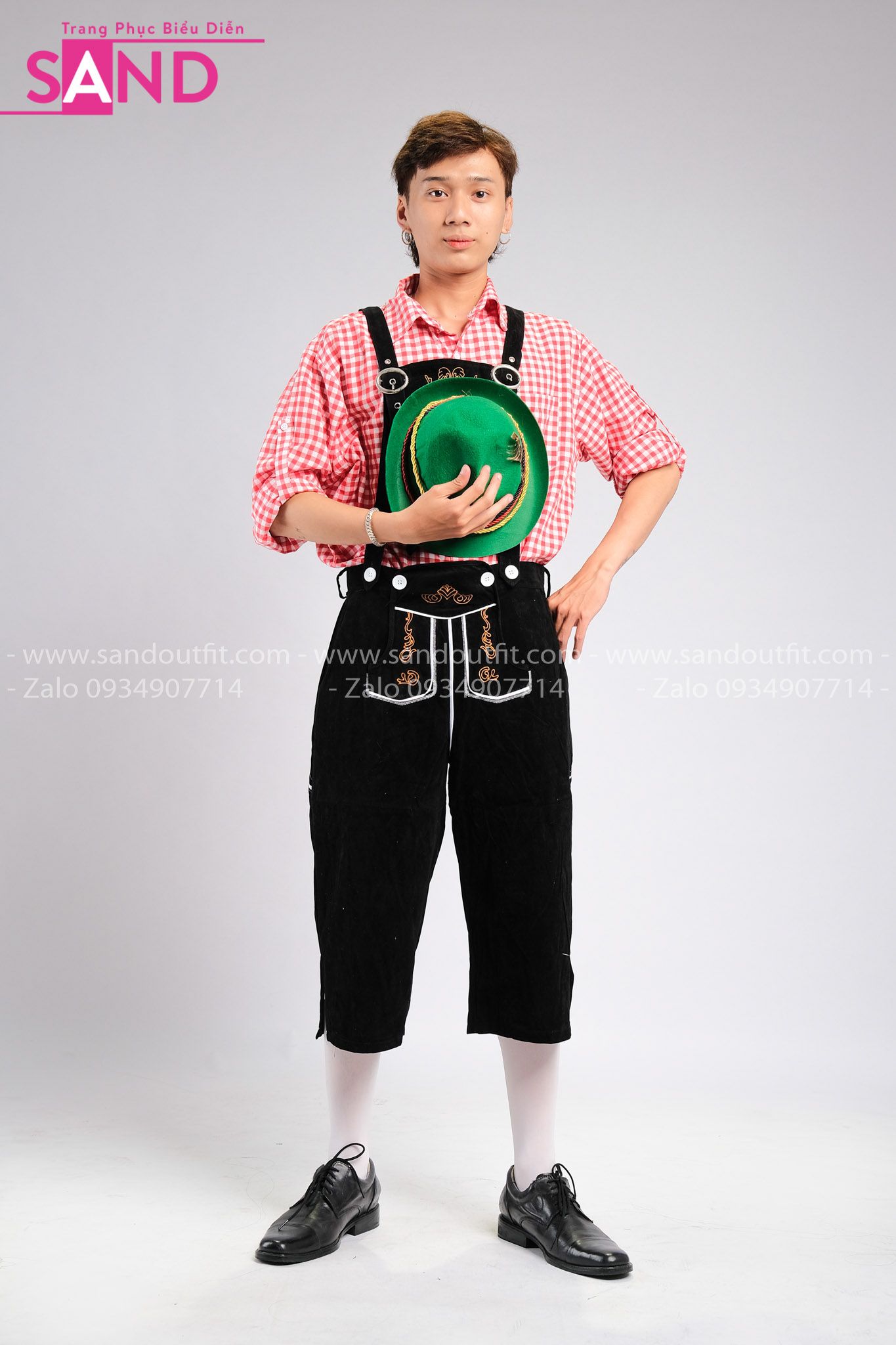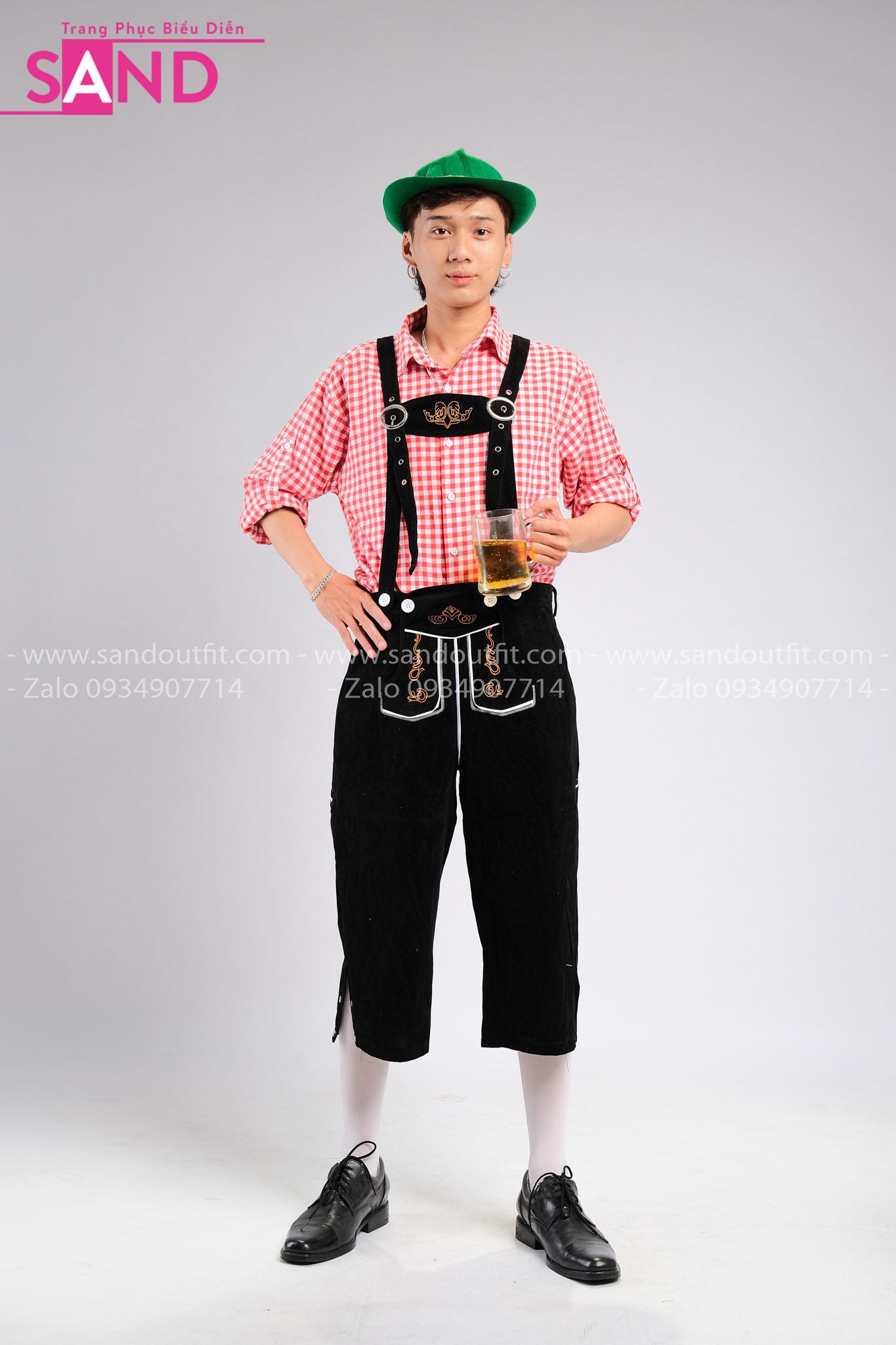 Trang Phục Bia Đức TND0401 Áo Sơ Mi Caro Đỏ TND0102 Quần Lửng Đen kèm DNN0901 Mũ Bia Đức Xanh