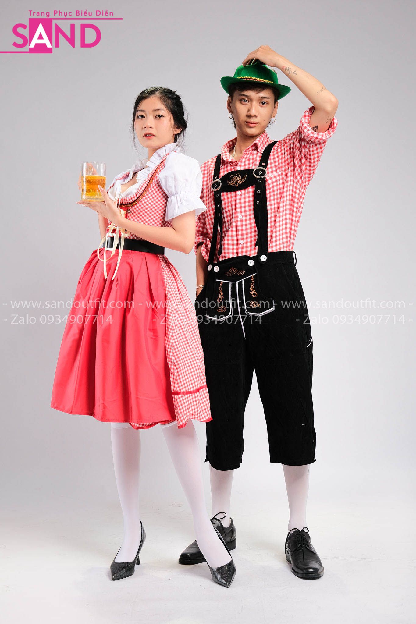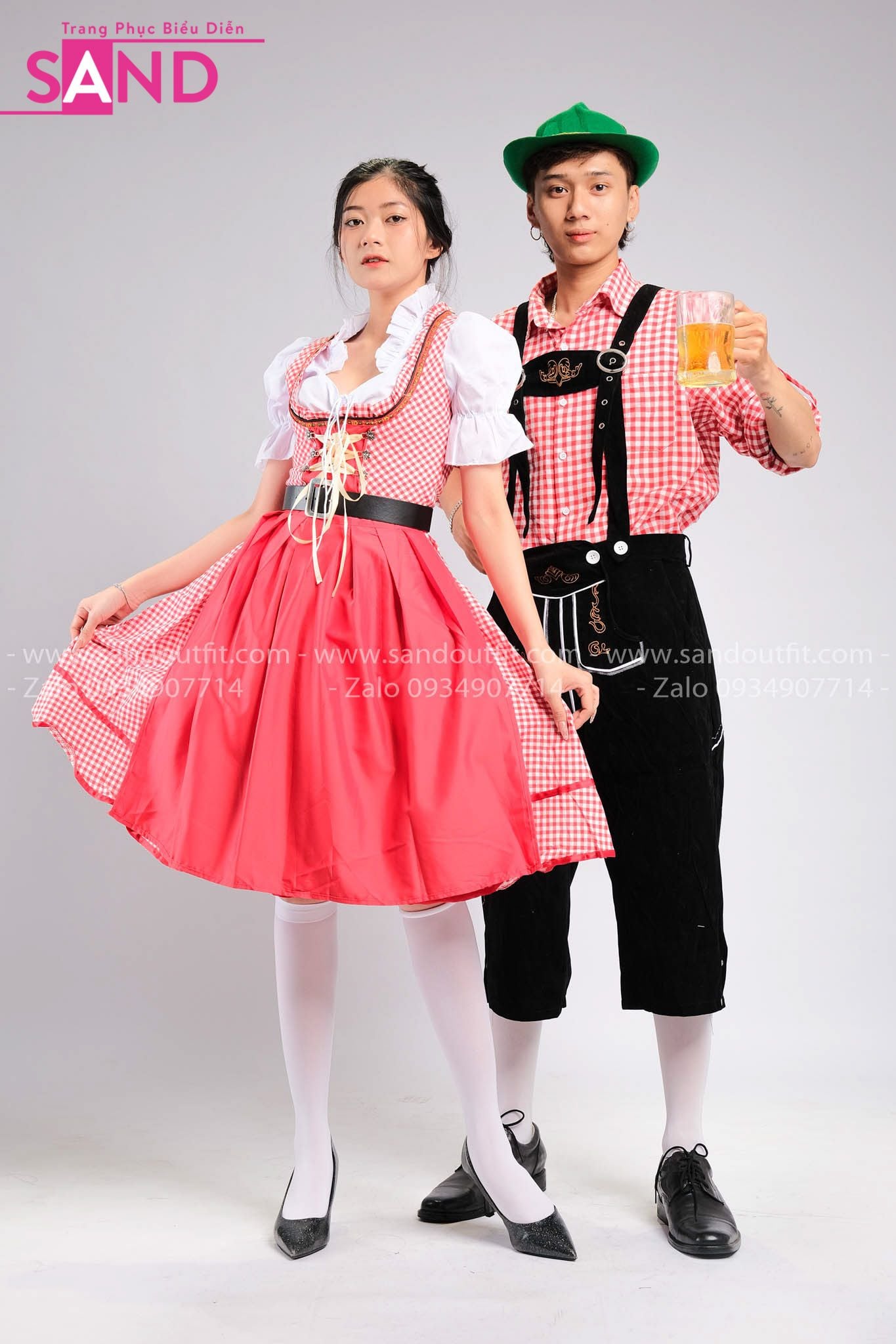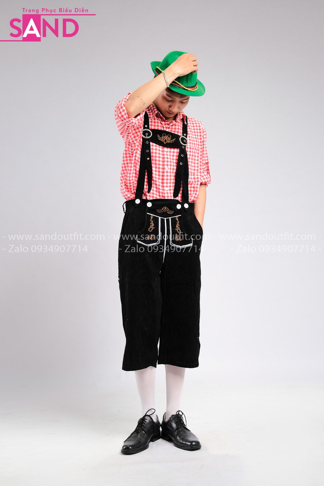 Trang Phục Bia Đức TND0401 Áo Sơ Mi Caro Đỏ TND0102 Quần Lửng Đen kèm DNN0901 Mũ Bia Đức Xanh