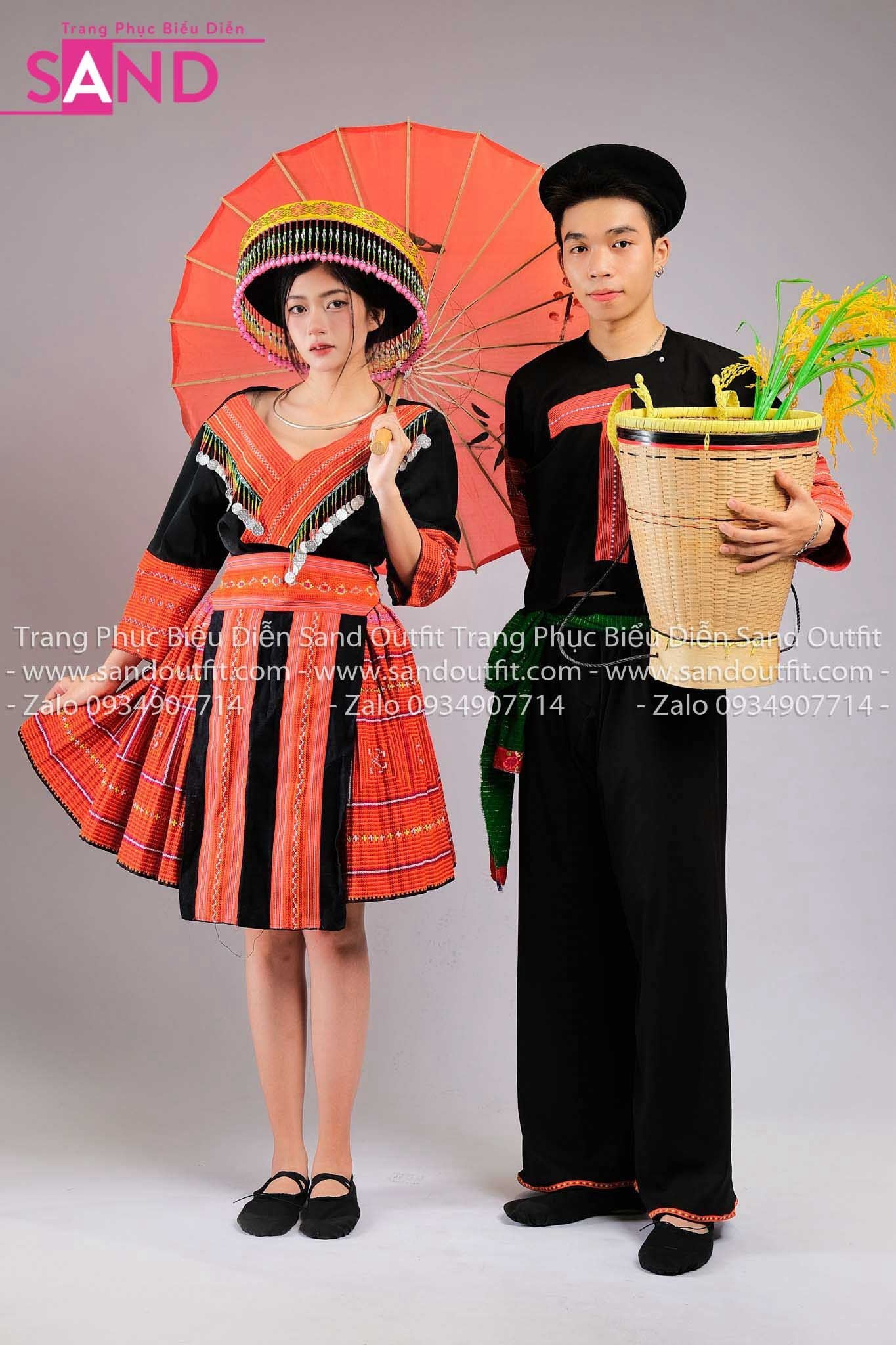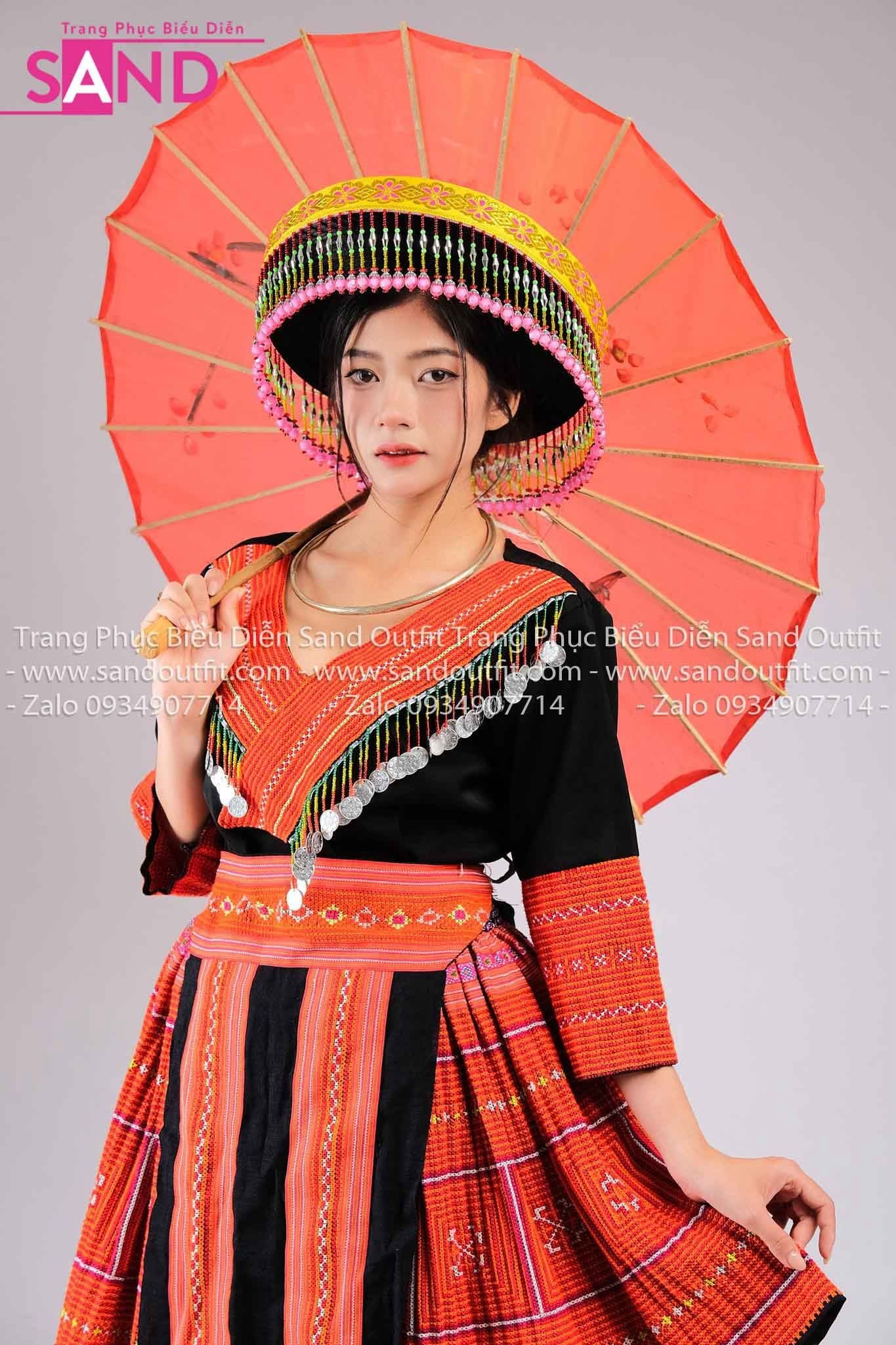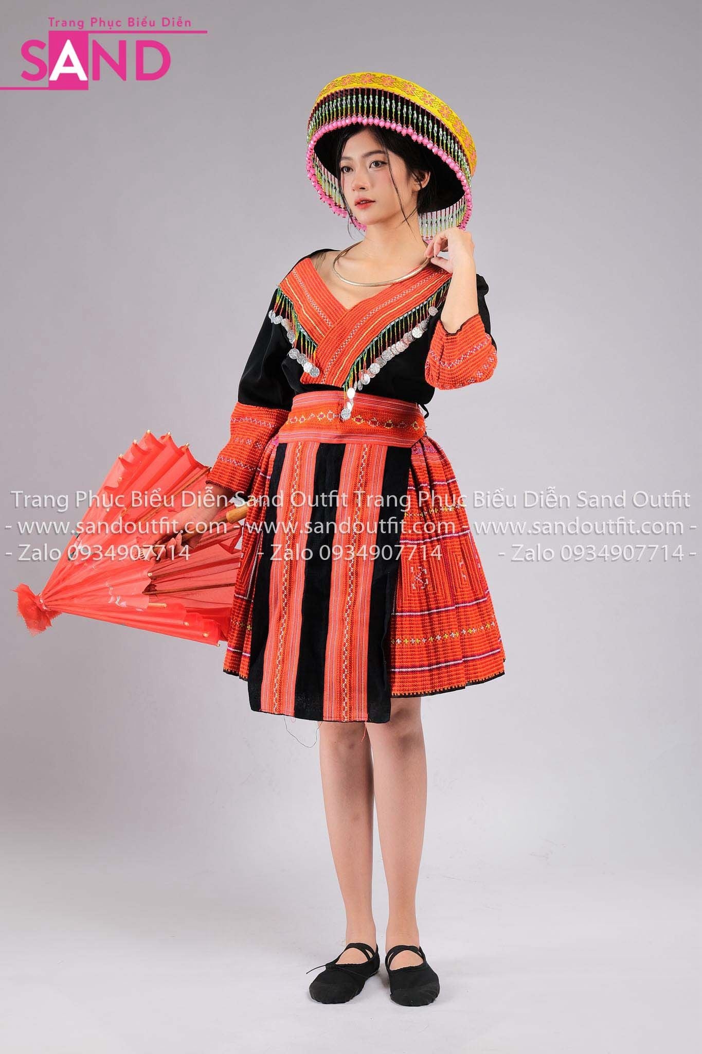 NHM0408 Trang Phục Dân Tộc H'Mông Nguyên Bản Hoạ Tiết Đỏ - Nữ (kèm mấn)