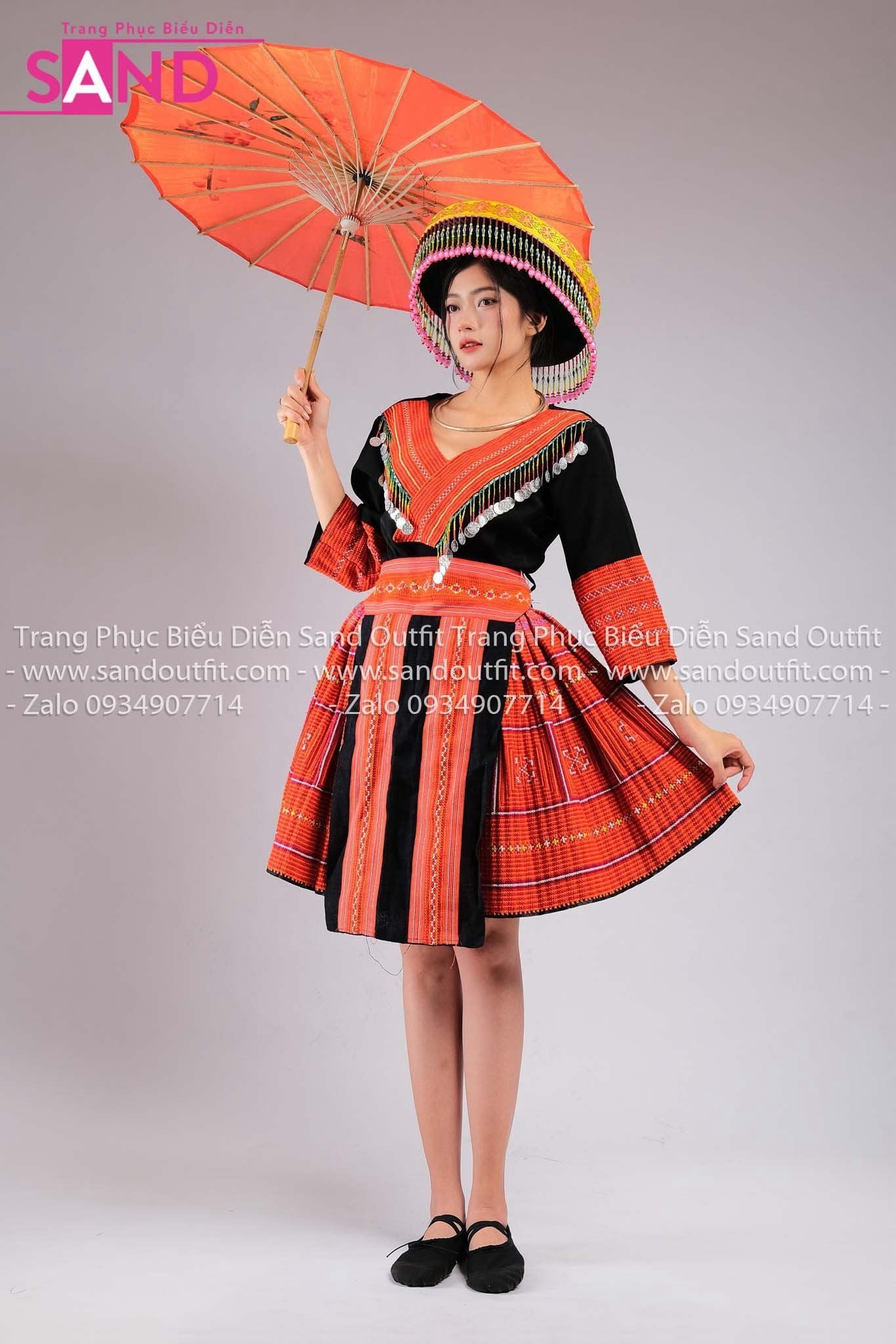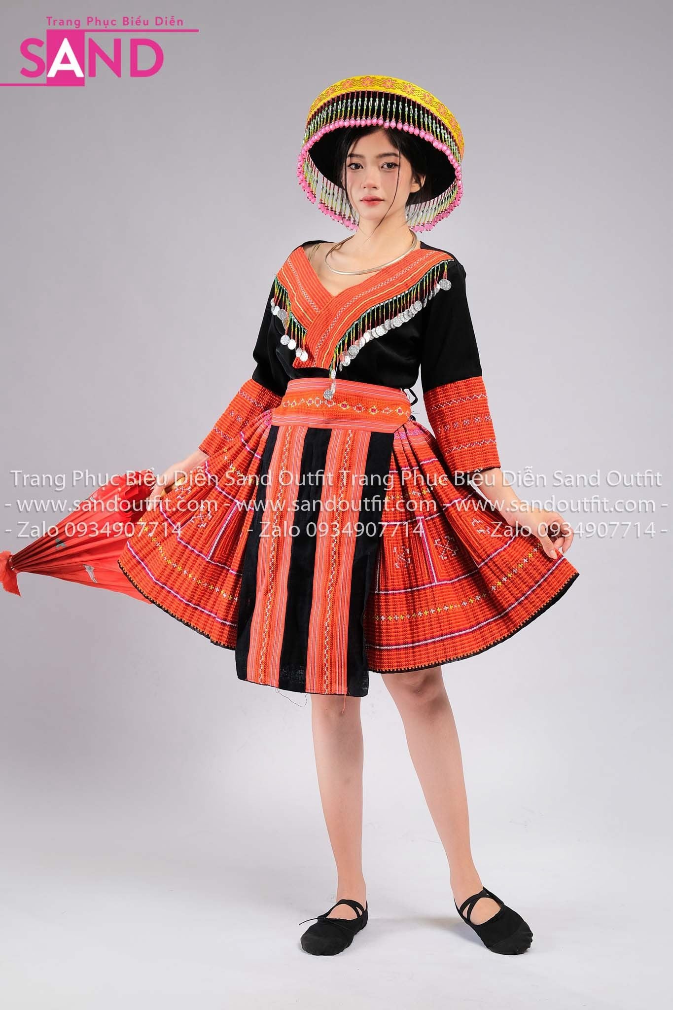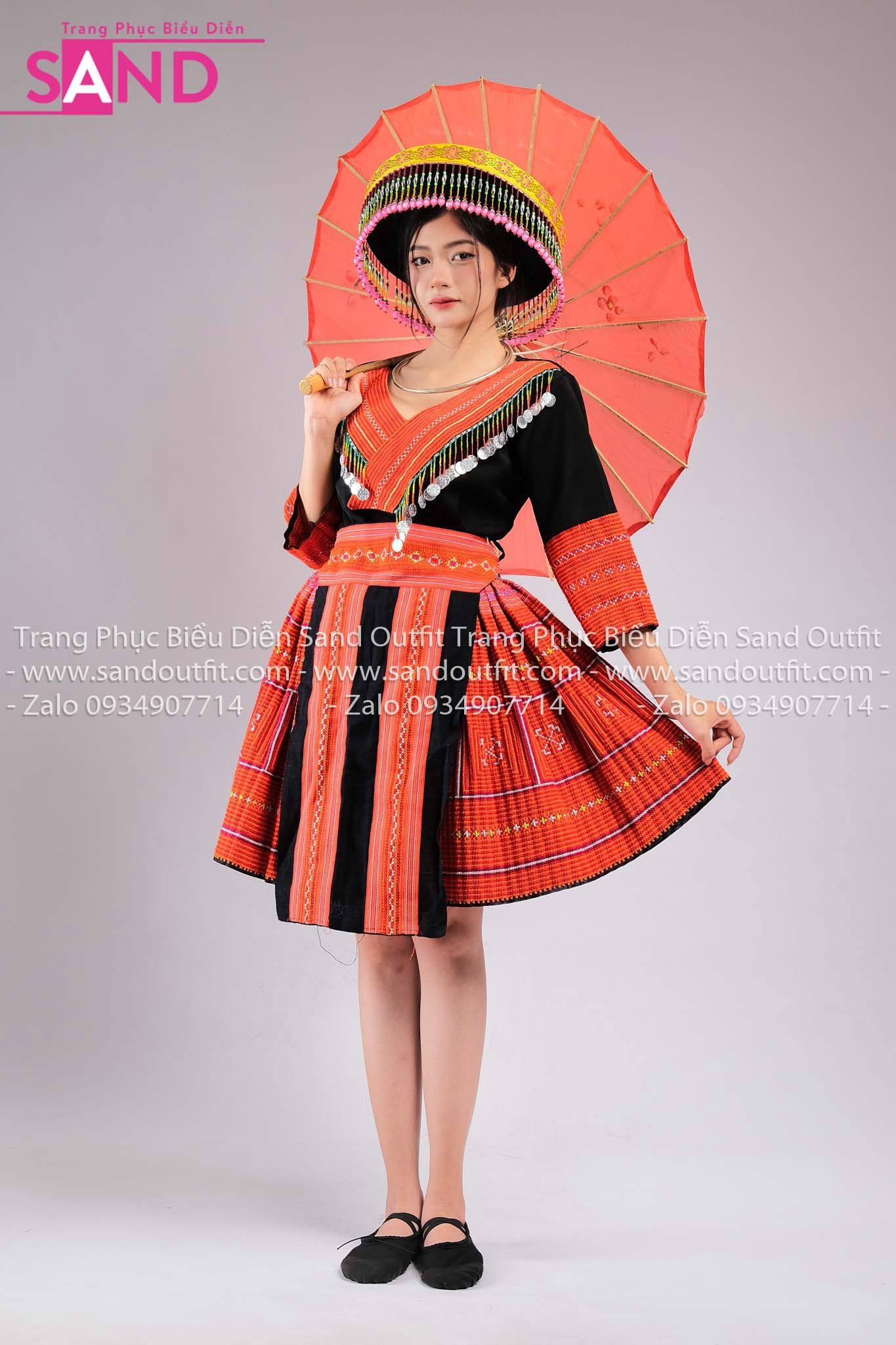 NHM0408 Trang Phục Dân Tộc H'Mông Nguyên Bản Hoạ Tiết Đỏ - Nữ (kèm mấn)
