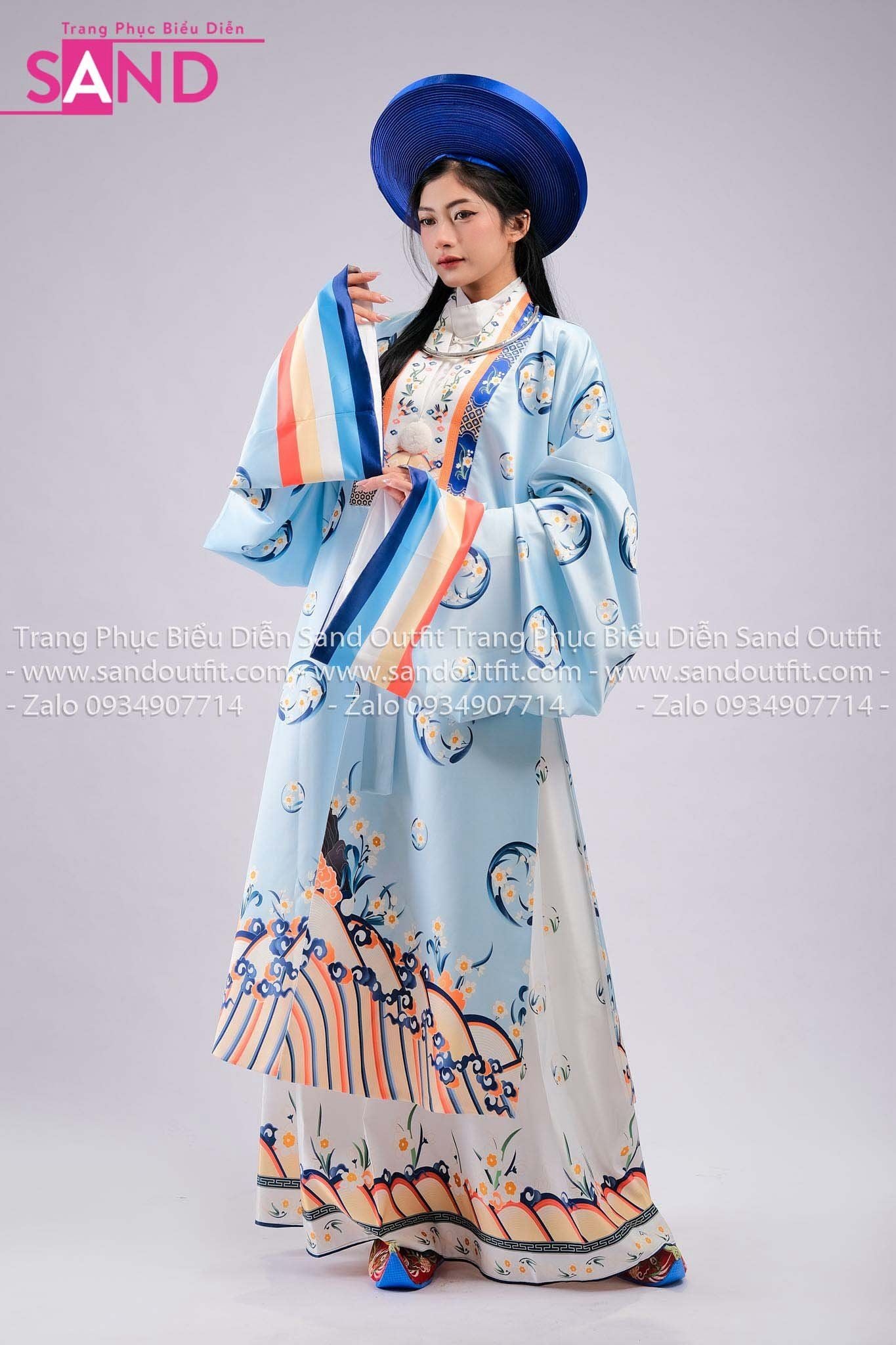 TCB0807 Nhật Bình Cổ Phục Việt Xanh Da Trời - Nữ
